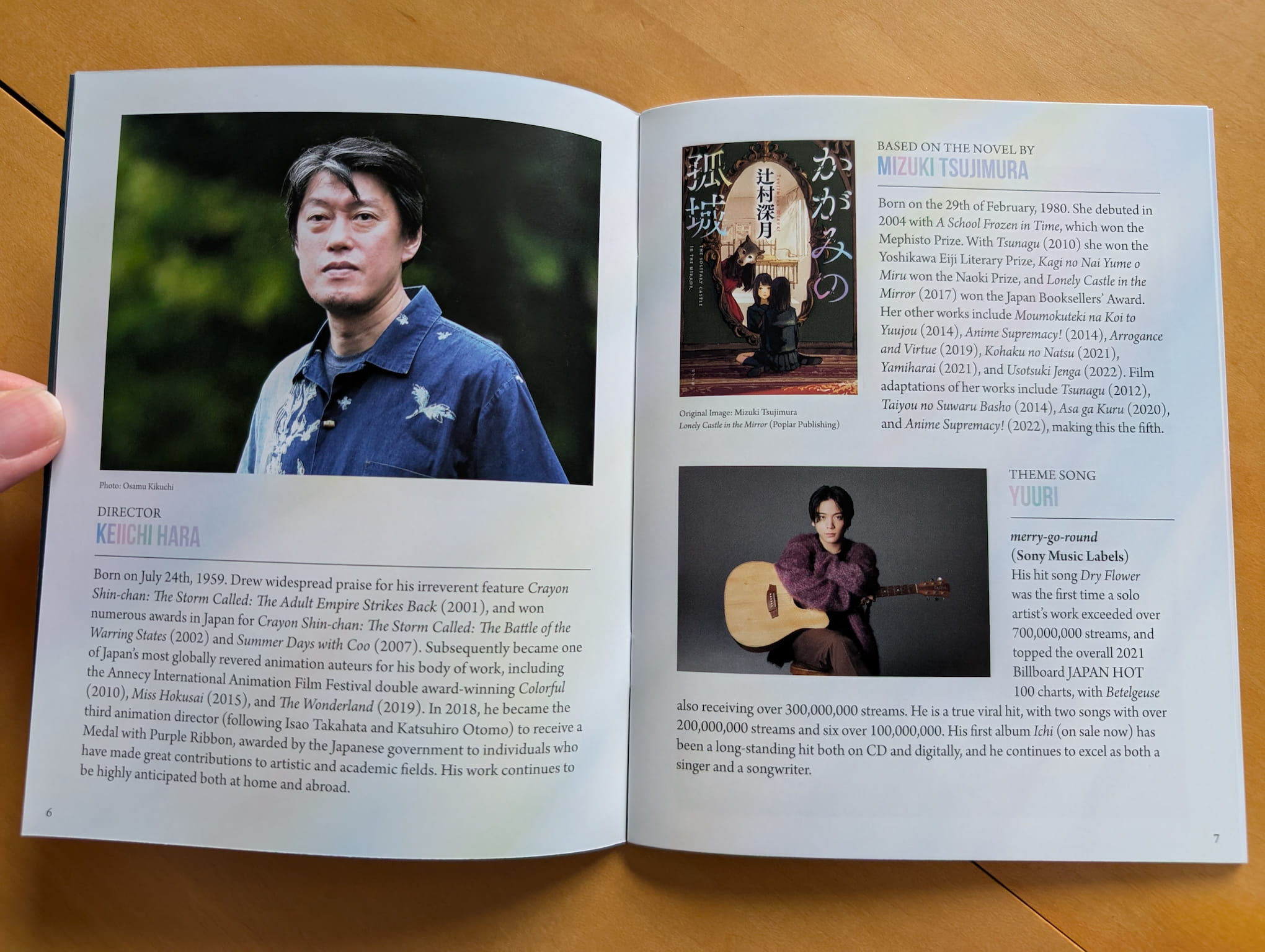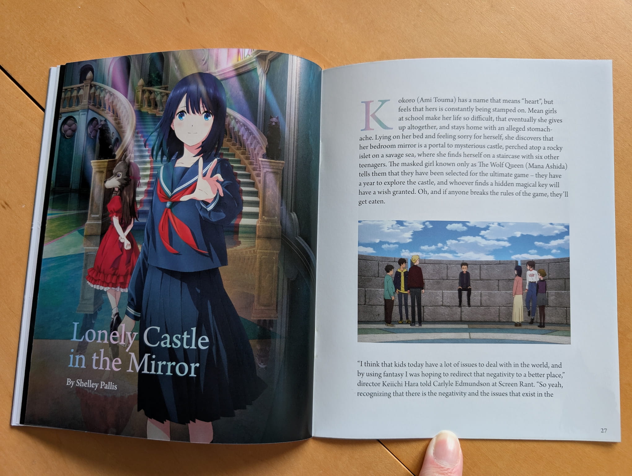 Lonely Castle in the Mirror (かがみの孤城, Kagami no Kojō) is a 2022 theatrical anime film based on Mizuki Tsujimura’s novel of the same name. The film was adapted by A-1 Pictures, and the staff credits include director Keiichi Hara, screenplay writer Miho Maruo, character designer Keigo Sasaki and music composer Harumi Fuuki. The film theatrically released in Japan on December 2022.