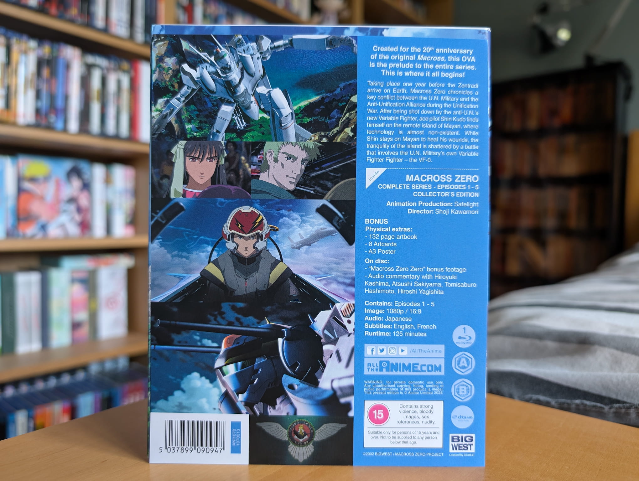Macross Zero, alongside Macross Plus and Macross Plus Movie Edition, were licensed for the UK and US by distributor Anime Limited on behalf of BIG WEST. Macross Plus was announced and released first in an ultimate edition package that I thought was pretty good overall but is clearly too big for many fans and the OVAs were made exclusive to that set for English audiences (France got a different edition but the OVAs are still exclusive to that specific set also). Macross Zero on the other hand is released in a traditional collector’s package by Anime Limited and looks like they have mirrored the Japanese version with some adjustments.