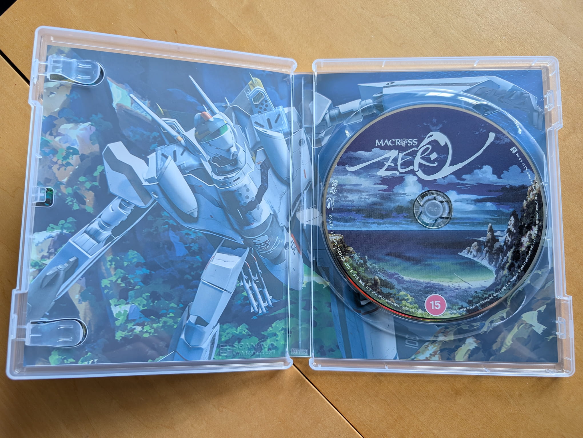 The collector’s edition release for Macross Zero contains all 5 episodes on a single Blu-ray disc. The disc has been authored and encoded by VDMS, who have worked with Anime Limited on a couple of their releases including Great Pretender, Jujutsu Kaisen, and Macross Plus.