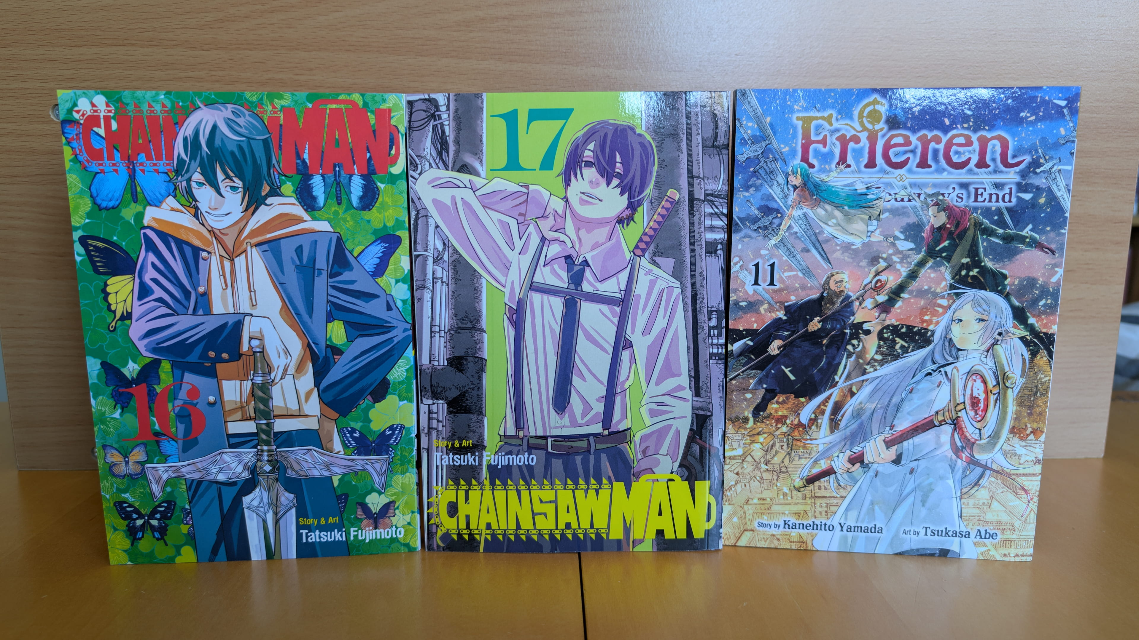 Next we have a few newer volumes with Chainsaw Man Volumes 16-17 and Frieren: Beyond Journey’s End Volume 11. The former is the US print versions whilst the latter is sadly the Italian prints which is annoying as it was only out within the past year.