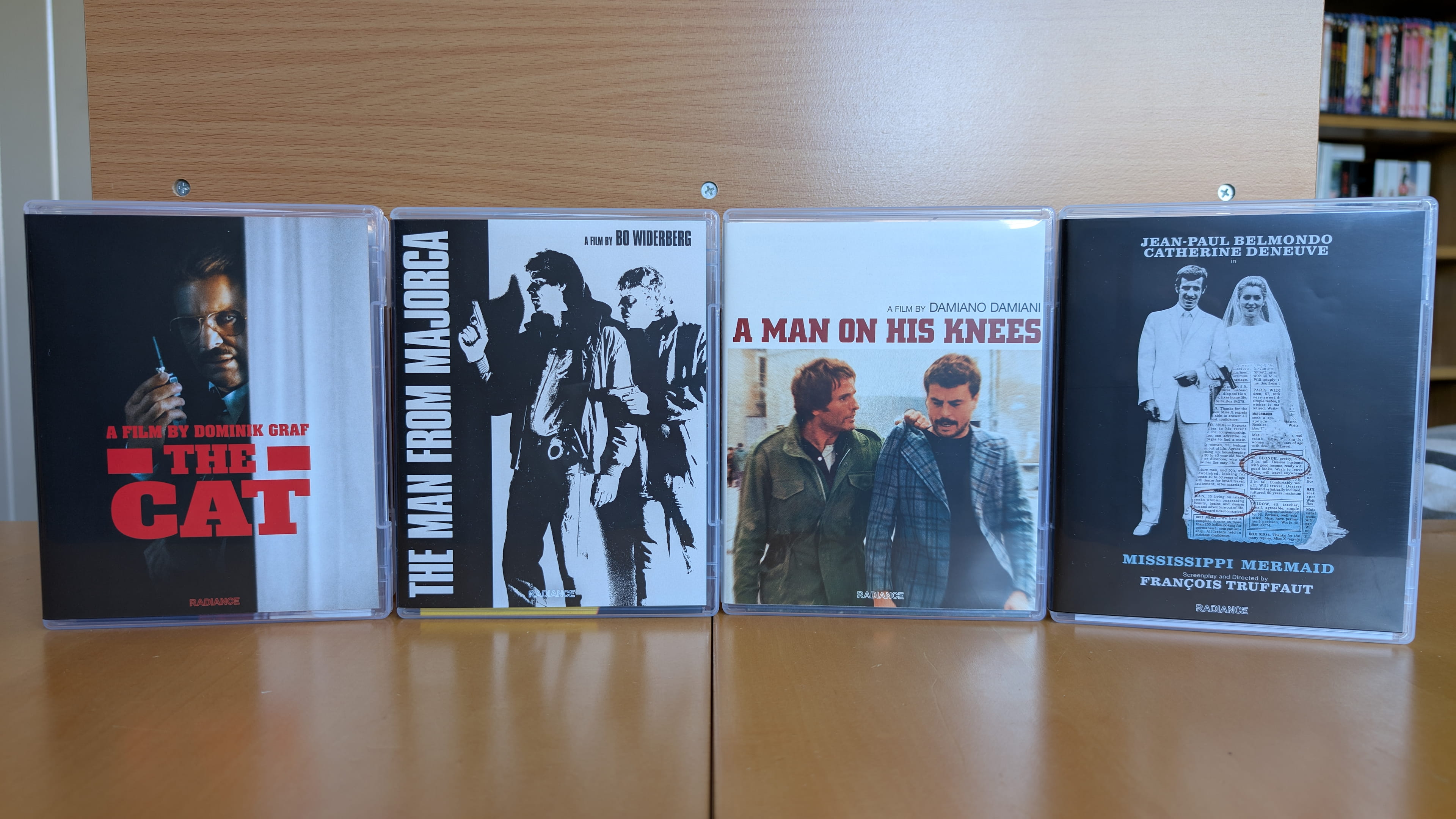Starting off with some European Cinema releases we have Dominik Graf’s 1988 German film The Cat (Die Katze), Bo Widerberg’s 1984 Swedish film The Man from Majorca (Mannen från Mallorca), Damiano Damiani’s 1979 Italian film A Man on His Knees (Un uomo in ginocchio), François Truffaut’s 1969 French film Mississippi Mermaid (La Sirène du Mississipi).