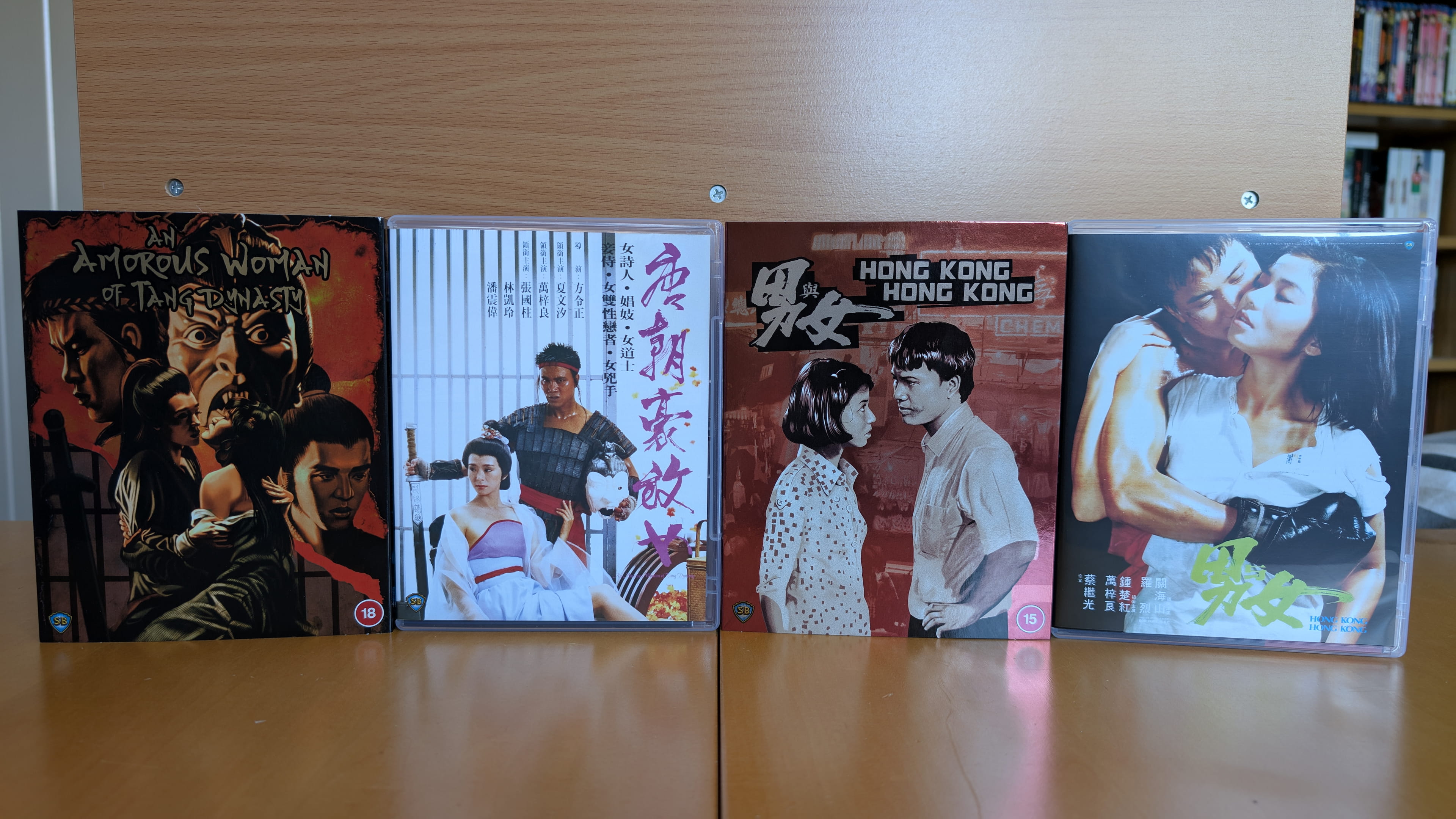 The order from 88 Films’ store covers their three titles released for March. Here we have Eddie Ling-Ching Fong’s 1984 film An Amorous Woman Of Tang Dynasty (唐朝豪放女), Clifford Choi’s 1983 film Hong Kong, Hong Kong (男與女), and Lau Kar-Leung’s 1983 film The Lady Is The Boss (掌門人). Out of these three, I would say Hong Kong Hong Kong is the most interesting of the batch because it’s a different genre and setting compared to what Shaw Brothers are known for which is their martial arts historical pieces. Shaw Brothers have delved into different genres before, like spy thrillers as seen with Eureka’s recent release a few months back.