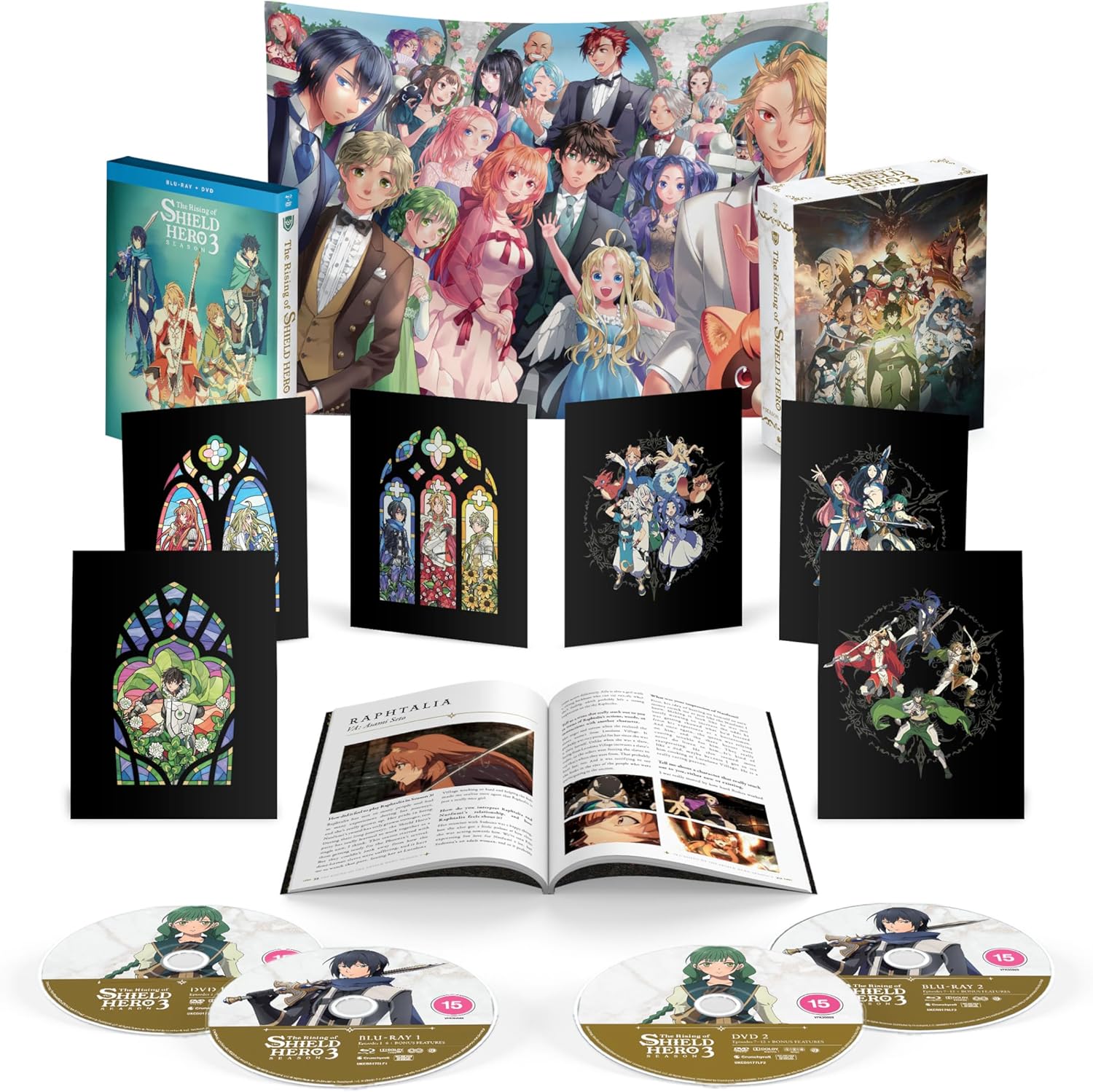 | – Music Videos – Textless OP/EDs | – Rigid Slipcase with Amaray Case – 56-page Artbook – 3 Art Cards – The Forgers Acrylic Standee – Stella Star and Tonitrus Bolt Pins |