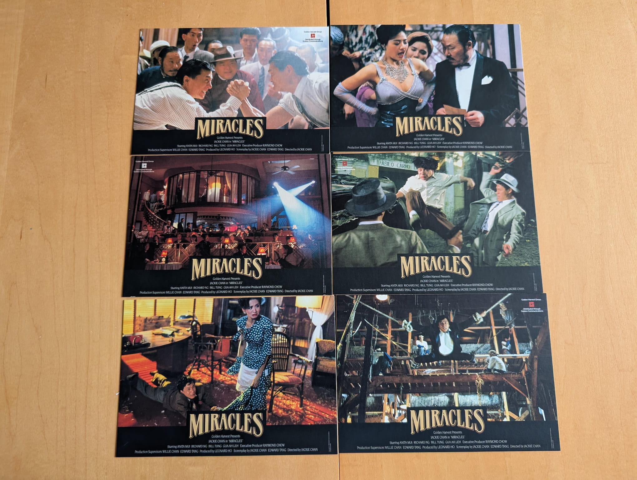 Miracles (奇蹟), also known as Miracles: The Canton Godfather, is an 1989 live-action theatrical Hong Kong film directed & written by Jackie Chan, and produced by Leonard Ho & Raymond Chow with distribution by Golden Harvest. The film starred Jackie Chan, Anita Mui, Gua Ah-leh, Chun Hsiung Ko, Wu Ma and Lo Lieh, with writer Edward Tang and music composed by Su Cong & Michael Lai. The film was theatrically released in June 1989 for Hong Kong.