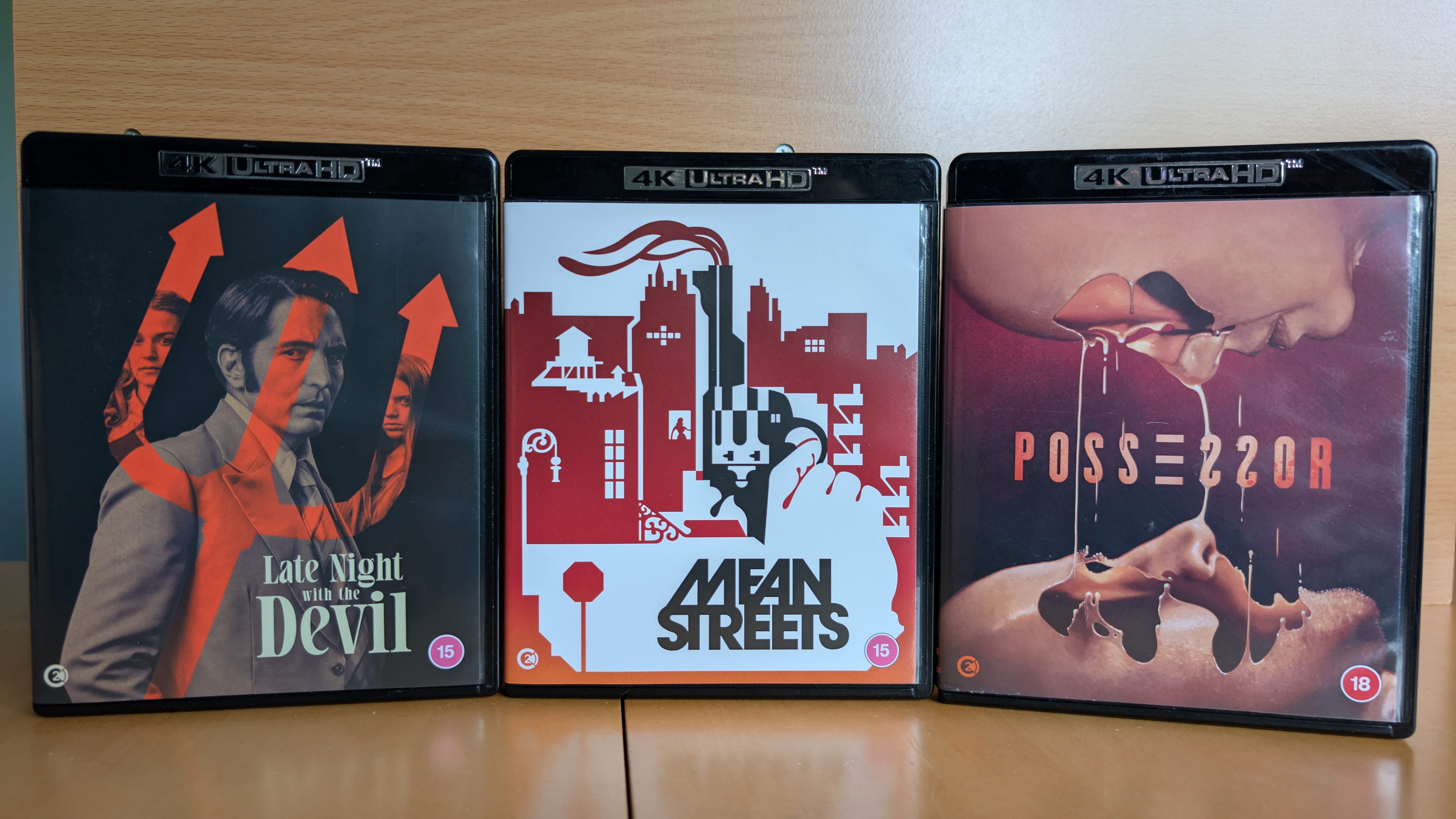 Colin and Cameron Cairnes’ 2024 supernatural horror film Late Night with the Devil was the first film I watched from this haul and I really enjoyed the concept and presentation, though I am disappointed they used generative AI for some still shots. Martin Scorsese’s 1973 crime drama film Mean Streets is another gangster flick that I have yet to watch but has a striking cover. And speaking of Cronenberg, Brandon Cronenberg’s 2020 sci-fi psychological horror film Possessor was one of my most anticipated films to watch for years and it lived up to the long wait.