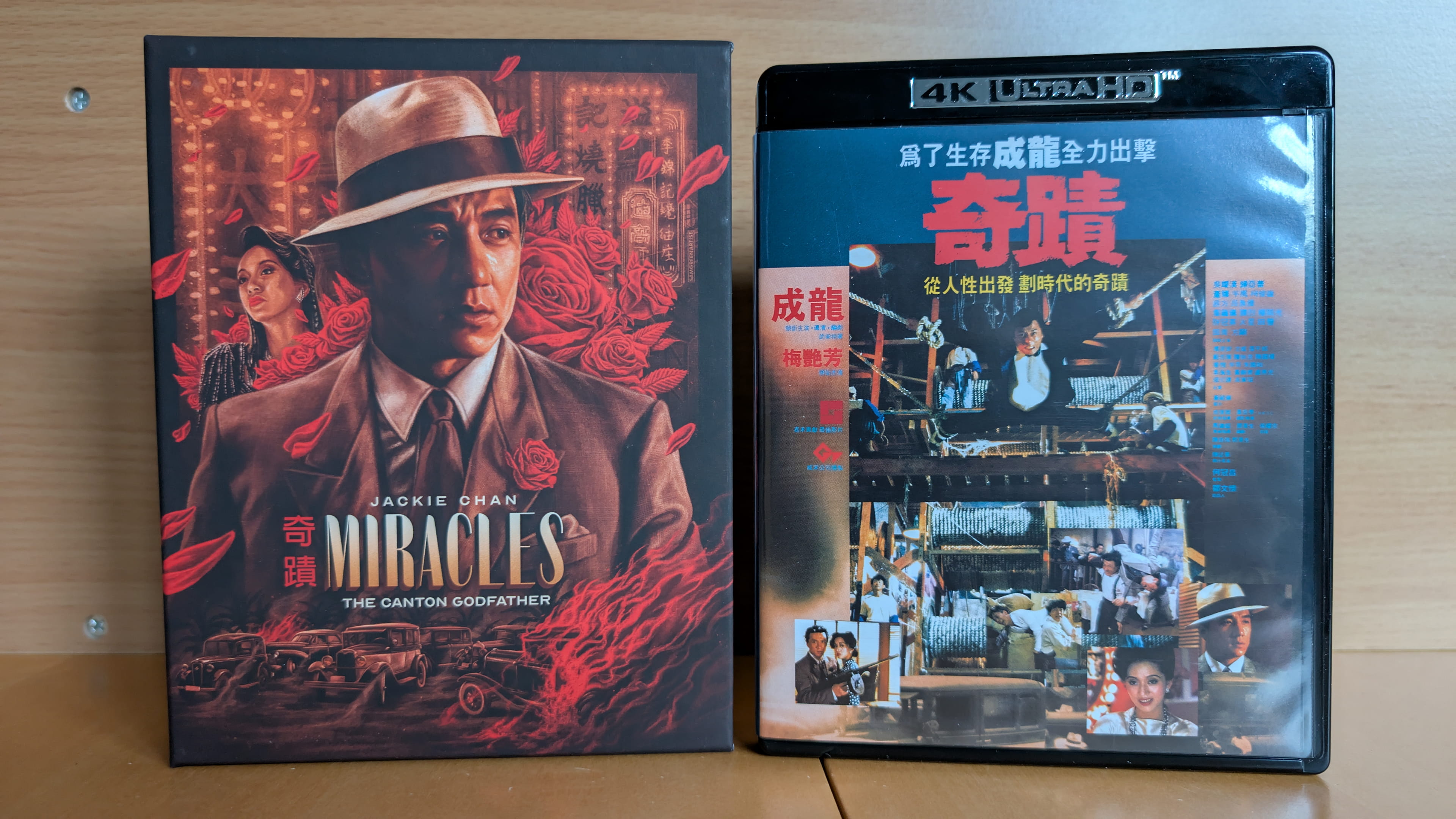 One of them was Jackie Chan’s 1989 film Miracles: The Canton Godfather (奇蹟), now available on the 4K Ultra HD format. This is a double dip as 88 Films previously released the film on Blu-ray six years ago, but this is a nice package. Apparently it’s almost sold out so there won’t be many left before they shift to a standard edition release. This release includes both the Original Hong Kong Theatrical Cut and the International Export Cut, but you can watch both cuts in English if you prefer that method.