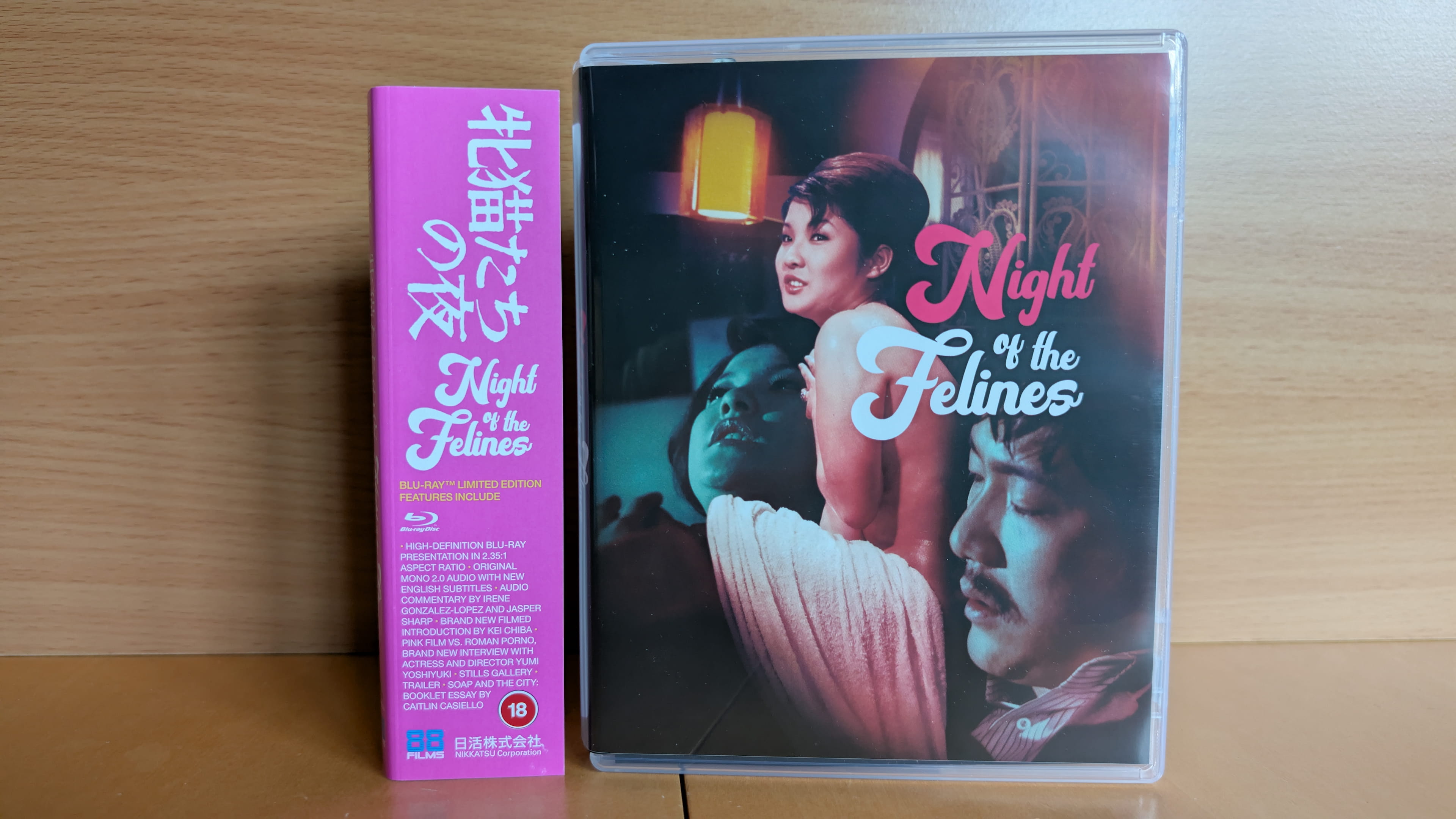 Next we have a new addition to the Nikkatsu Roman Porno collection. Noboru Tanaka’s 1972 film Night of the Felines (牝猫たちの夜) is another Pink film and also the director’s second work in his filmography. Like the previous titles in the collection, this is presented with a Scanavo case, a removable OBI strip (like Radiance’s releases) and a booklet which includes an essay about the film and its director.