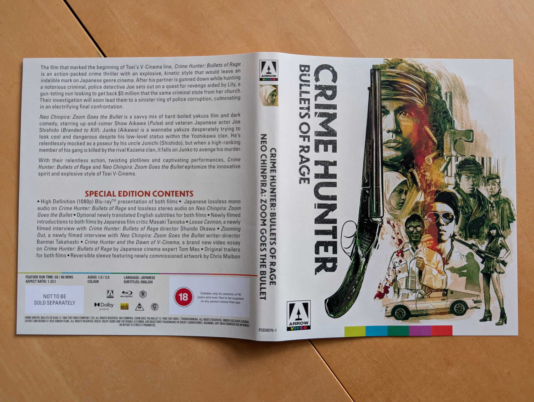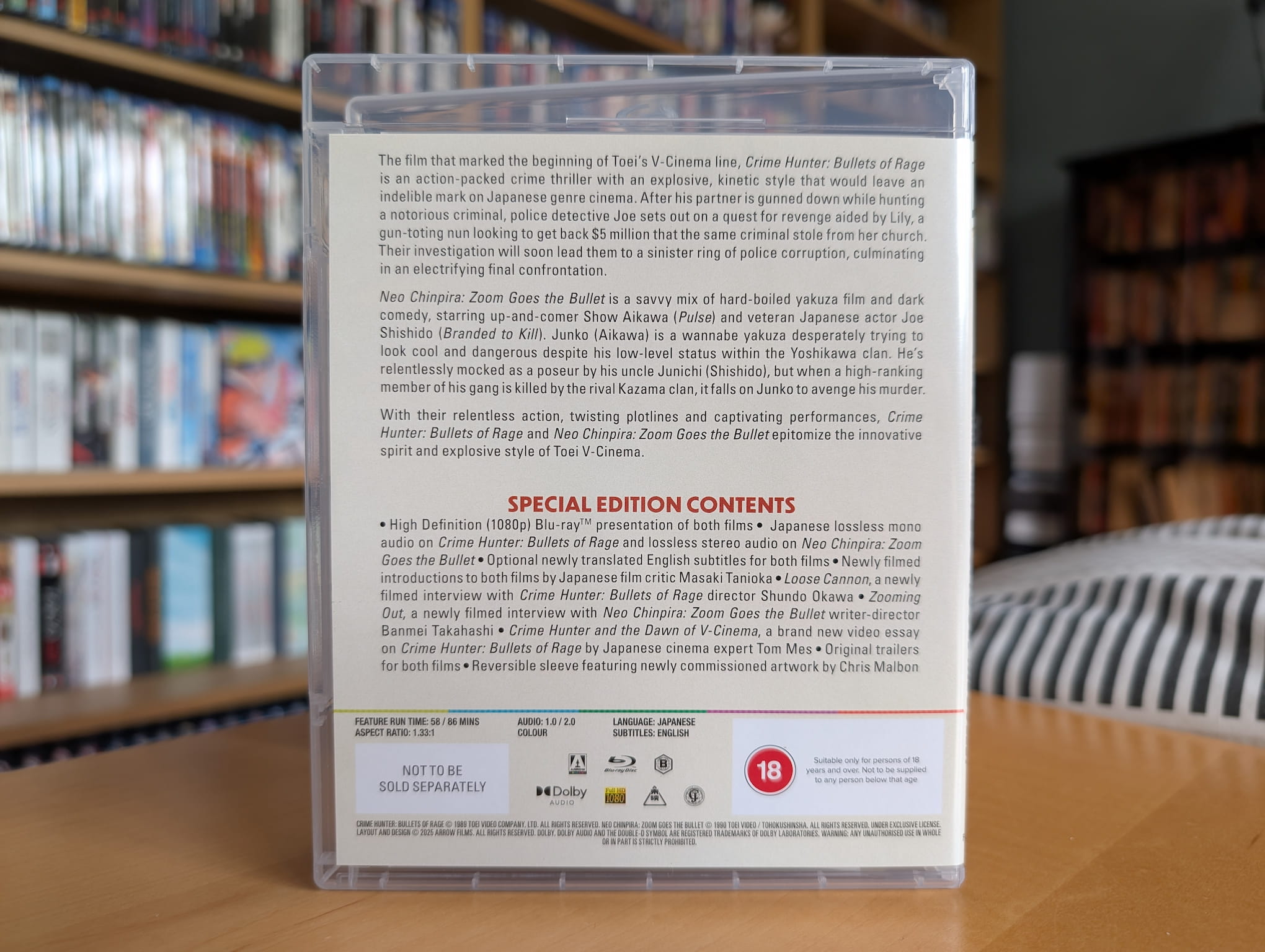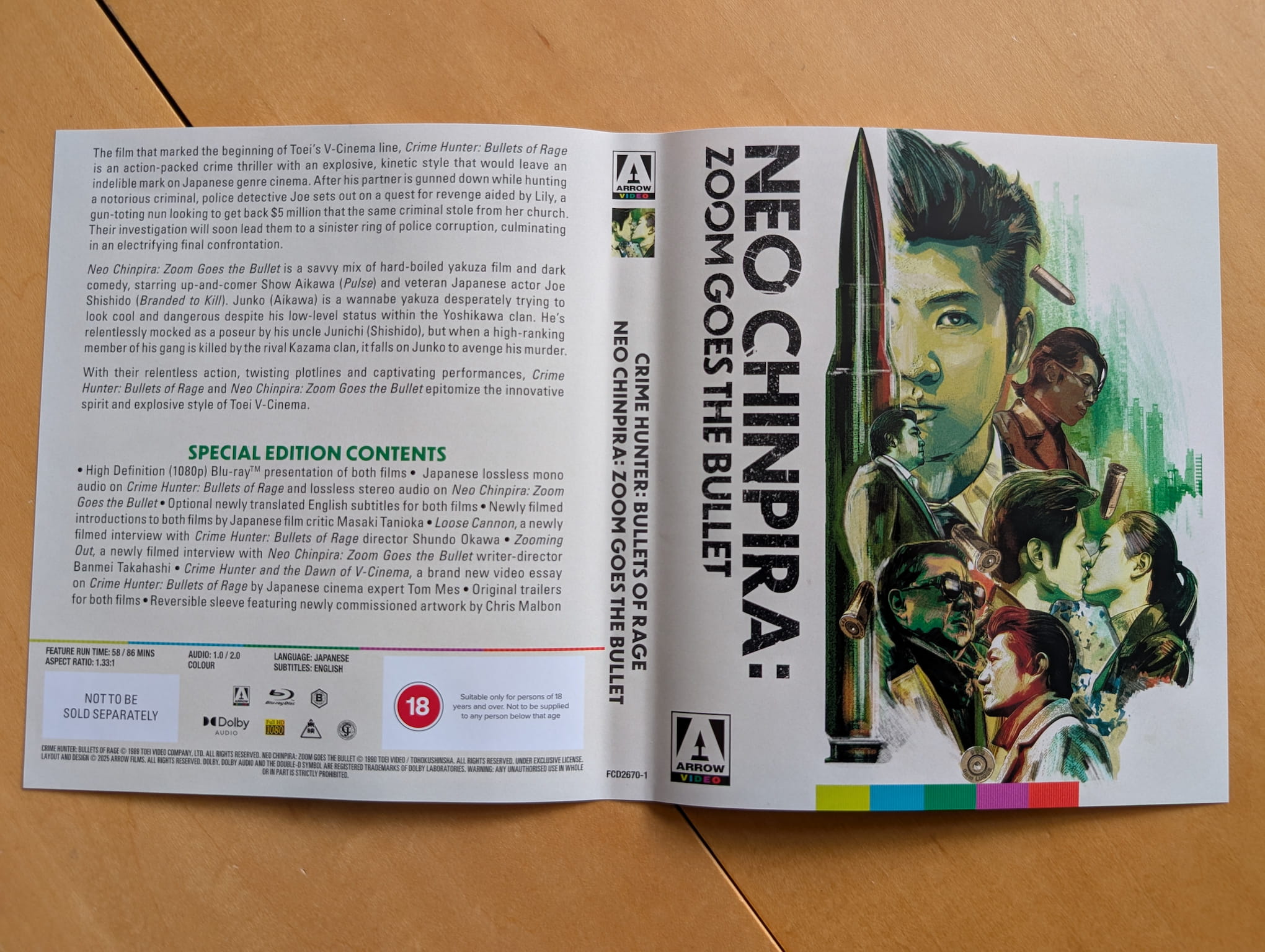 Like with J-Horror Rising, Arrow Video have bundled the films for V-Cinema Essentials: Bullets & Betrayal altogether into a single box set which supports shelf space, but this time we have an o-card similarly to The Good, The Bad, The Weird.