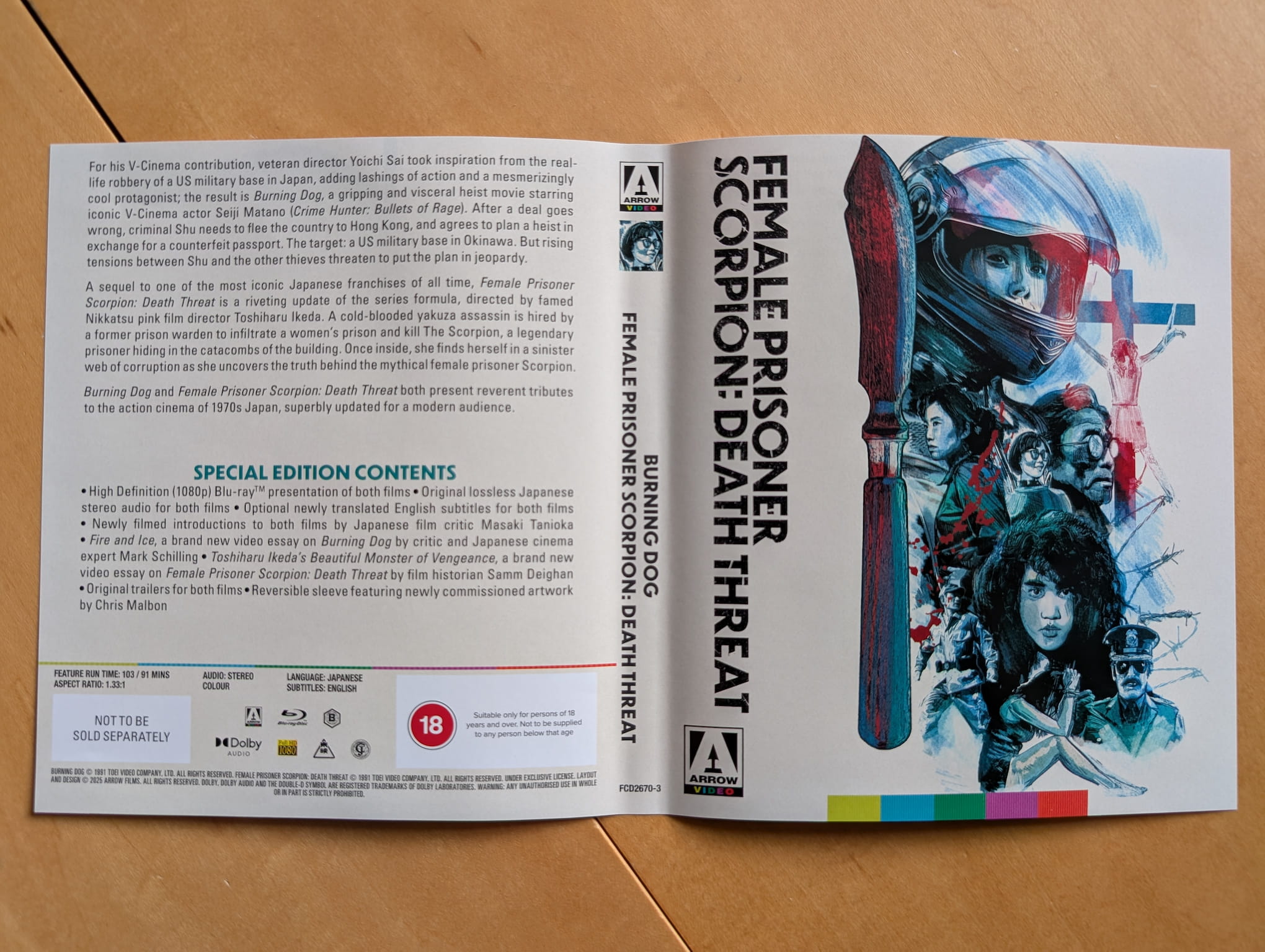 | 3 | Burning Dog High Definition (1080p) Blu-ray presentation Original lossless stereo audio Optional English subtitles Female Prisoner Scorpion: Death Threat High Definition (1080p) Blu-ray presentation Original lossless stereo audio Optional English subtitles |