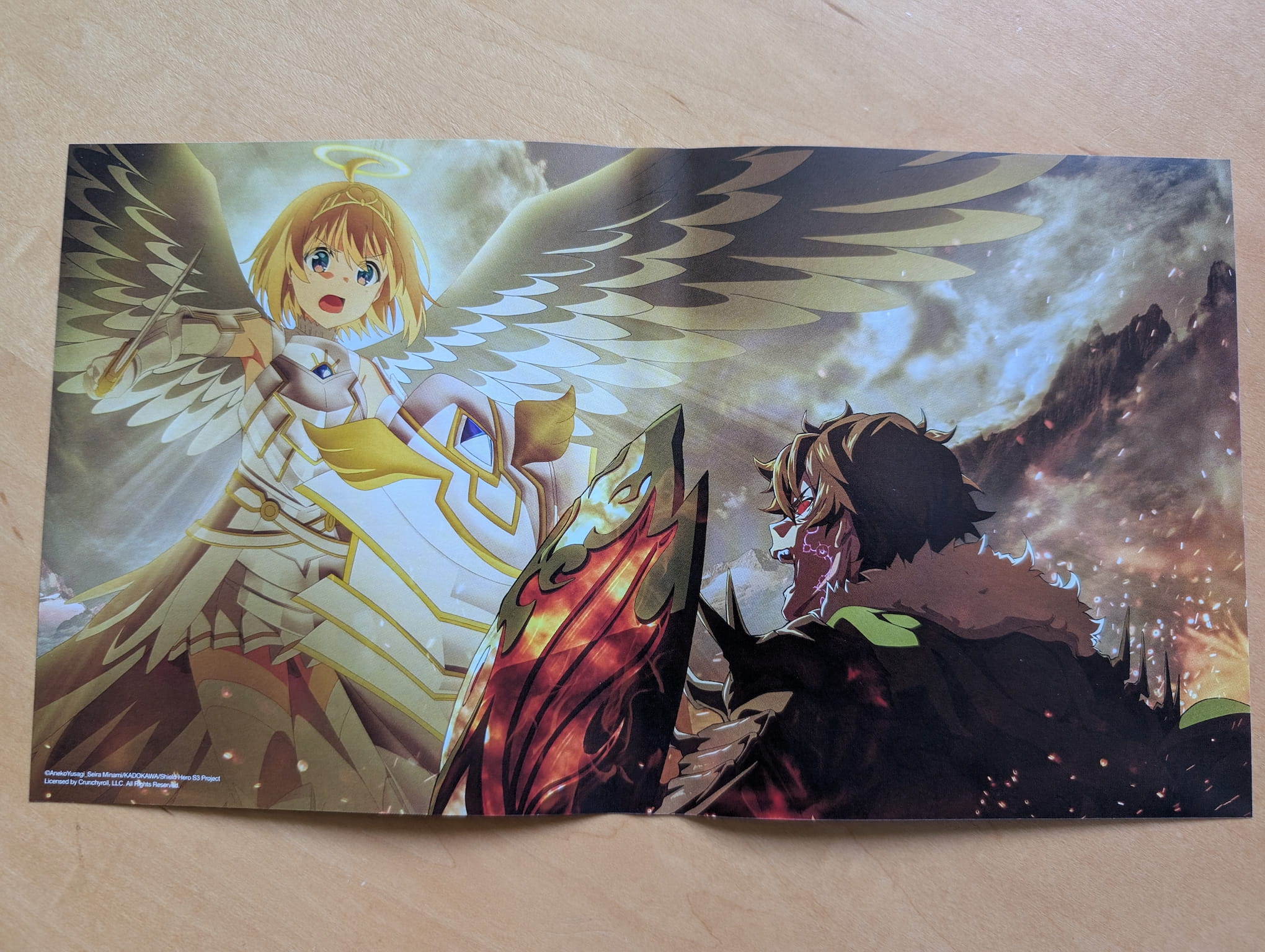 The limited edition release is presented with a rigid box containing an Amaray case with an o-card sleeve to house the Blu-ray & DVD discs, and alongside the case includes an 68-page Artbook and a cardboard box that also contains 6 Art Cards and a Fabric Poster. The artbook includes character designs, item and monster designs, setting artwork and interviews with both the Japanese staff and voice actors.