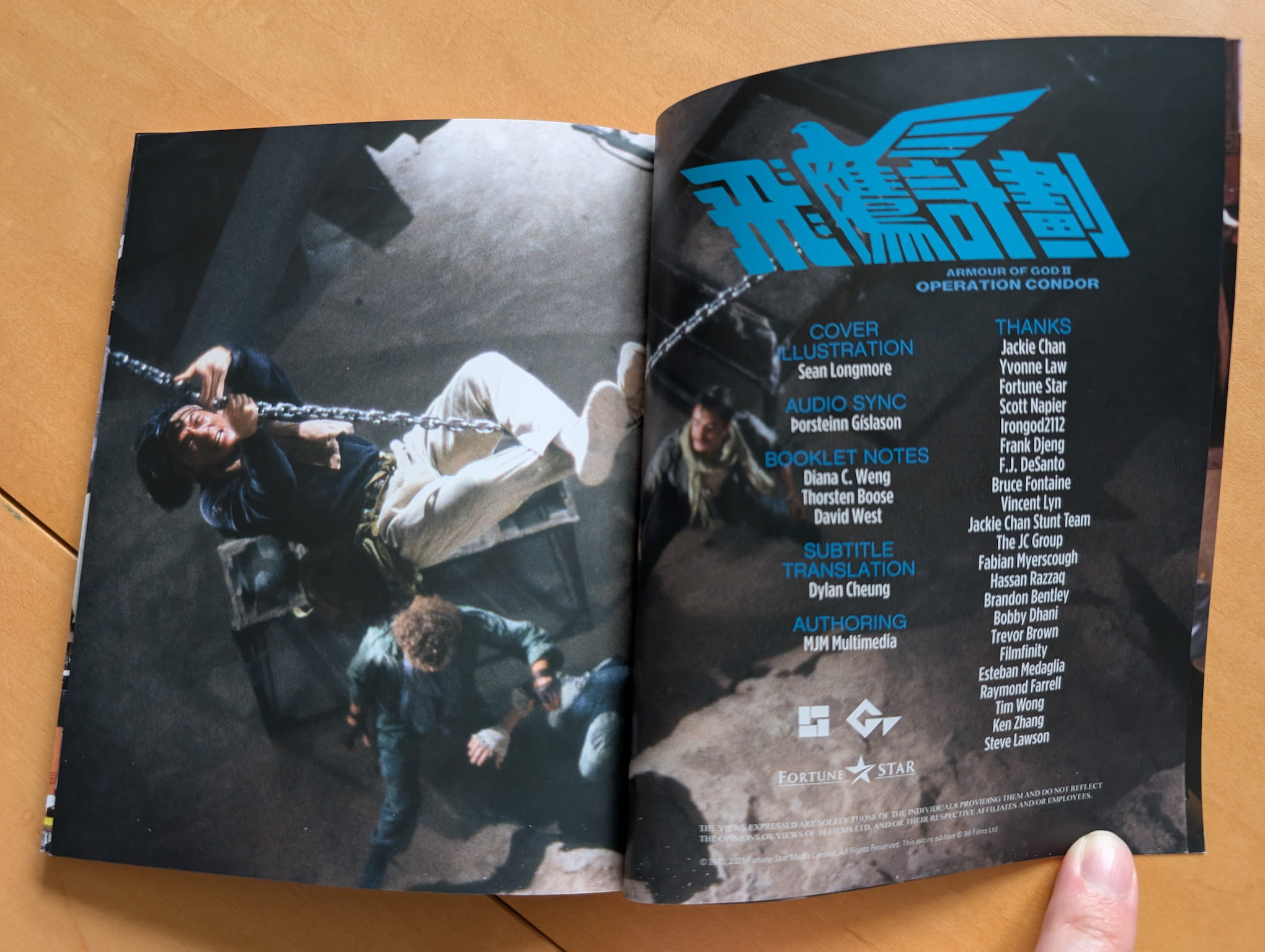 This deluxe limited edition release is presented with a rigid slipcase containing a 4K amaray case housing the discs, a double-sided poster and an 80-page illustrated booklet featuring two new write-ups. The articles covered are ‘Diana Weng’s Hidden Treasures: Digging deep with Jackie Chan’s Dialogue Coach’ by Diana C. Weng & Thorsten Boose, and ‘On The Road Again: Jackie Goes Globetrotting’ by David West.