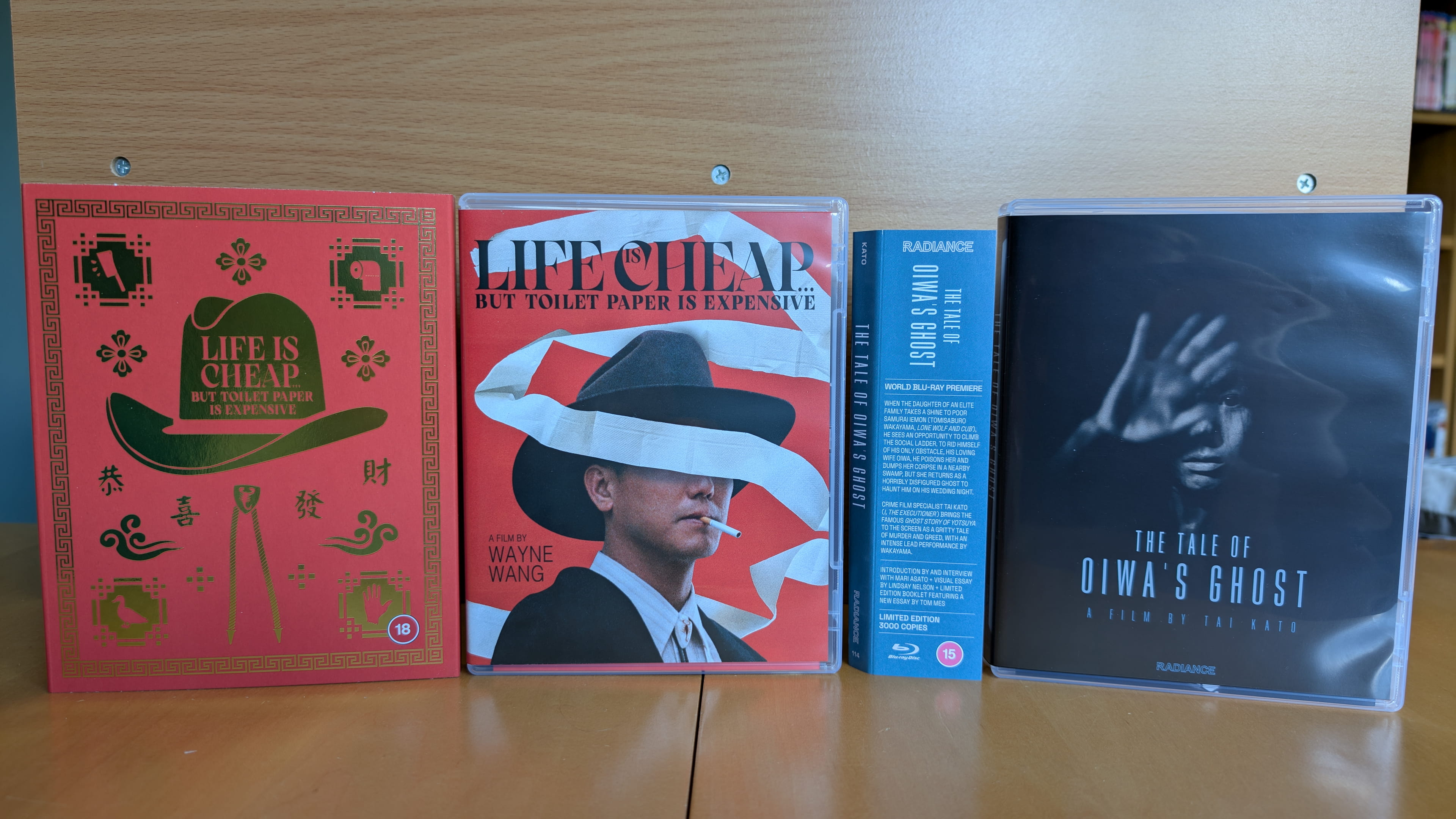 We start off with Wayne Wang’s Life Is Cheap… But Toilet Paper Is Expensive, a 1989 US/Hong Kong film released in the UK on behalf of Arbelos Films, with an exclusive slipcase available on Radiance’s store. The limited edition first print also includes a booklet and scanavo packaging.