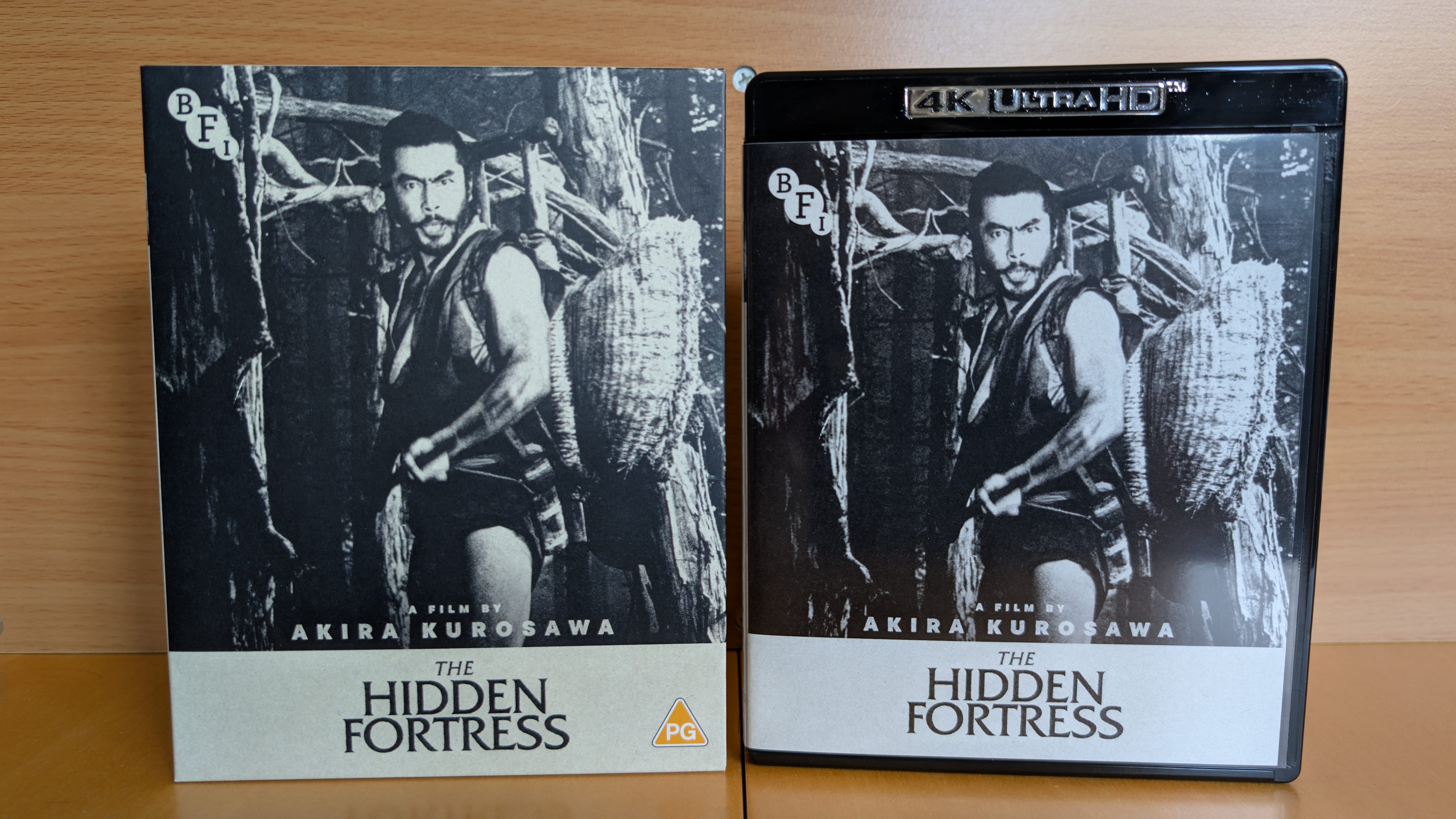 From British Film Institute (BFI) we have The Hidden Fortress (隠し砦の三悪人), Akira Kurosawa’s 1958 film and the last one to be upgraded to 4K Ultra HD from their Samurai collection as the others were released in the past nine months (Seven Samurai, Yojimbo & Sanjuro, and Throne of Blood). This one is presented with an o-card sleeve, UHD amaray case and a booklet with various notes about the film and specs.