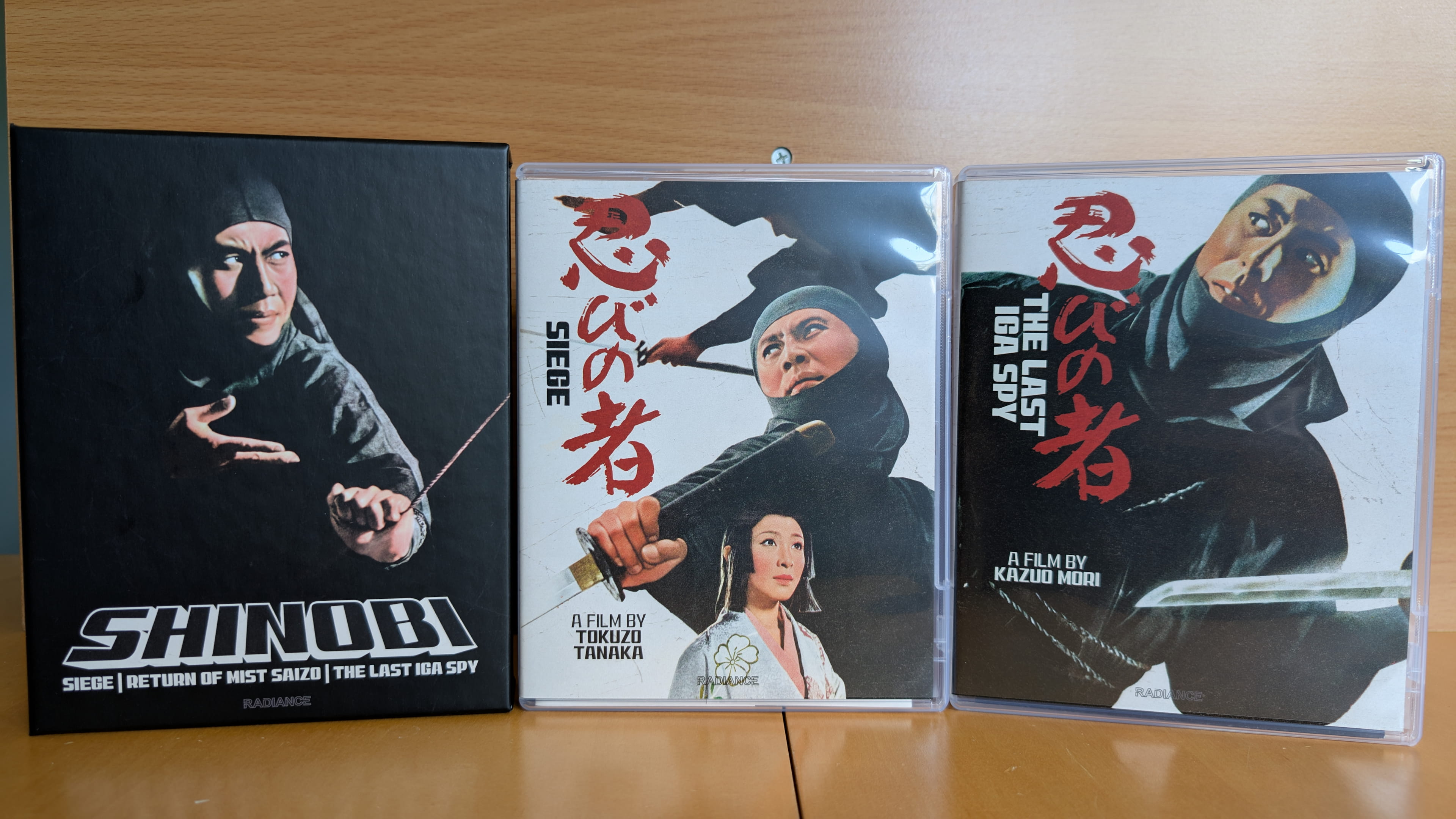 From Radiance Films it’s the second Shinobi box set consisting of the franchise’s fourth to sixth films; Shinobi: Siege (忍びの者 霧隠才蔵), Tokuzō Tanaka’s 1964 film, Shinobi: The Return of Mist Saizo (忍びの者 続・霧隠才蔵), Kazuo Ikehiro’s 1964 film, and Shinobi: The Last Iga Spy (忍びの者 伊賀屋敷), Kazuo Mori’s 1965 film.