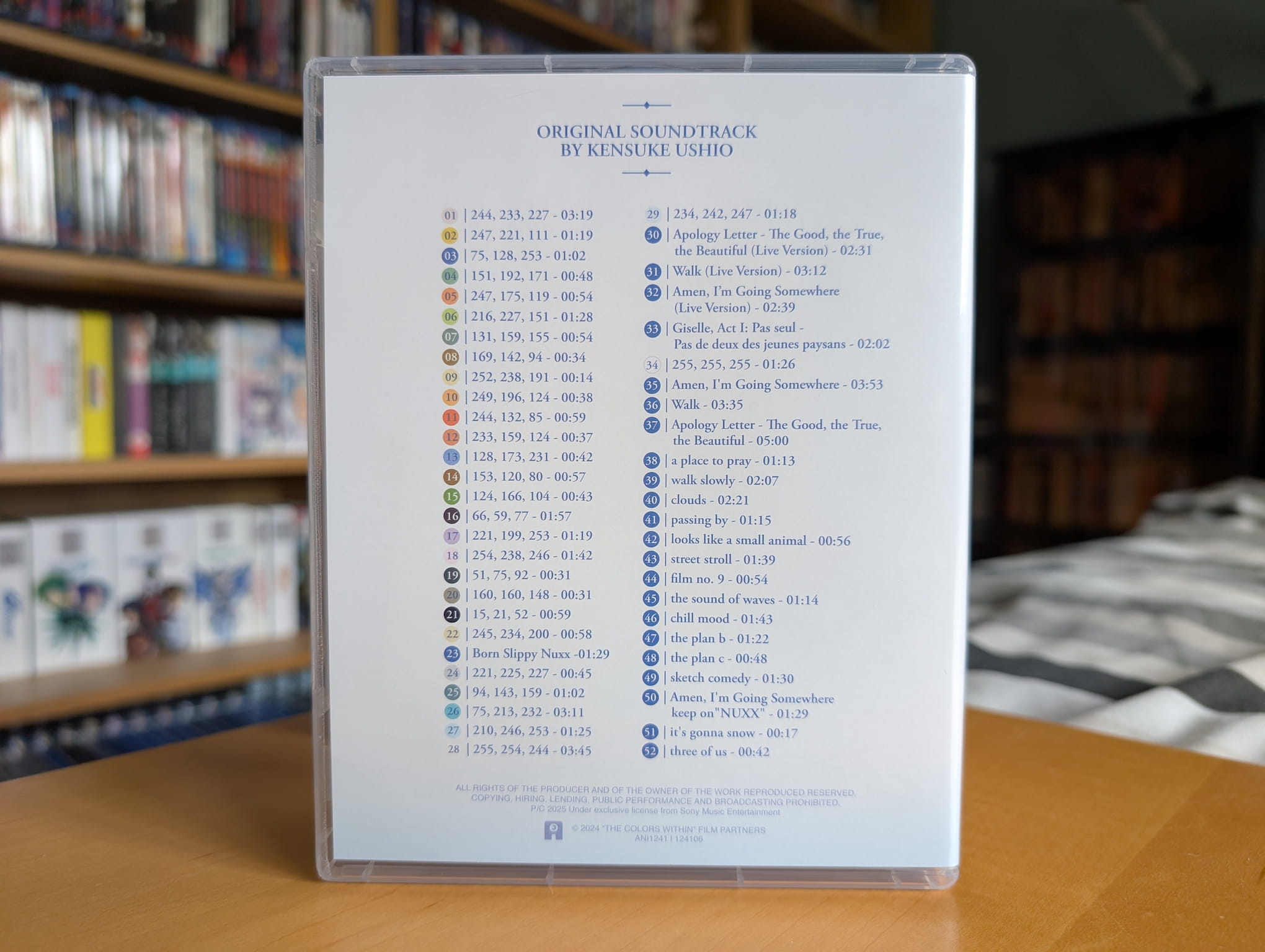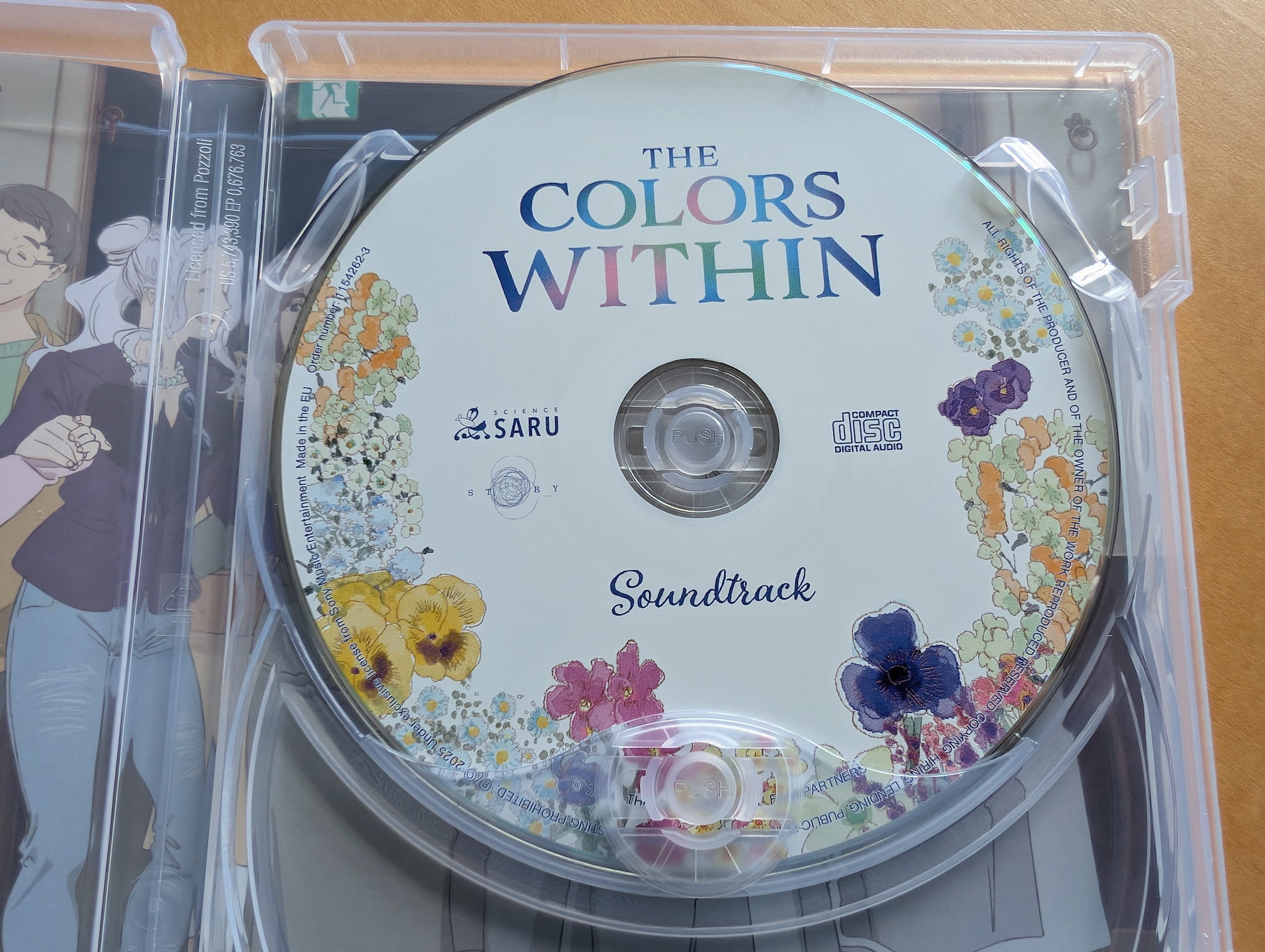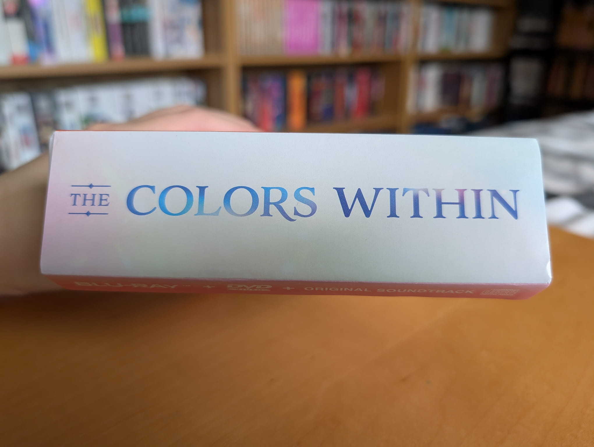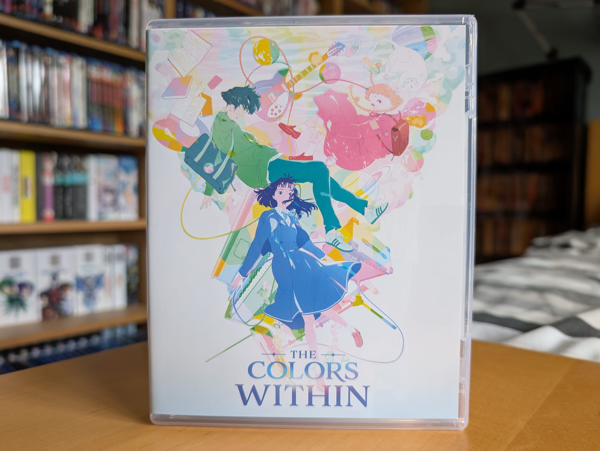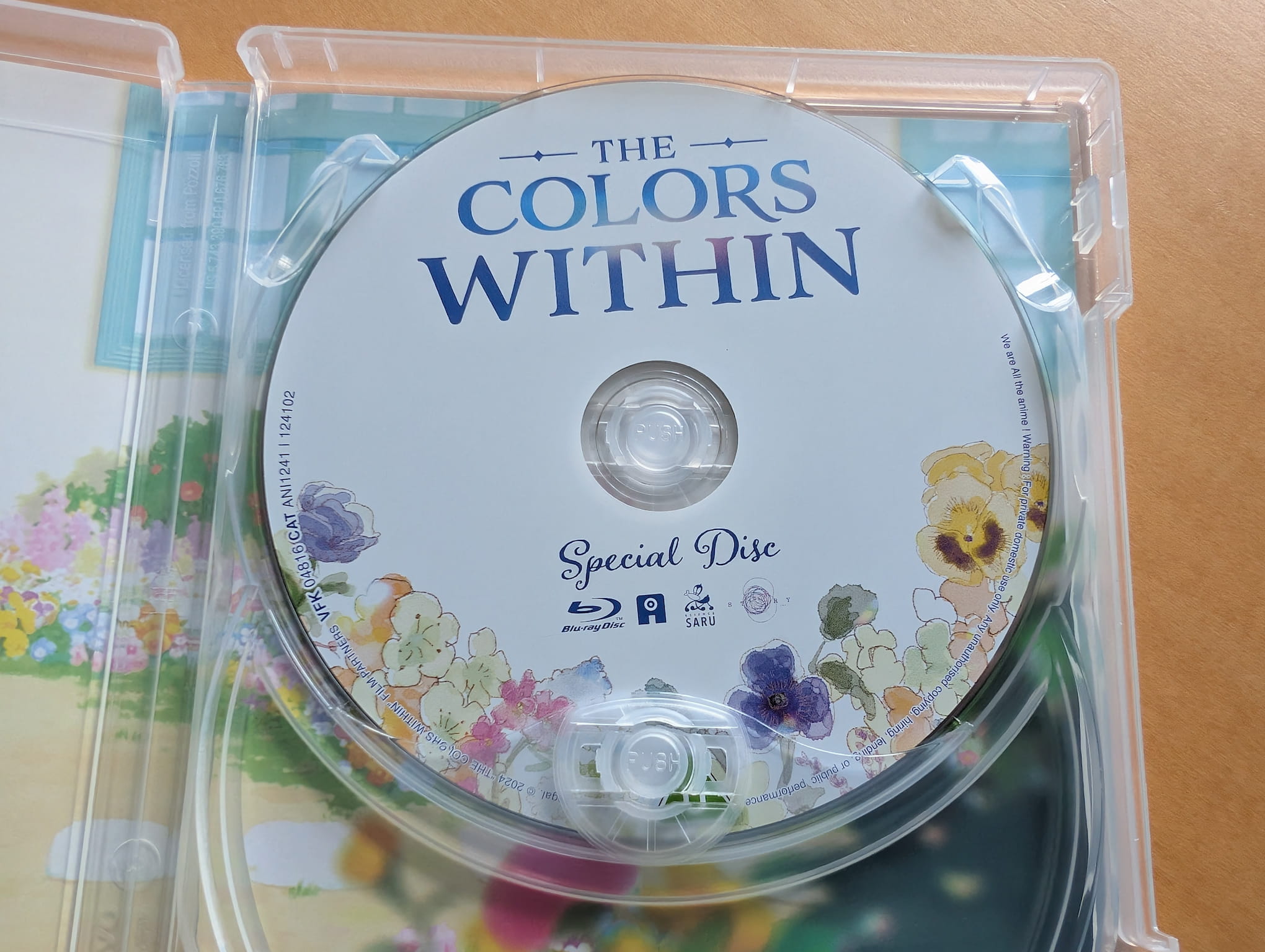 The collector’s edition release for The Colors Within contains the film on a single Blu-ray disc and single DVD disc, plus an additional Blu-ray disc exclusive to this release filled with additional bonus features. The discs were authored and encoded by Plaion Pictures.