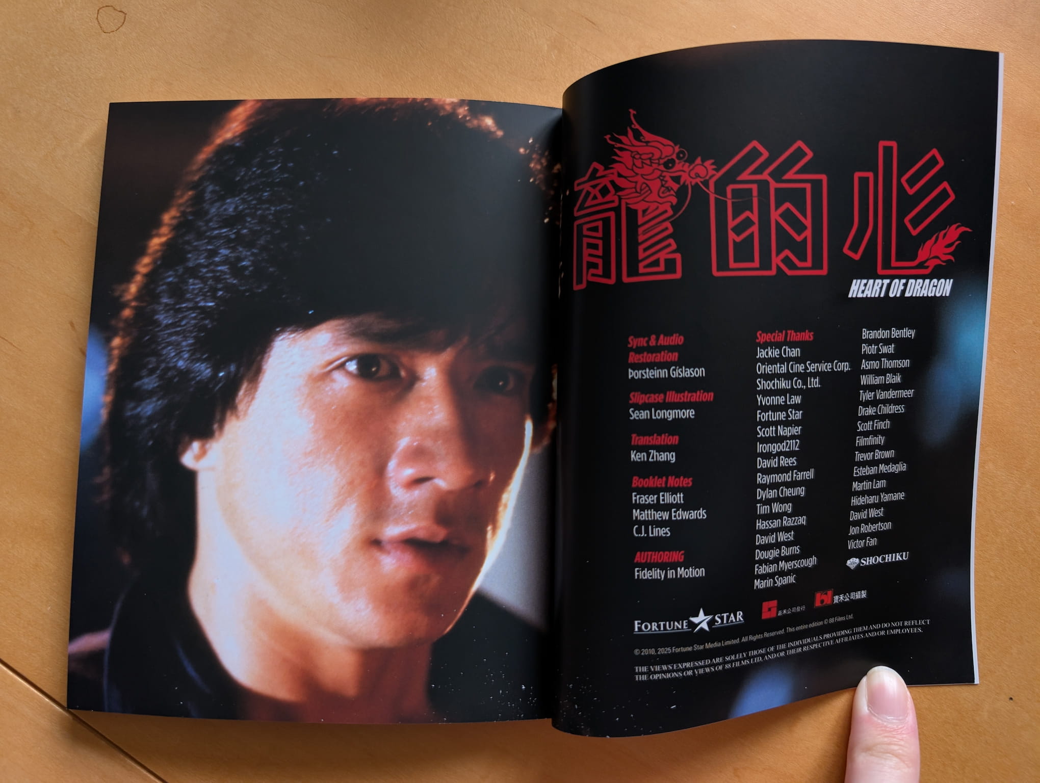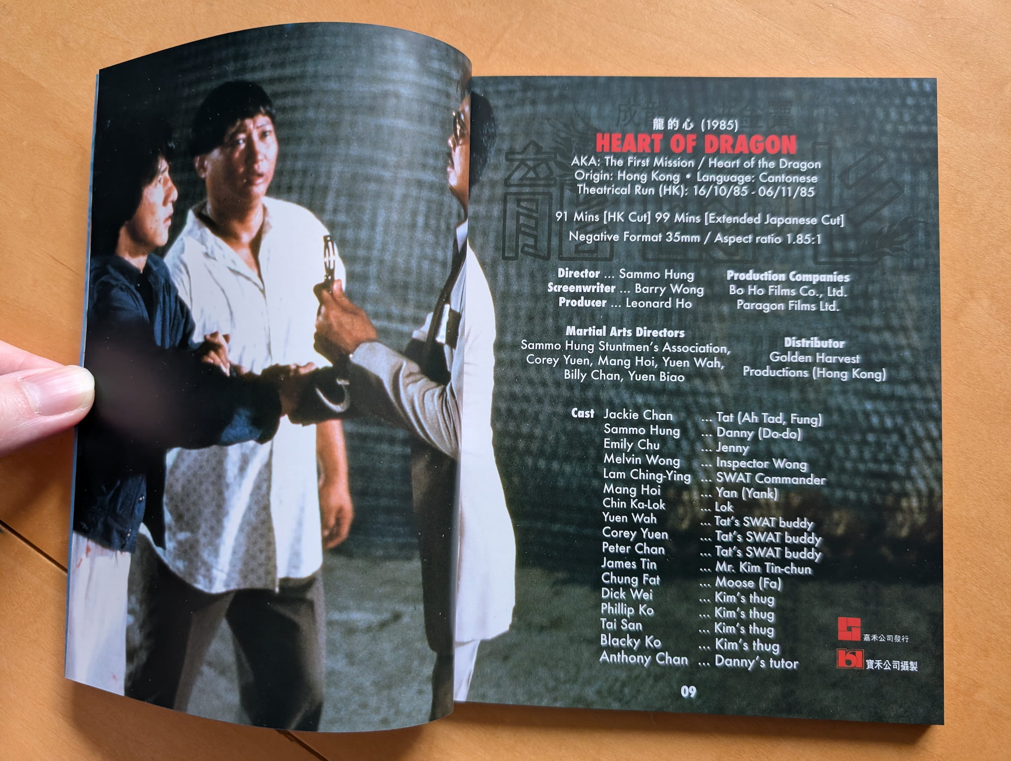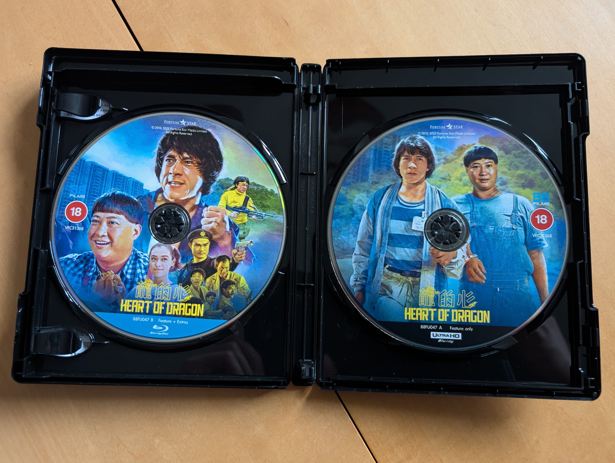 The deluxe limited edition release for Heart of Dragon contains the film on a single 4K Ultra HD disc and a single Blu-ray disc. All the discs were encoded and authored by Fidelity in Motion on behalf of 88 Films.