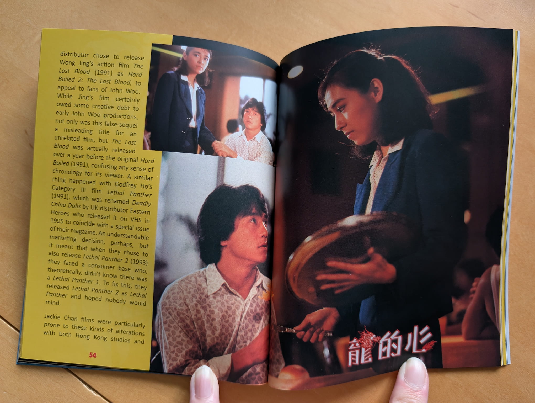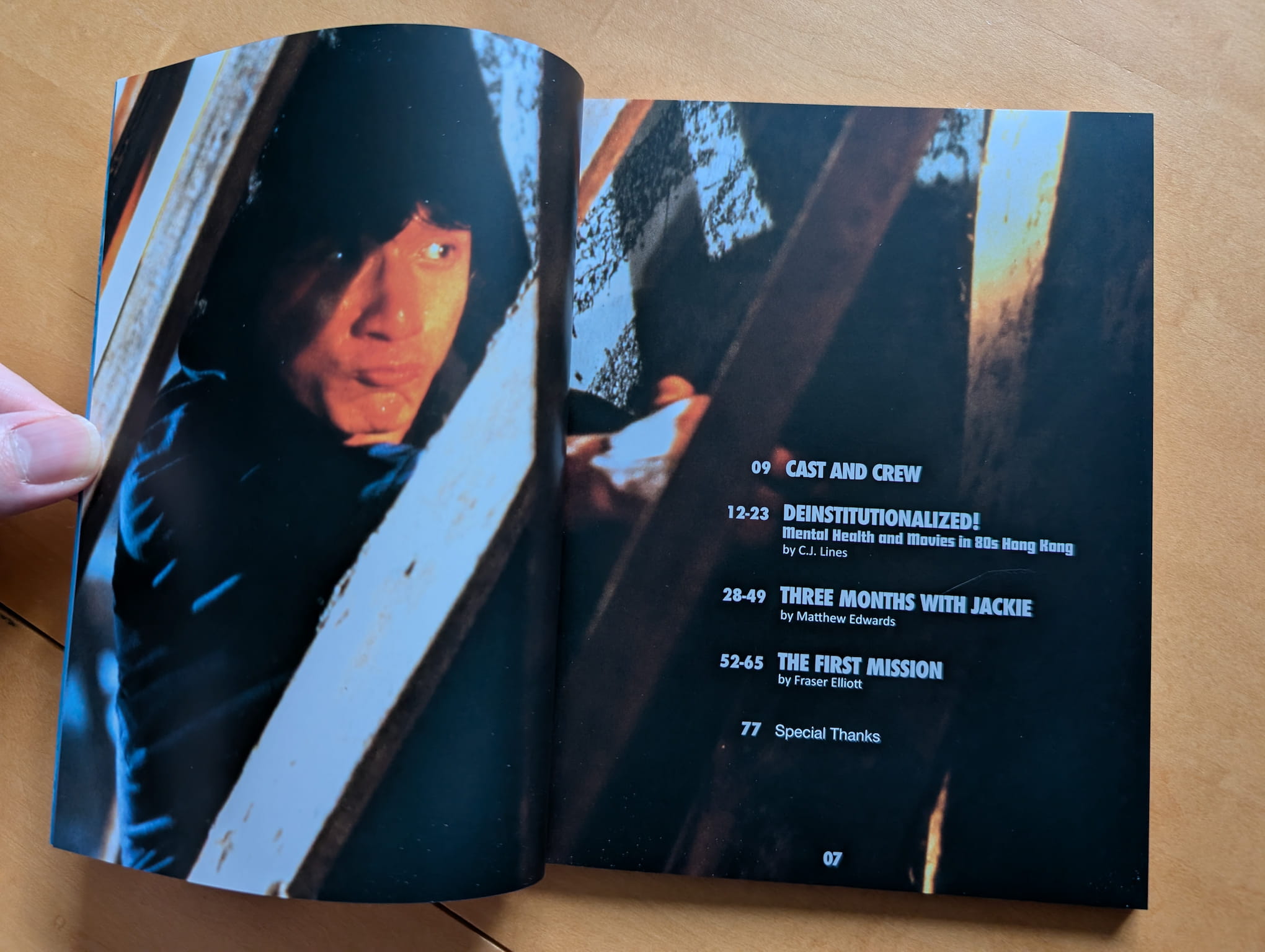 This deluxe limited edition release is presented with a rigid box showcasing newly illustrated artwork by Sean Longmore, a 4K Ultra HD Amaray case housing the discs, 6 replica lobby cards, double-sided poster featuring newly illustrated artwork and the original Hong Kong poster artwork, and an 80-page perfect-bound book featuring three write-ups. The articles covered are ‘Deinstitutionalized! Mental Health and Movies in 80s Hong Kong’ by C.J. Lines, ‘Three Months with Jackie’ by Matthew Edwards, and ‘The First Mission’ by Fraser Elliott.