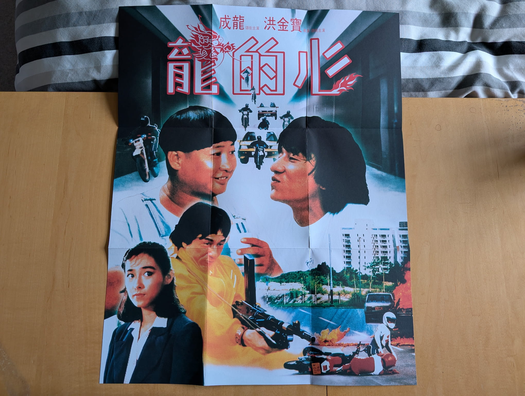 Heart of Dragon (龍的心) is a 1985 live-action theatrical Hong Kong film directed by Sammo Hung and Fruit Chan, and produced by Leonard Ho and Jessica Chan Pui-Wah, with distribution by Golden Harvest. The film starred Jackie Chan, Sammo Hung, Emily Chu Bo-Yee, Mang Hoi, Melvin Wong Gam-Sam, and Lam Ching-Ying, with screenplay writers Barry Wong Ping-Yiu and Bosco Lam Tsz-Ho, and music composed by Violet Lam, Sherman Chow Gam-Cheung, and Calvin Poon Yuen-Leung. The film was theatrically released in October 1985 for Hong Kong, and a month prior in Japan.