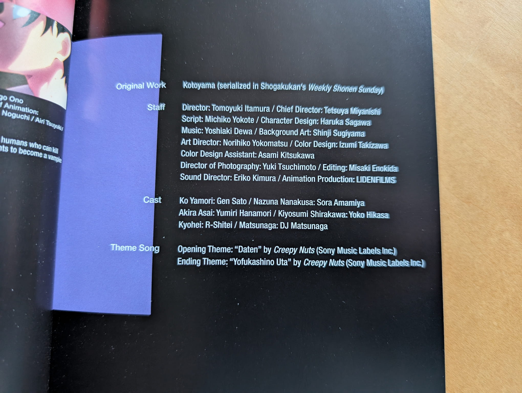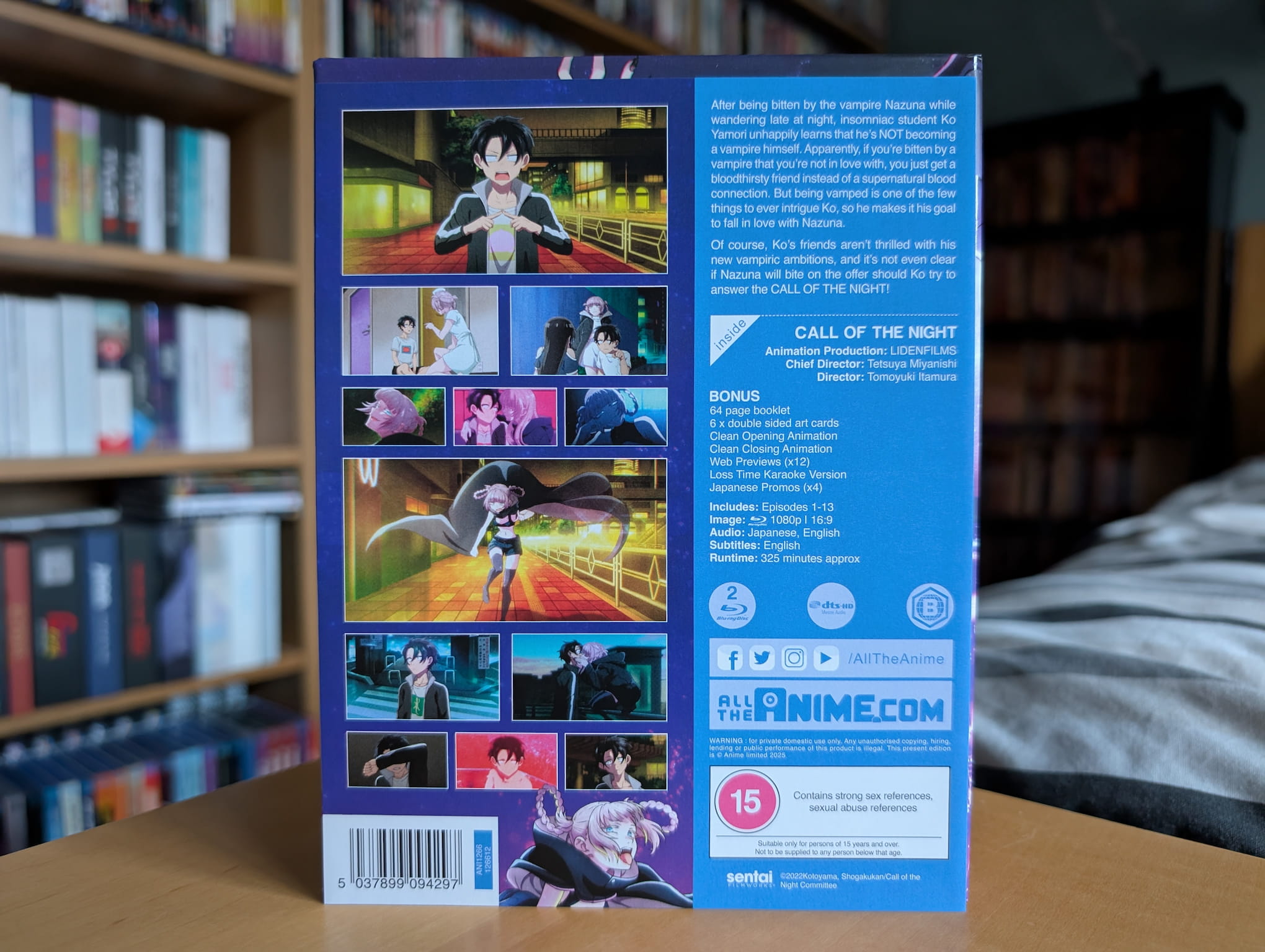 As previously mentioned, Sentai Filmworks secured the streaming and home video rights for Call of the Night as well as its second season later down the line. HIDIVE handled the simulcast and the two also produced an English dub. The series was released on home video followed by a premium edition much later down the line, but over here in the United Kingdom Anime Limited announced they secured the UK home video rights at MCM London Comic Con in May 2025. Unlike The Dangers in My Heart which was announced at the same panel, they only revealed the first season for the time being. The UK release was initially delayed to January 2026 but stock arrived on time for its November release date.