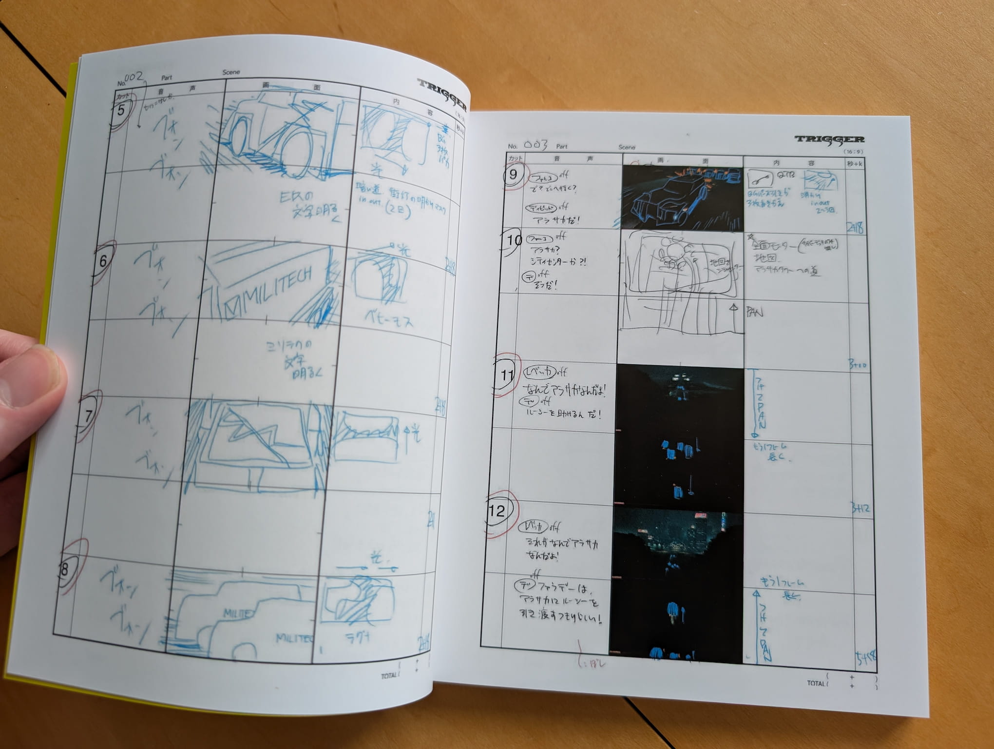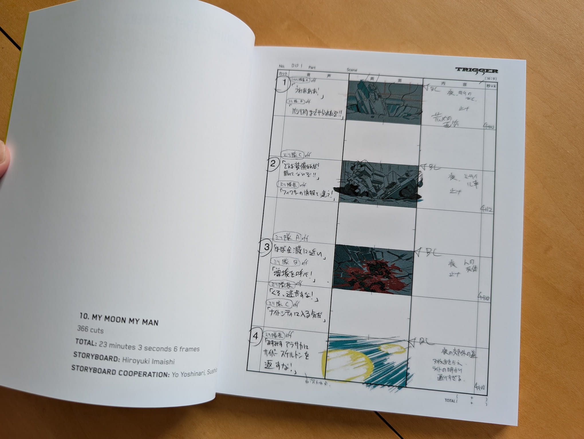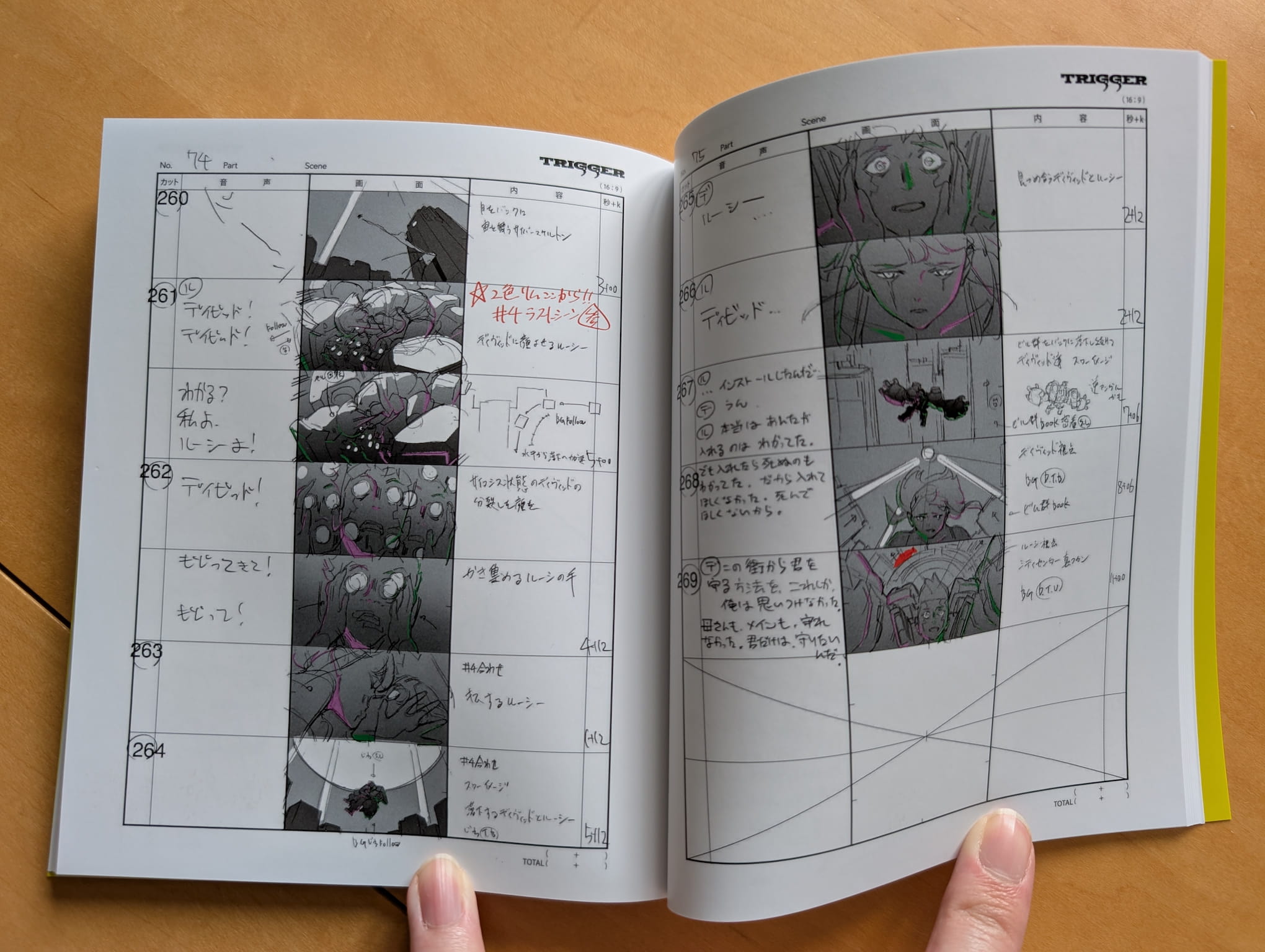 The collector’s edition release is presented with a rigid box with an o-card slipcase, an digipack case housing the discs, a 48-page illustration booklet, a 112-page storyboard book focusing on the final episode of the series, a 67.2 x 35.6cm 2nd year anniversary artwork poster, 3 reproduction cells and a special metallic Lucy art card. The illustration booklet includes character designs, episode guide, key animation images and an interview with the series director Hiroyuki Imaishi.