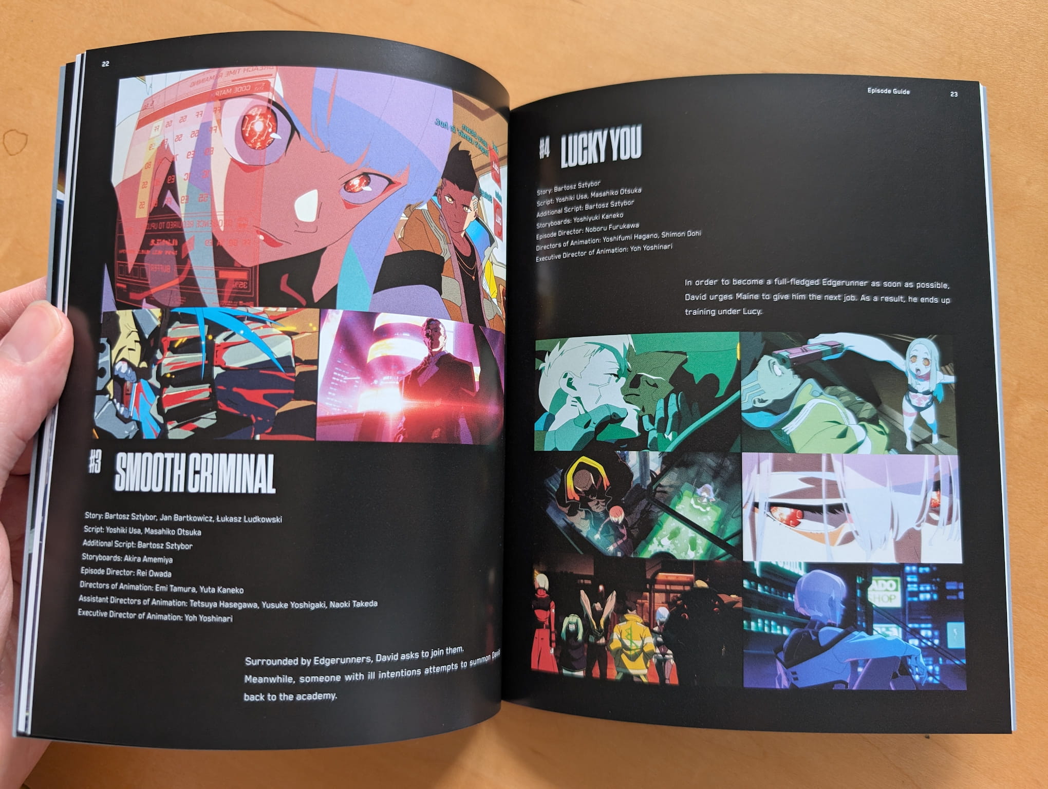 Cyberpunk: Edgerunners (サイバーパンク エッジランナーズ) is a 2022 original net anime series based on CD Projekt Red’s video game Cyberpunk 2077 which in itself was also based on Mike Pondsmith’s tabletop game series Cyberpunk. The series was adapted by studio Trigger, and the staff credits include director Hiroyuki Imaishi, screenplay writers Masahiko Otsuka and Yoshiki Usa, character designer Yoh Yoshinari, and music composed by Akira Yamaoka. The series launched on Netflix worldwide on September 2022.