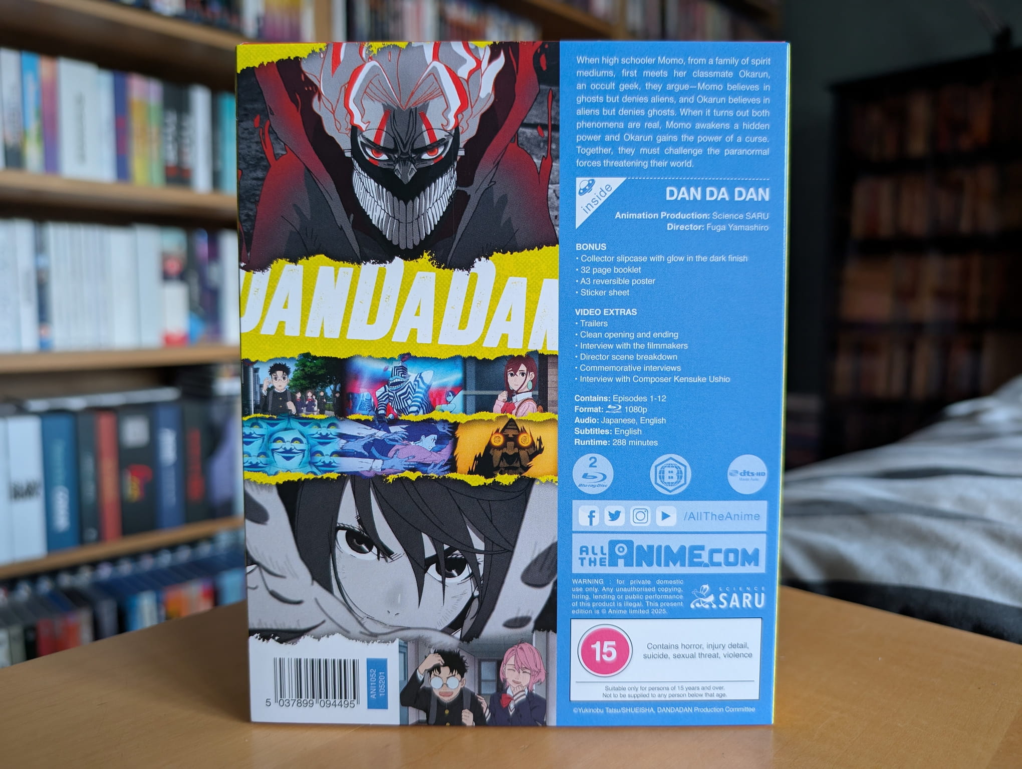 The collector’s edition Blu-ray release for DANDADAN Season 1 contains all 12 episodes across two Blu-ray discs, with the encode and authoring done by GKIDS via their June 2025 release.