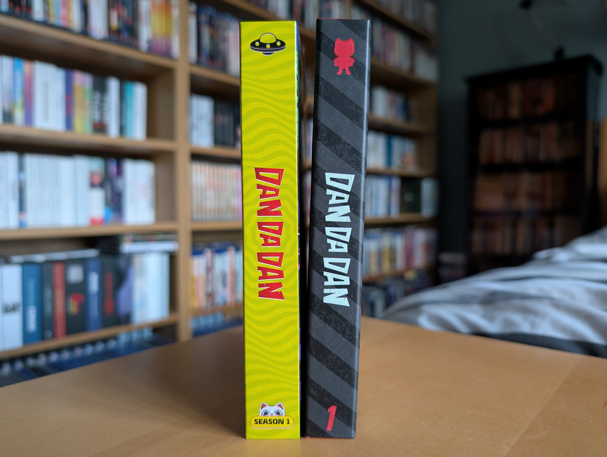 DANDADAN Season 1 was released pretty quickly by GKIDS with its own collector’s edition while Anime Limited took a lot longer to release theirs. But it’s still a neat set, but we have two variations. The more accessible version is the Yokai Edition, which is what I went for, featured Okarun, Turbo Granny, Aira, and Jiji on the cover, while the Store Exclusive version is the Alien Edition, featuring Momo, Turbo Granny, Seiko, and aliens on the cover.