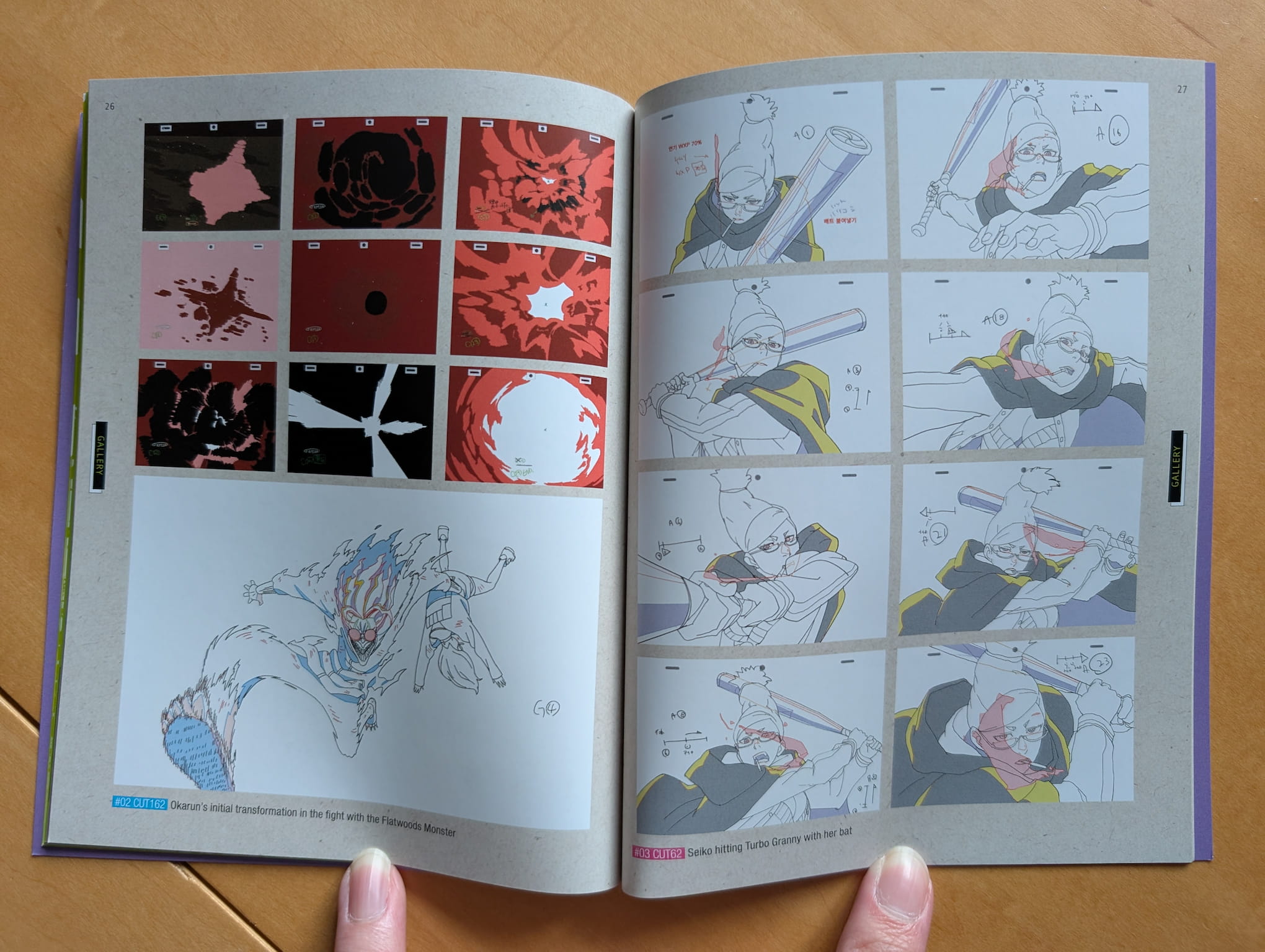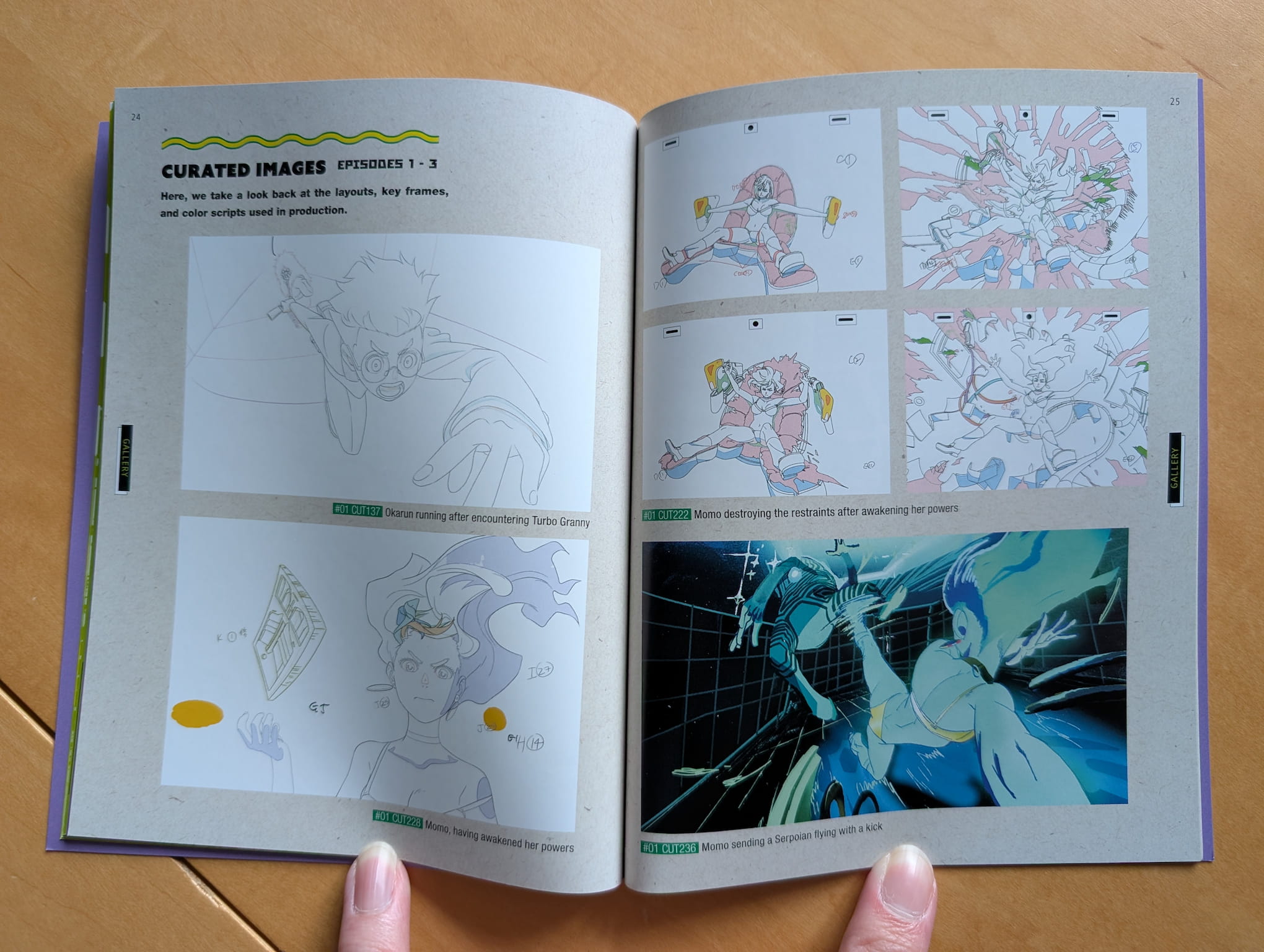 Both are pretty much identical in content otherwise. The collector’s edition release is presented with a rigid box with an o-card glow in the dark slipcase, a Scanavo case housing the discs, a 32-page booklet, A3-sized double-sided poster and a sticker sheet. The booklet includes character designs, key visuals and discussions with the staff of the series.