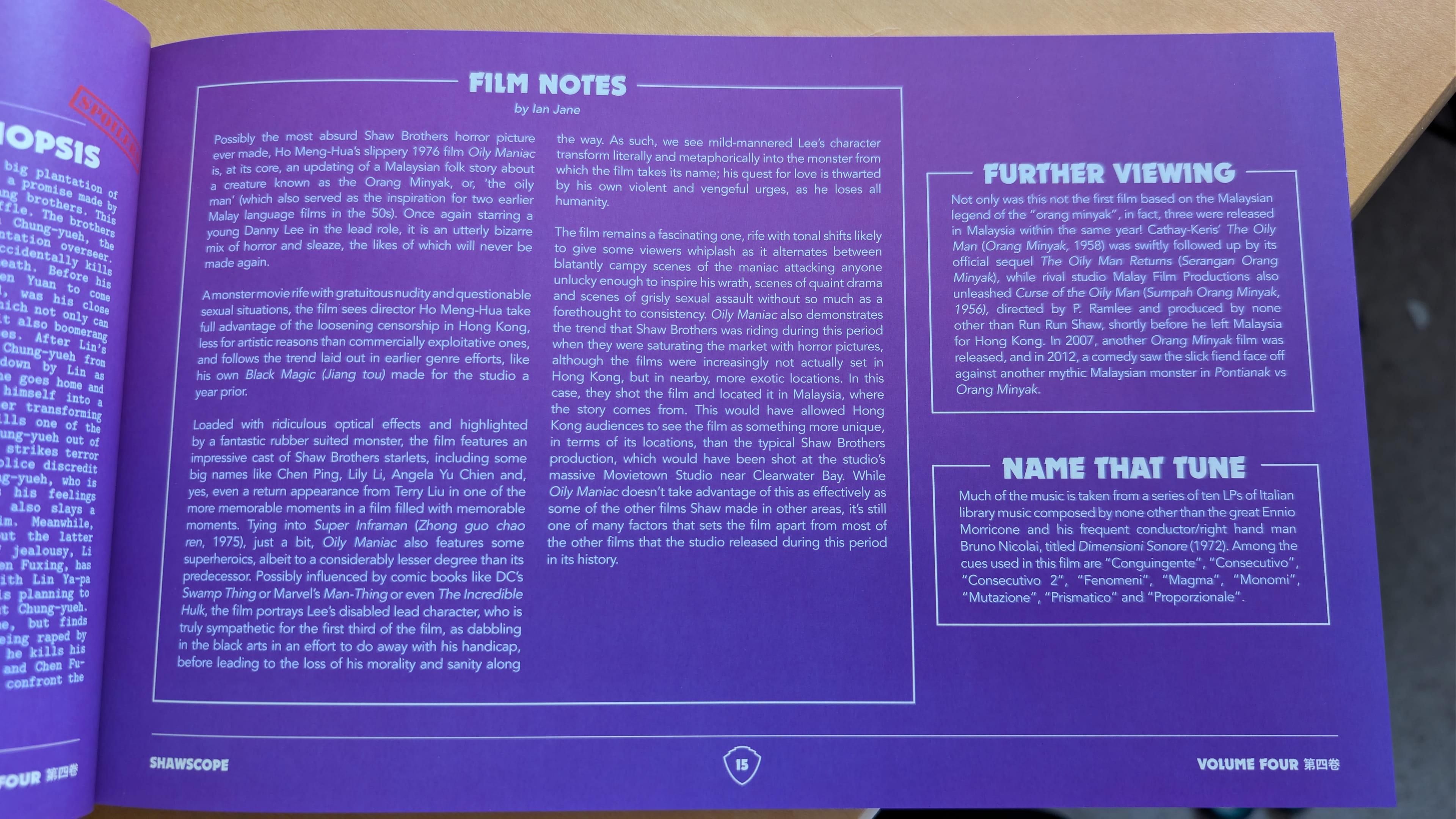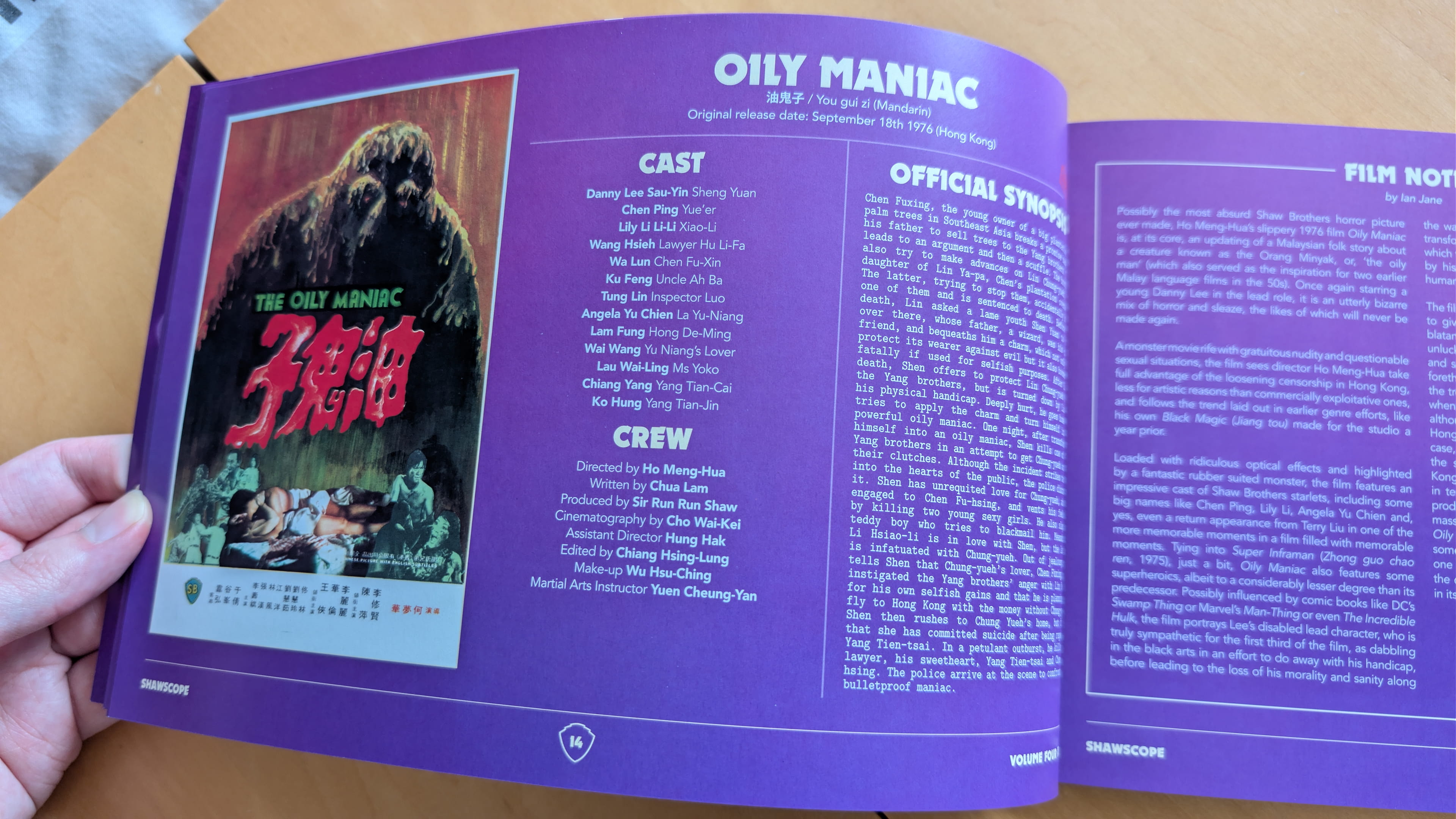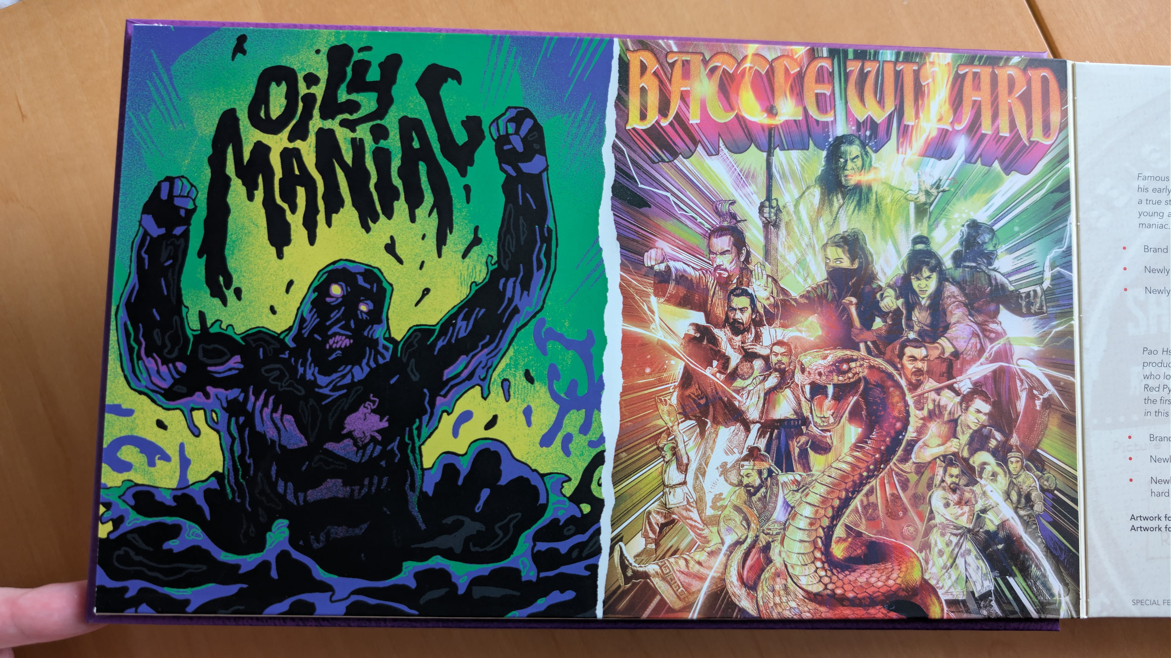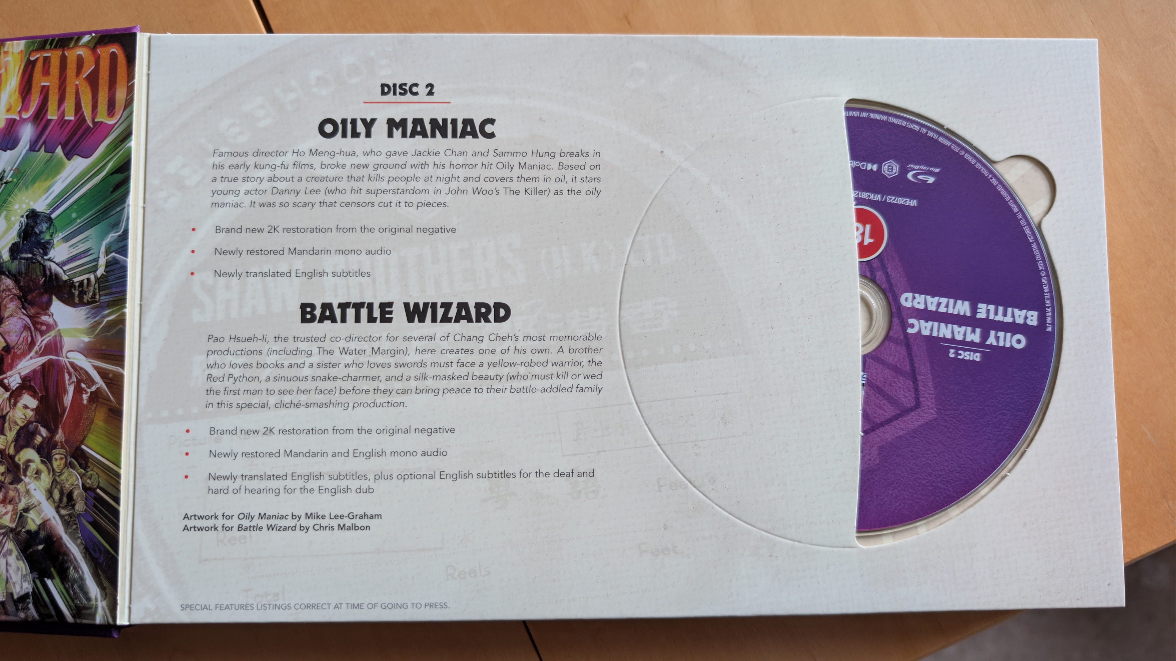 | 2 | The Oily Maniac Brand new 2K restoration from the original negatives by Arrow Films Newly restored lossless Mandarin mono Newly translated English subtitles The Battle Wizard Brand new 2K restoration from the original negatives by Arrow Films Newly restored lossless Mandarin and English mono Newly translated English subtitles, plus optional hard-of-hearing subtitles for the English dub |