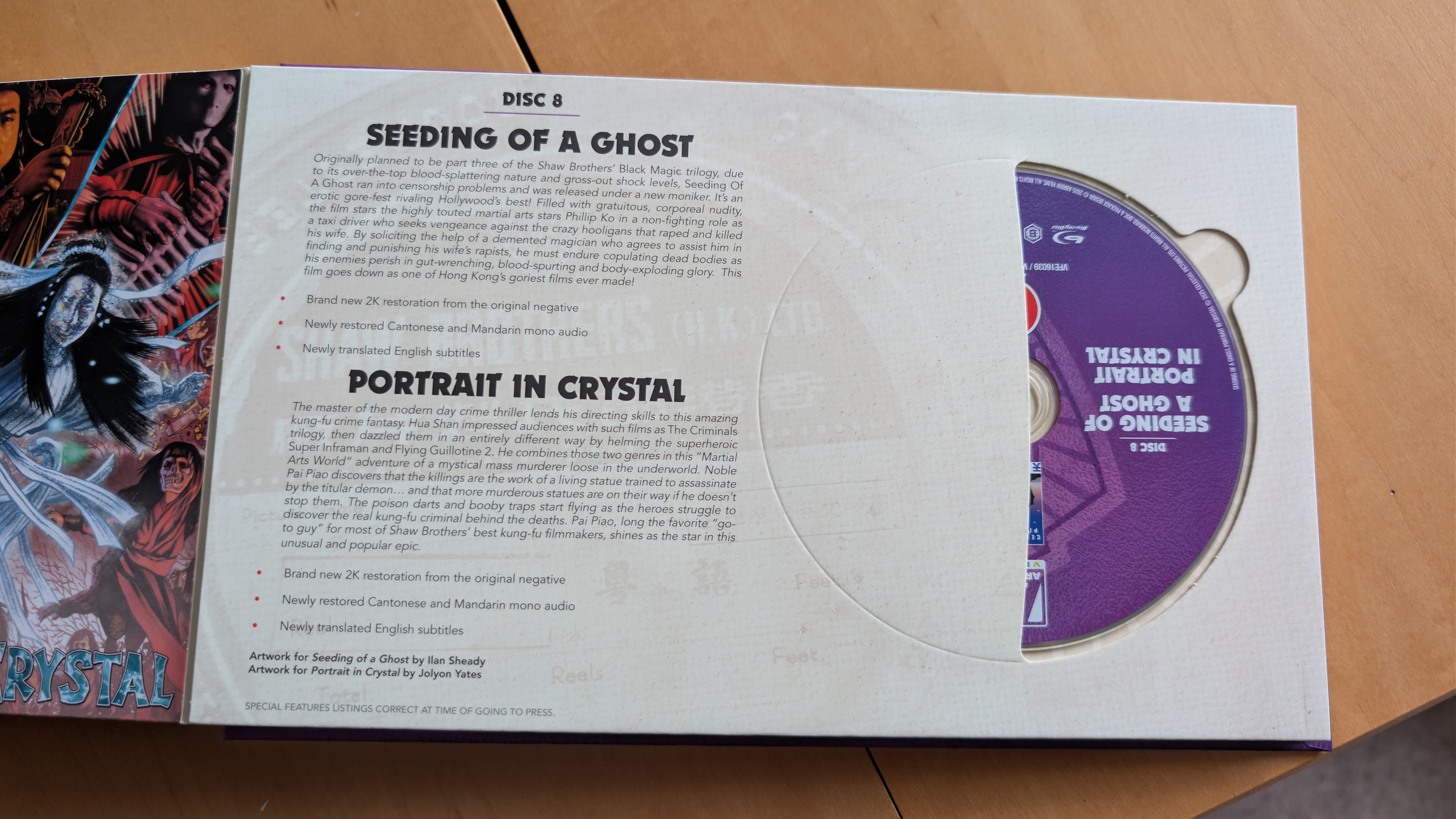| 8 | Seeding of a Ghost Brand new 2K restoration from the original negatives by Arrow Films Newly restored lossless Cantonese and Mandarin mono audio Newly translated English subtitles Portrait in Crystal Brand new 2K restoration from the original negatives by Arrow Films Newly restored lossless Cantonese and Mandarin mono audio Newly translated English subtitles |