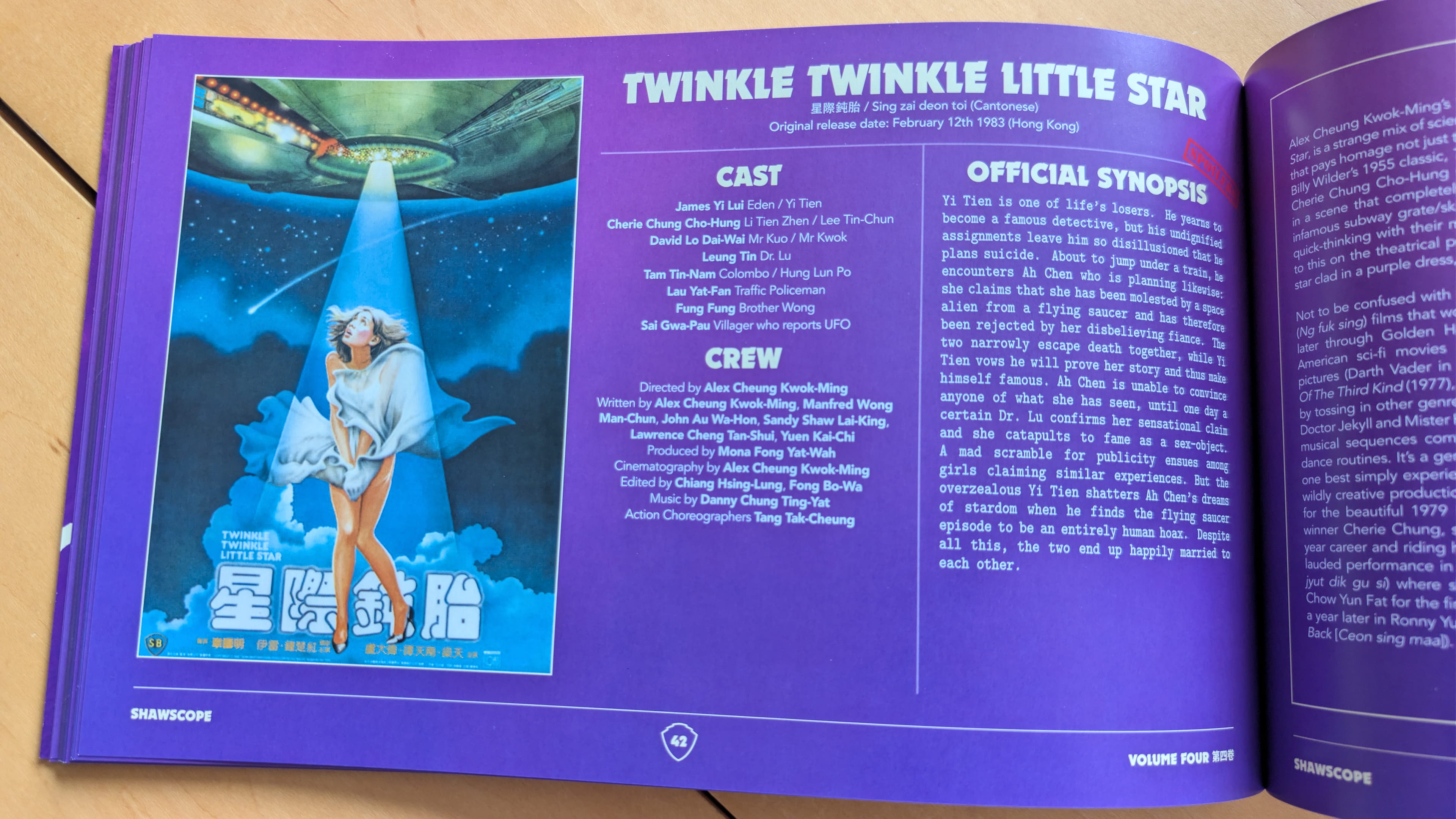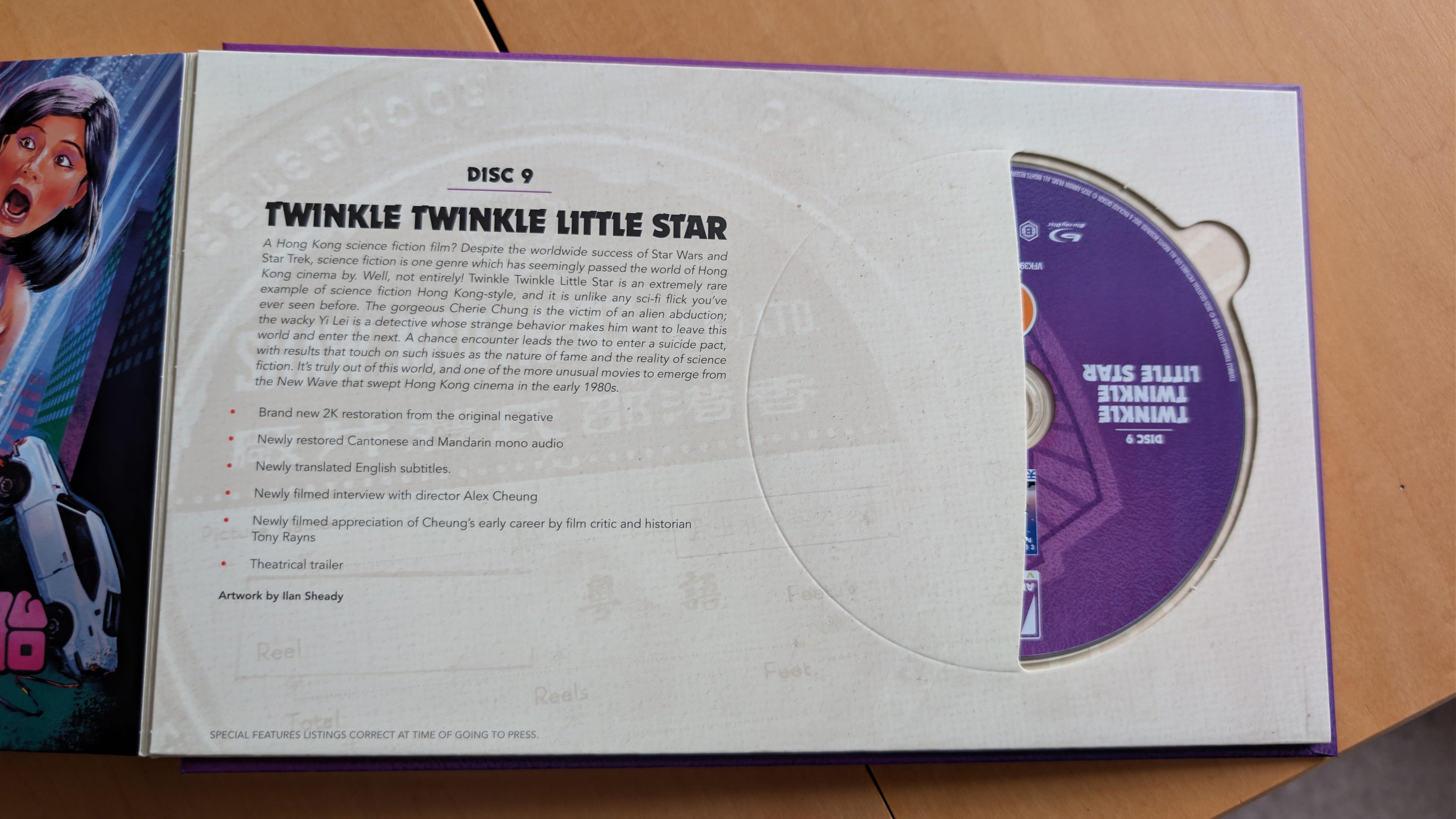 | 9 | Twinkle Twinkle Little Star Brand new 2K restoration from the original negatives by Arrow Films Newly restored lossless Cantonese and Mandarin mono audio Newly translated English subtitles Seamless branching option to watch Cantonese version with additional scene from Mandarin version Note about Cantonese version from Arrow Video: One minute of footage was removed from Cantonese-language versions due to references to Deng Xiaoping, the leader of the People’s Republic of China at that time. This scene was kept for the Mandarin-language version released in Taiwan. If you play the film in Cantonese with the additional scene, it will briefly switch to Mandarin and back again, as the Cantonese audio is partially lost. |