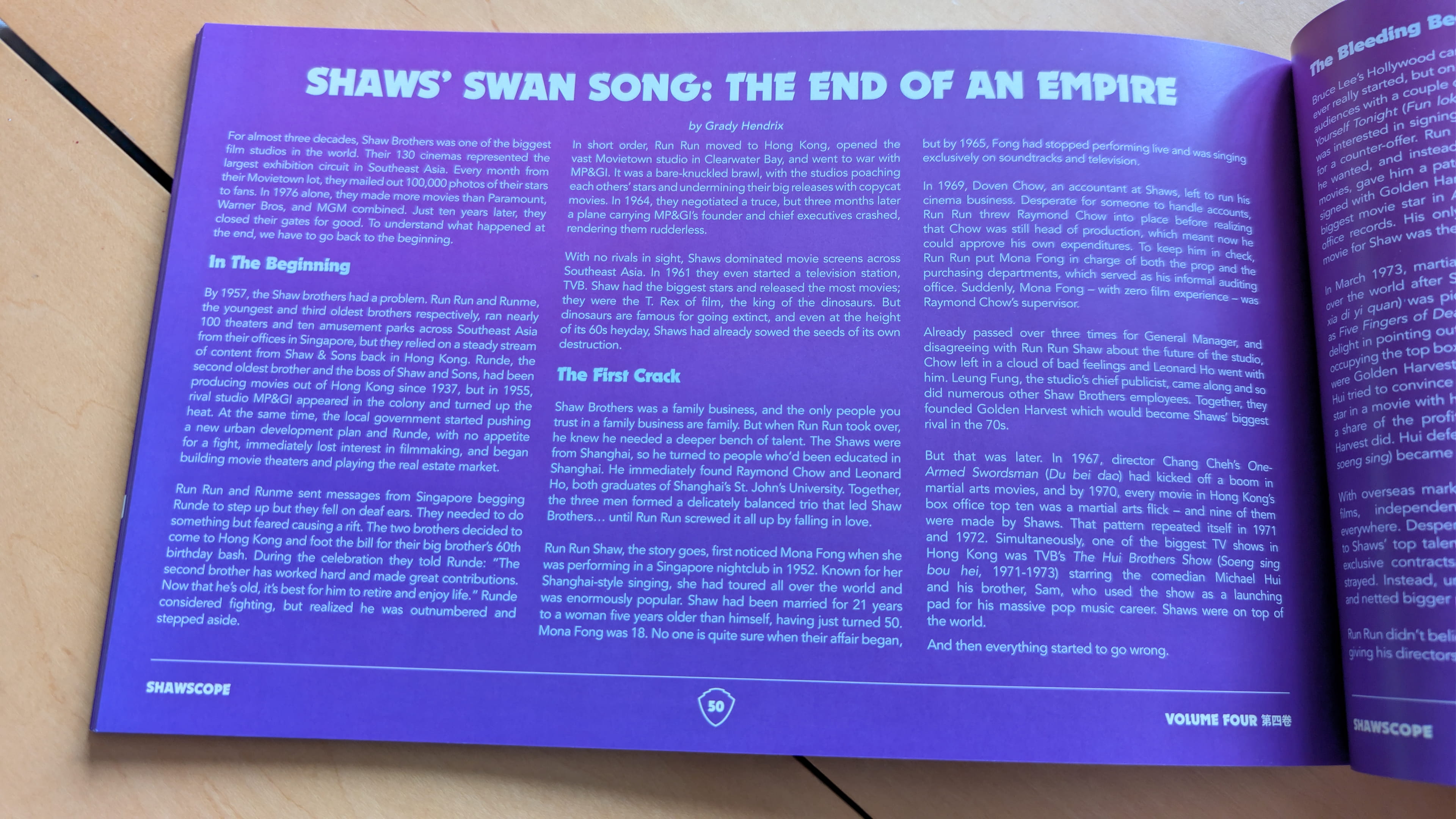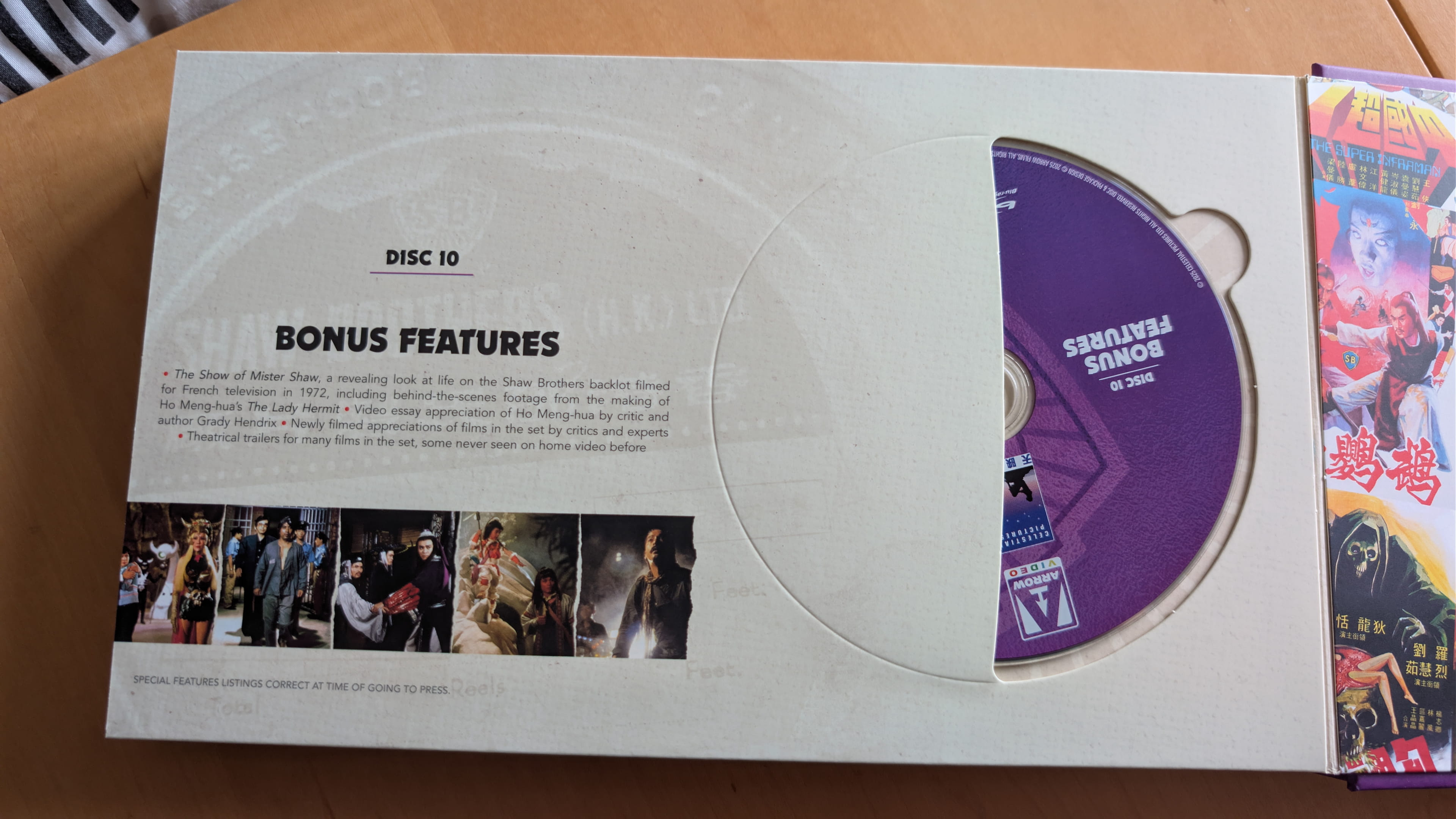 While previous releases have included CDs with various music tracks, this is the first volume not to feature any. Instead we have a bonus Blu-ray disc that includes extra on-disc bonus features for various films and a French TV profile called Hong Kong: The Show of Mister Shaw.