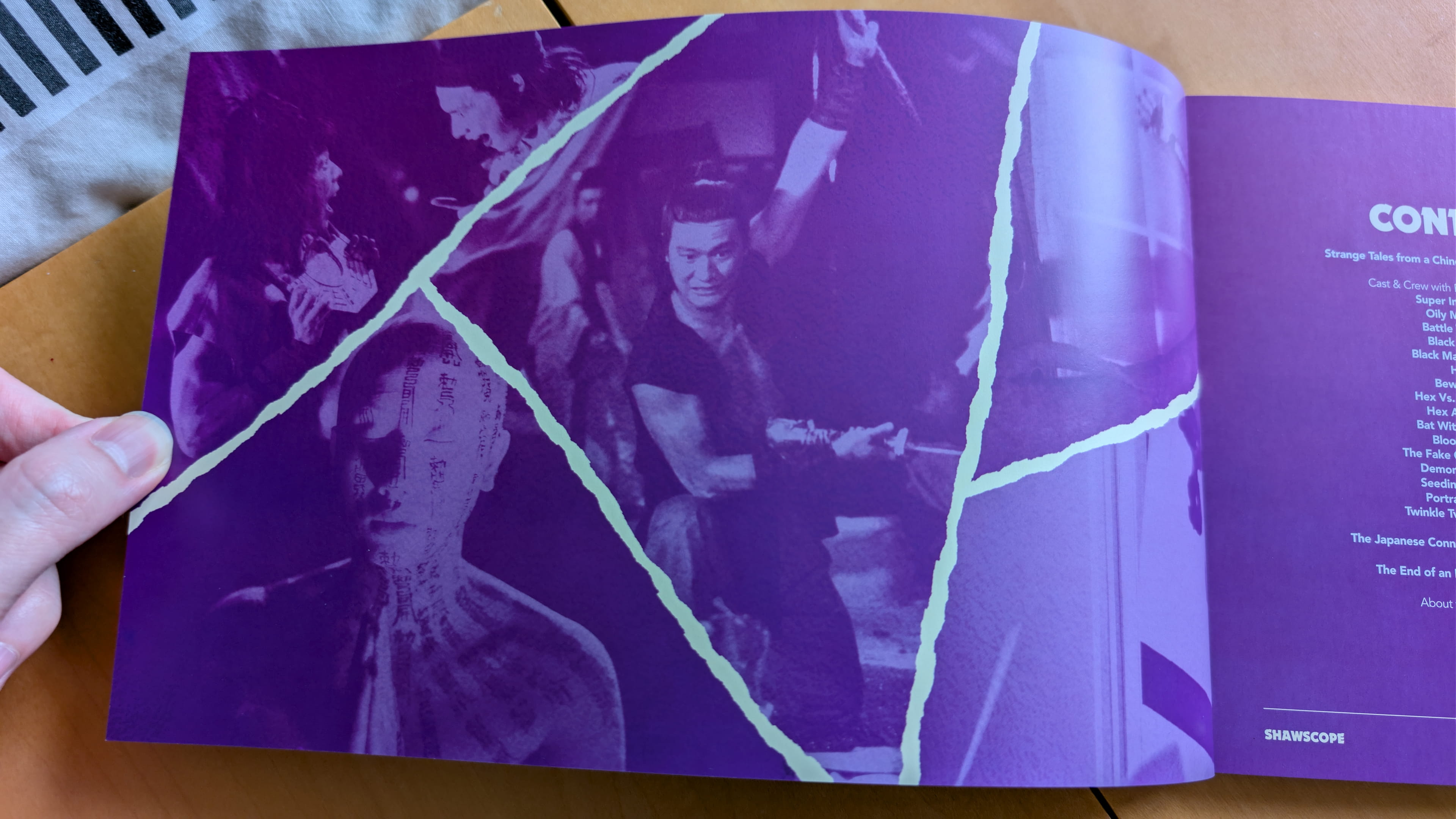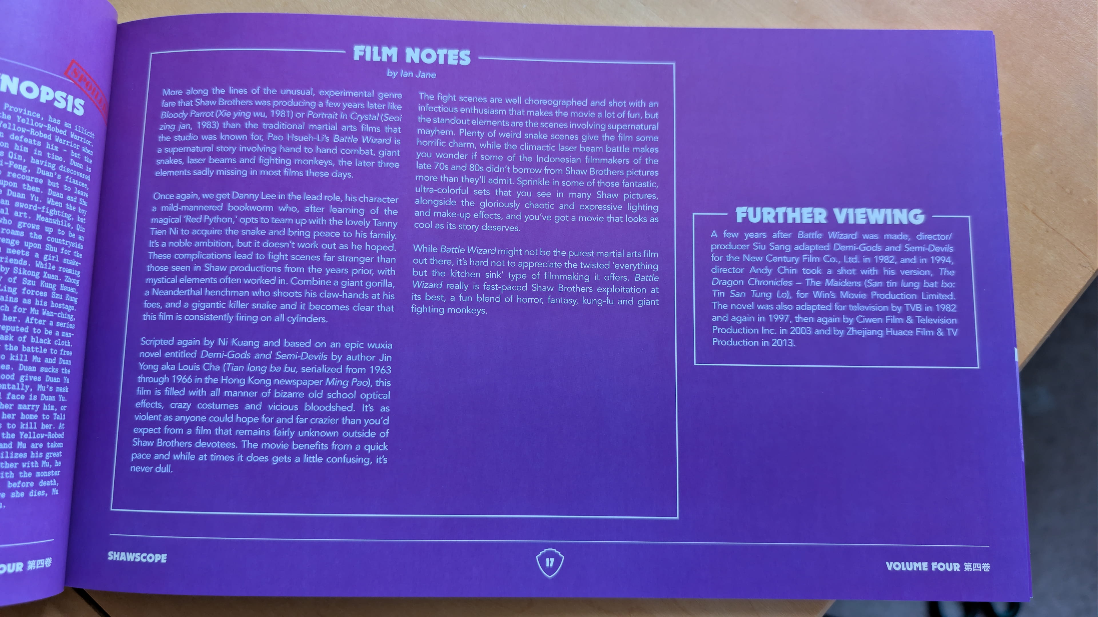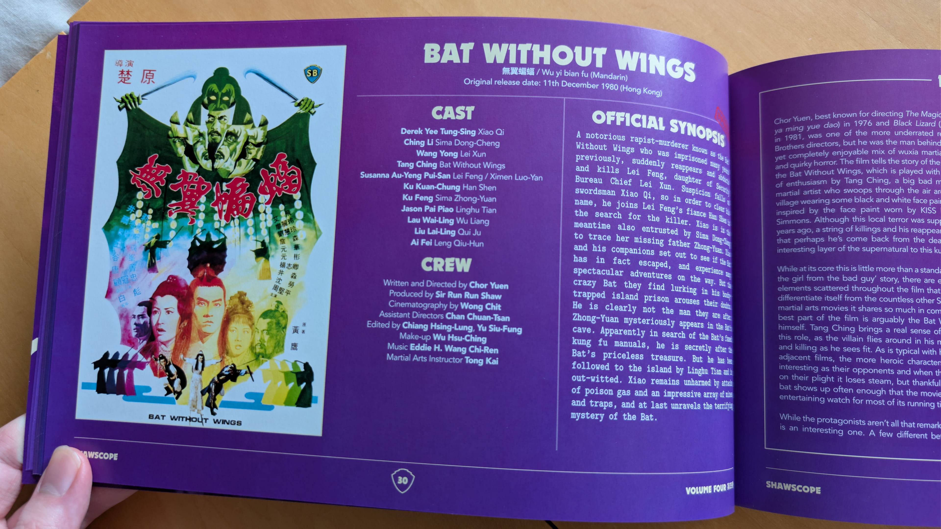 The Shawscope Volume 4 box set is presented in a rigid large box housing a digibook that contains the Blu-ray discs with illustrated artwork and the contents on each page, and an illustrated 60-page book featuring essays written by David West, Jonathan Clements and Grady Hendrix, as well as cast and crew listings and notes for each film by Ian Jane. There’s also artwork illustrated by Matt Frank, Jolyon Yates, Mike Lee-Graham, Chris Malbon and Ilan Sheady.