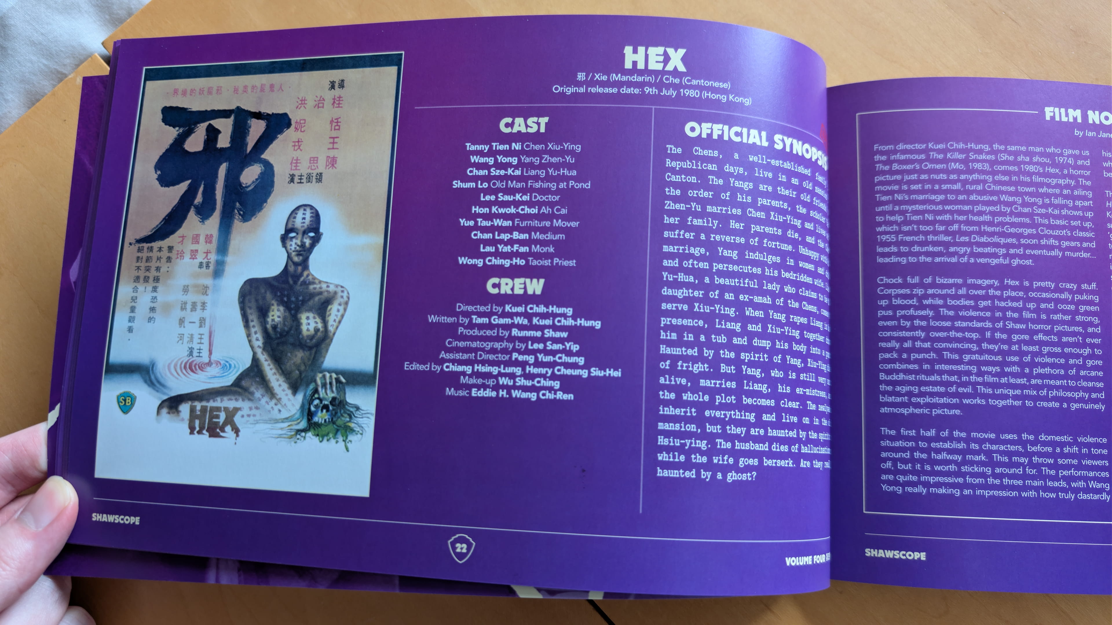 | 4 | Hex Brand new 2K restoration from the original negatives by Arrow Films Newly restored lossless Cantonese and Mandarin mono audio Newly translated English subtitles Bewitched Brand new 2K restoration from the original negatives by Arrow Films Newly restored lossless Cantonese and Mandarin mono audio Newly translated English subtitles |