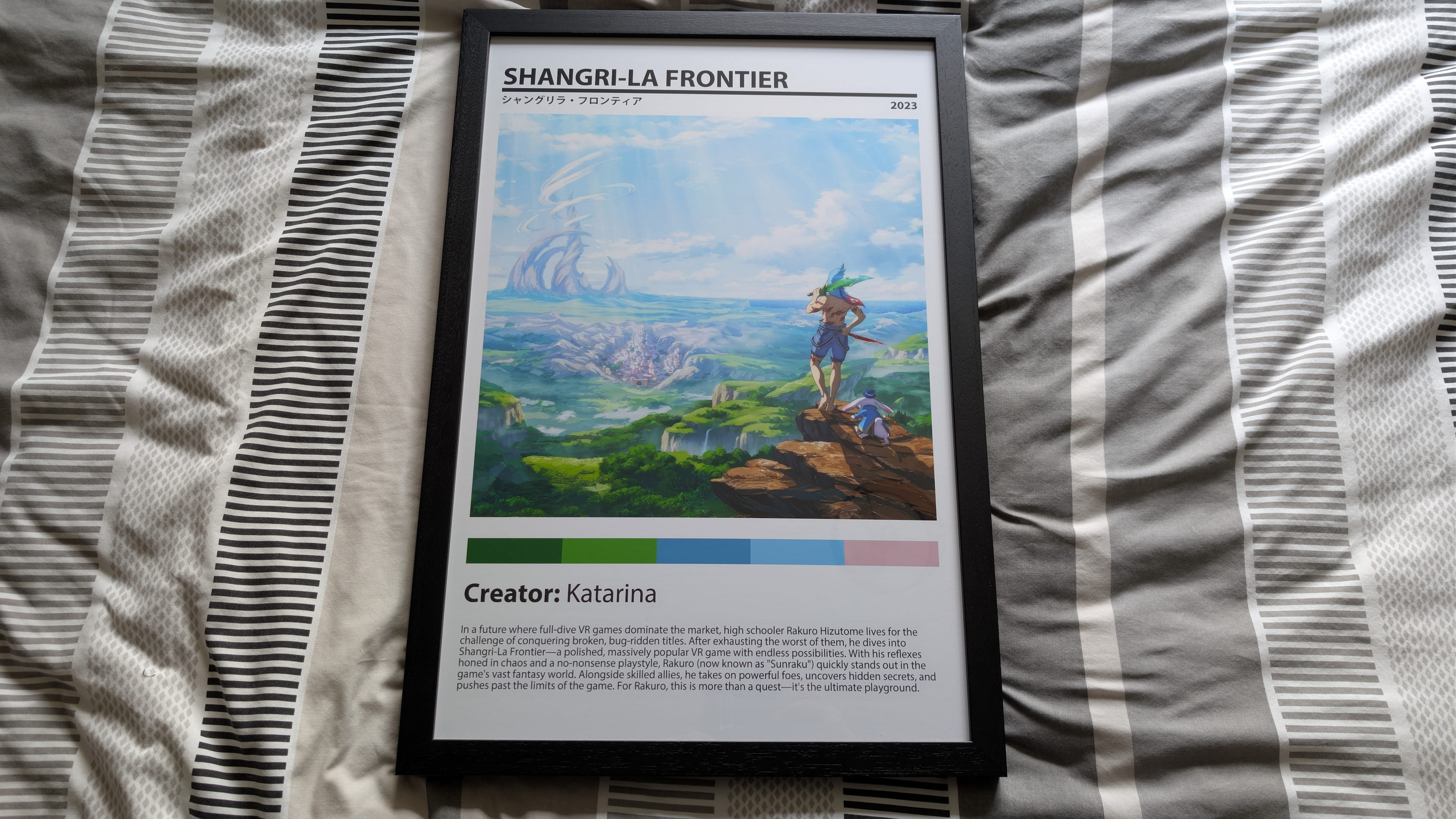 Last but not least is another surprise gift. A nice poster frame on Shangri-la Frontier. Full disclosure this was custom made but looked nice and happy to have it on the shelf. I did find the source and I’m glad this one is at least using official illustrated artwork so it aged better for my room. Shangri-la Frontier is a really solid fantasy VRMMO series from Kodansha if you have yet to give it a try in anime or manga form.