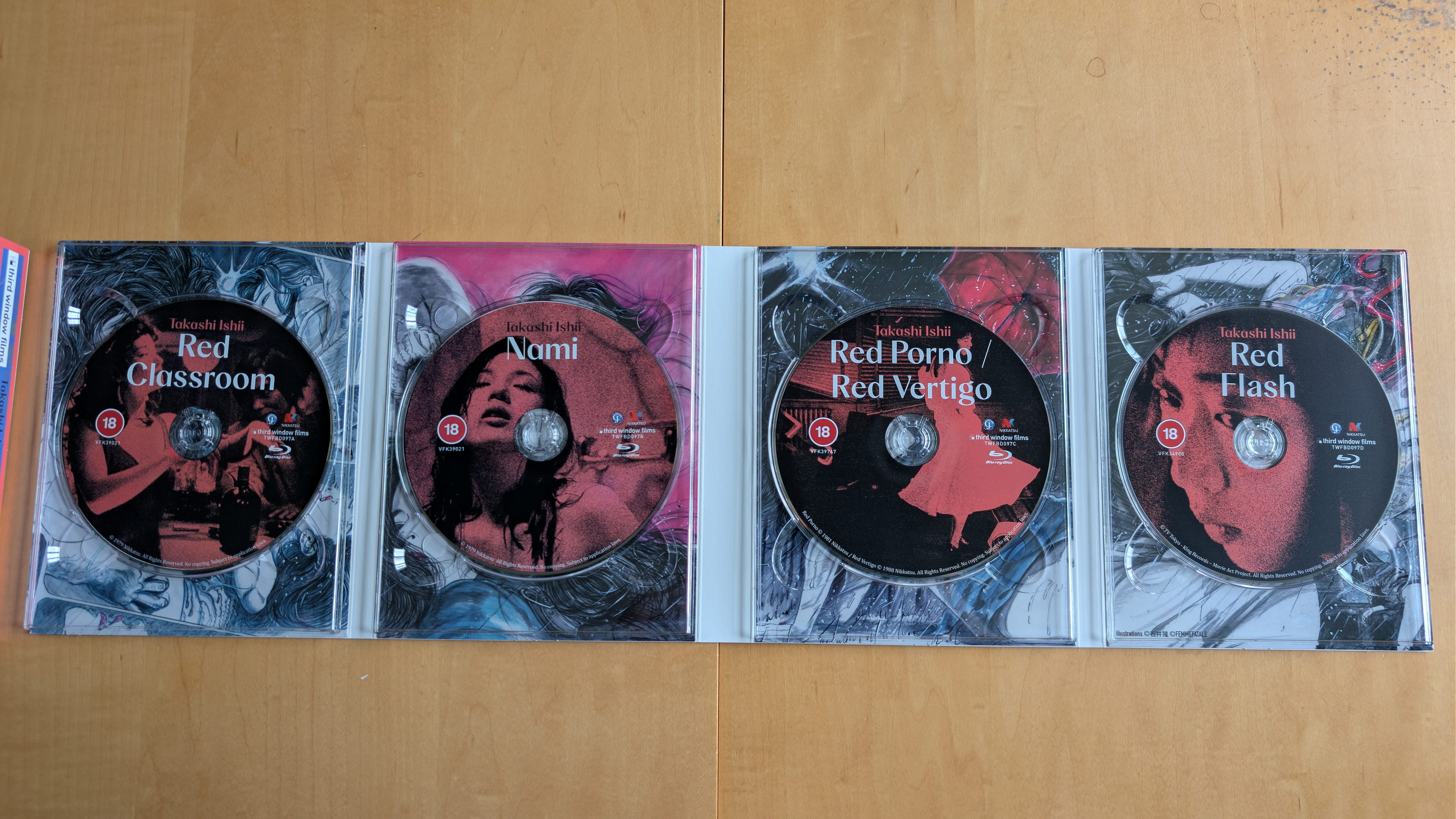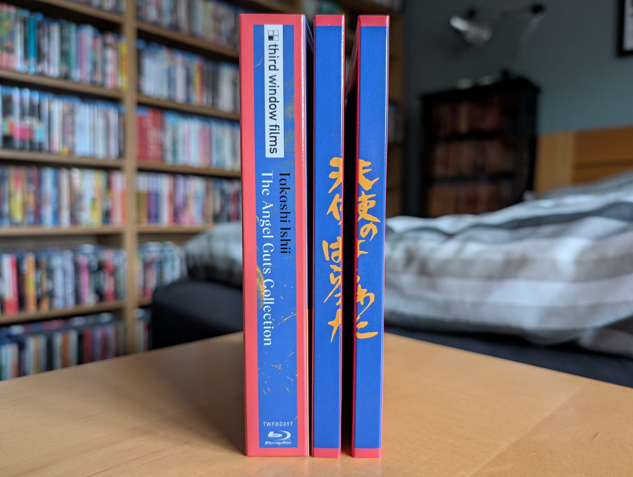 Similar to previous limited edition box sets from Third Window Films, Takashi Ishii: The Angel Guts Collection bundles the films in a digipack package with an o-card slipcase. No rigid texture but does the job if you need to save a bit of space on the shelf.