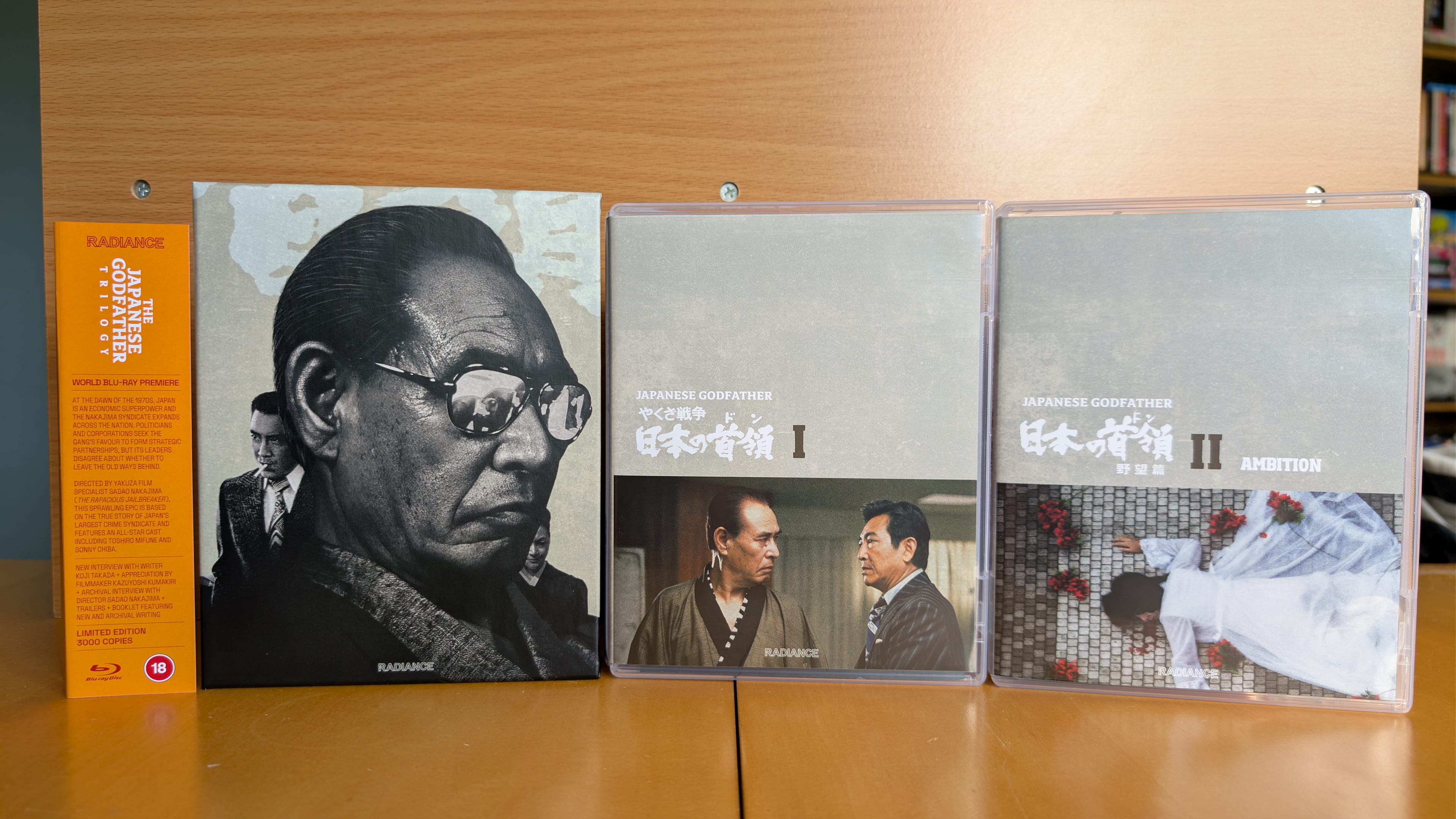 From Radiance Films we have Sadao Nakajima’s The Japanese Godfather Trilogy, featuring 1977’s Japanese Godfather (やくざ戦争 日本の首領) and Japanese Godfather: Ambition (日本の首領 野望篇) and 1978’s Japanese Godfather: Conclusion (日本の首領 完結篇).