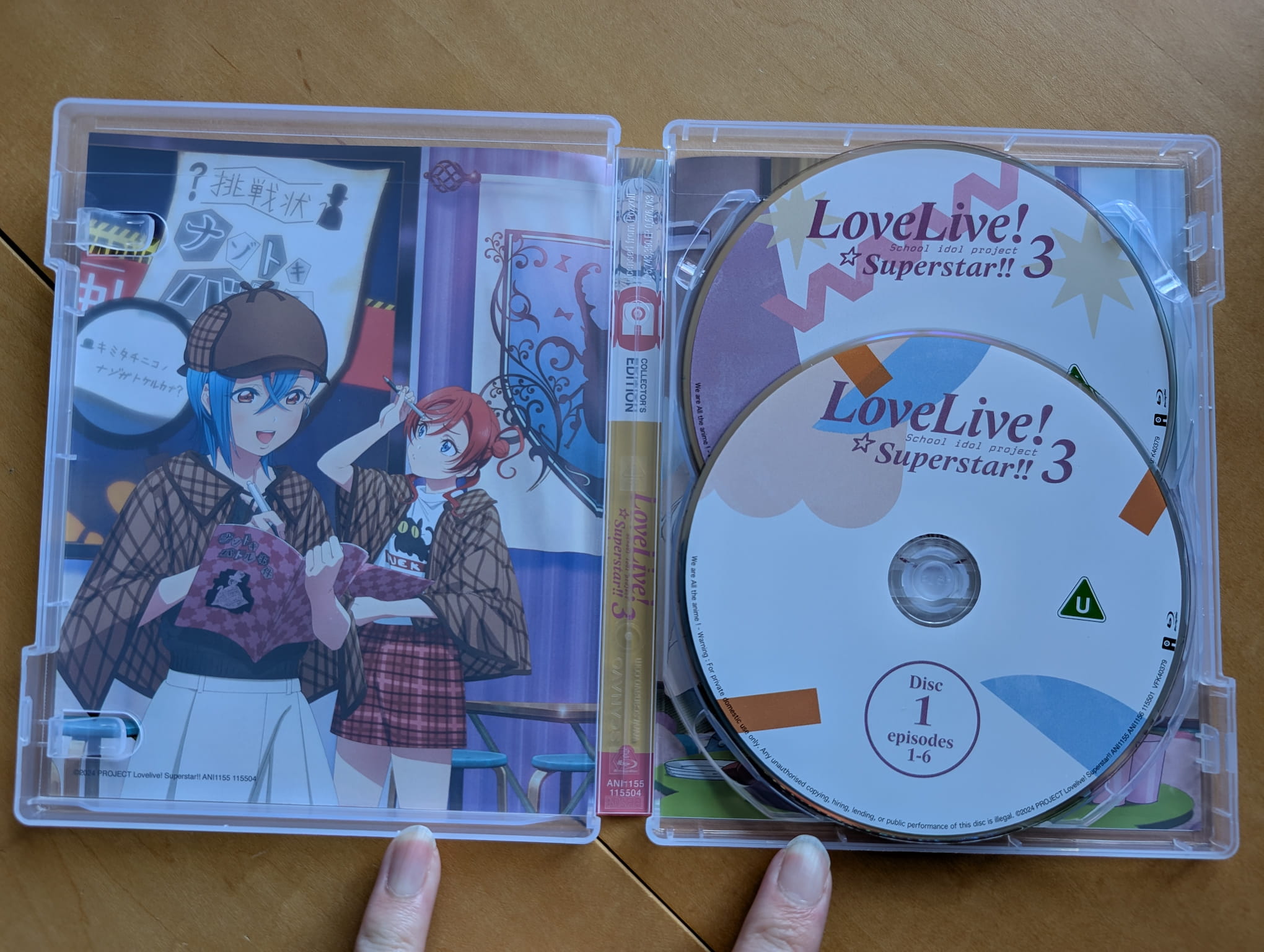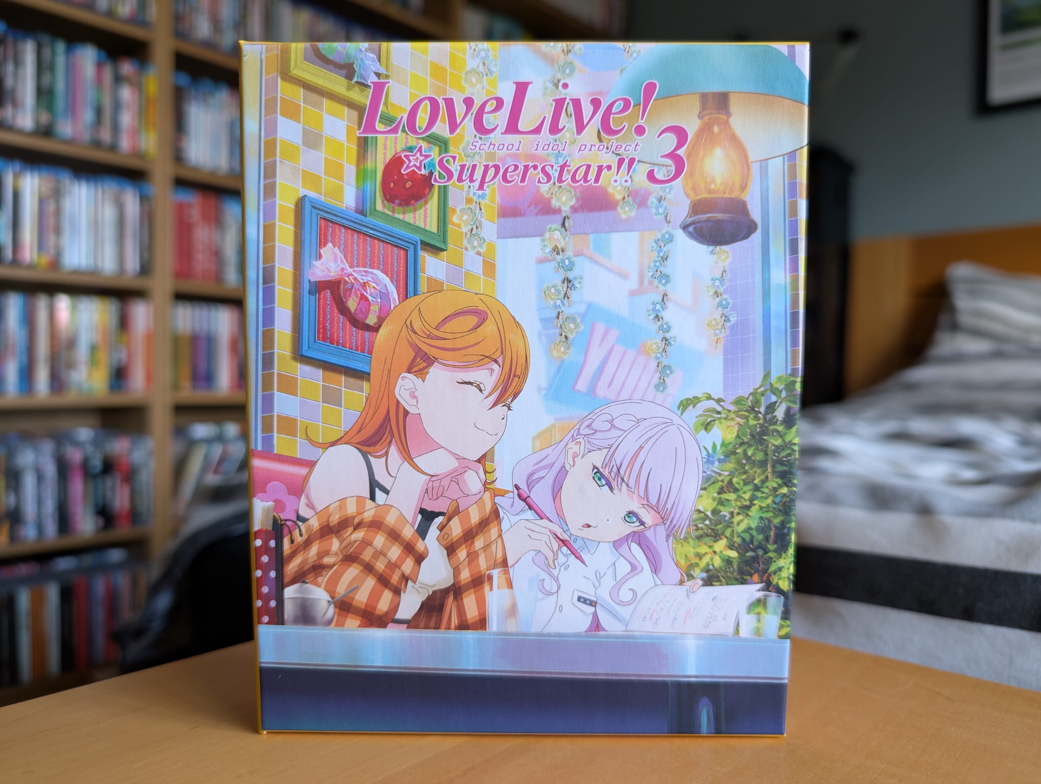 The collector’s edition release for Love Live! Superstar!! Season 3 contains all 12 episodes across two Blu-ray discs, with the encode and authoring done by French company Com’on Screen.
