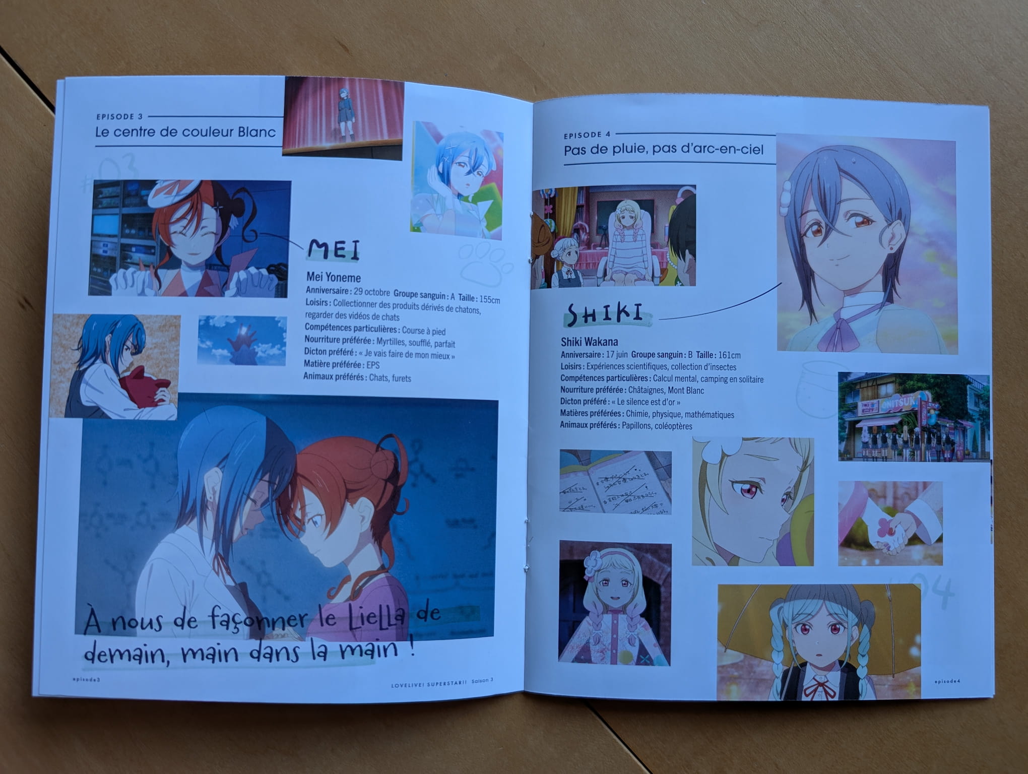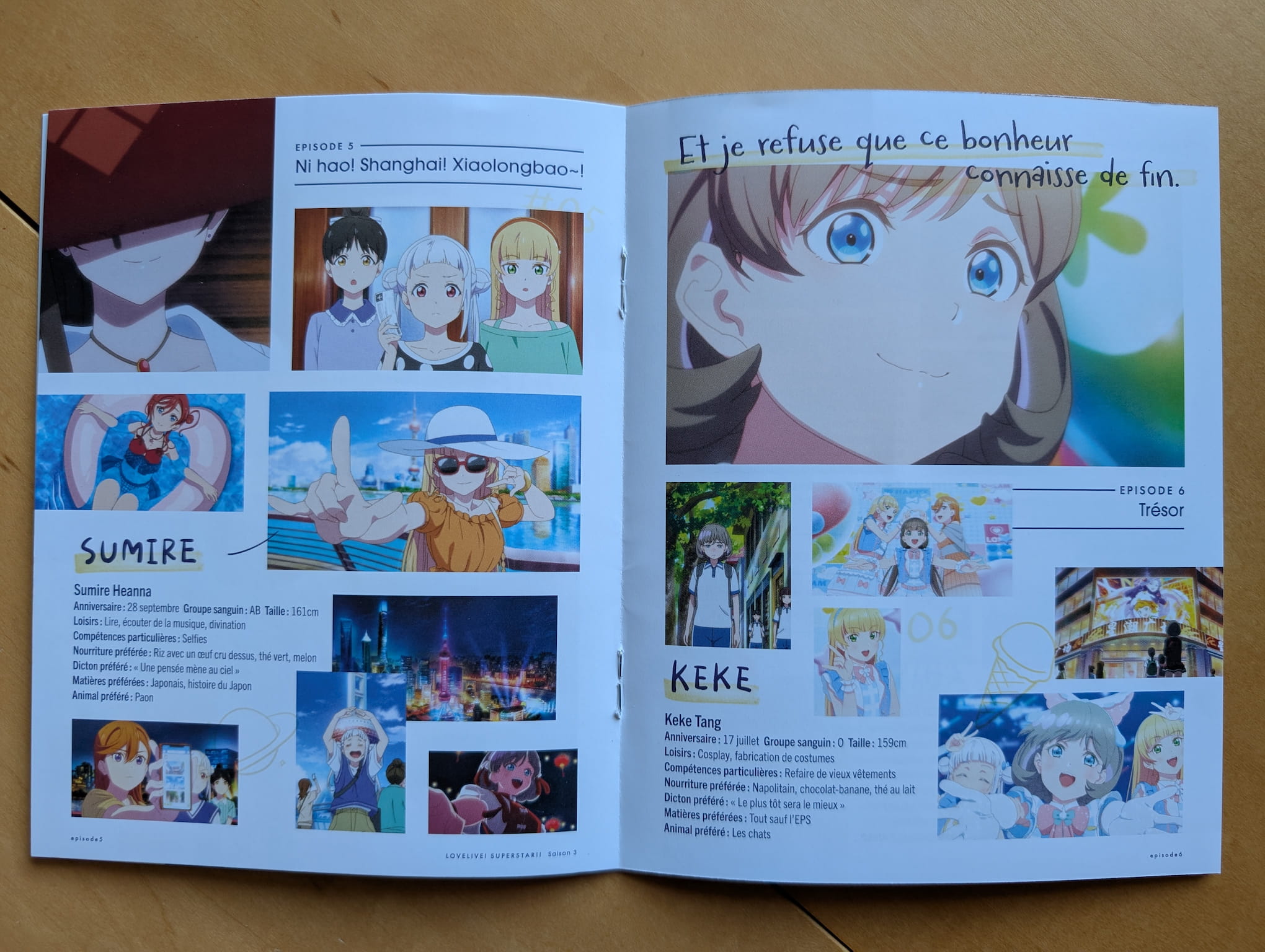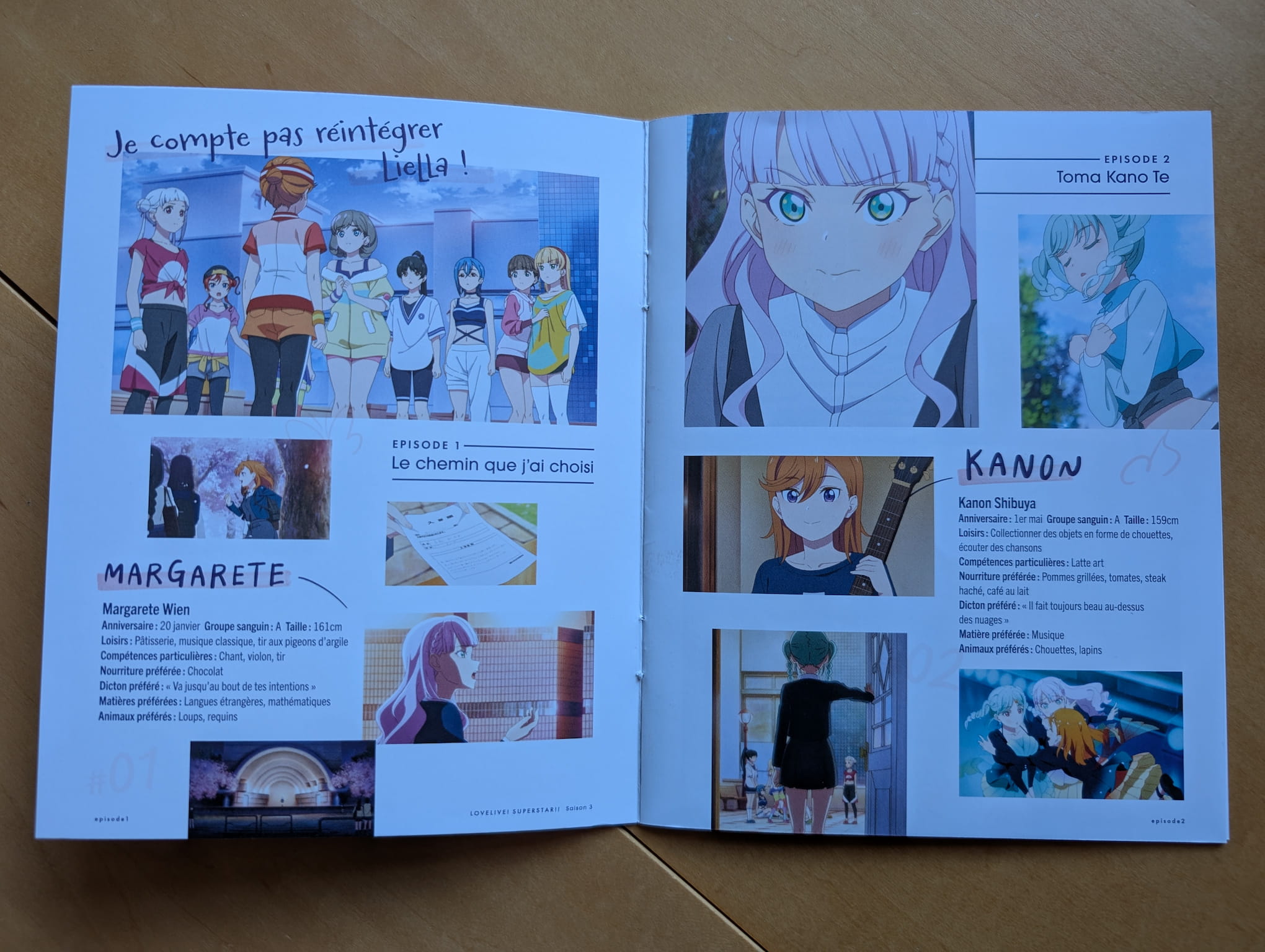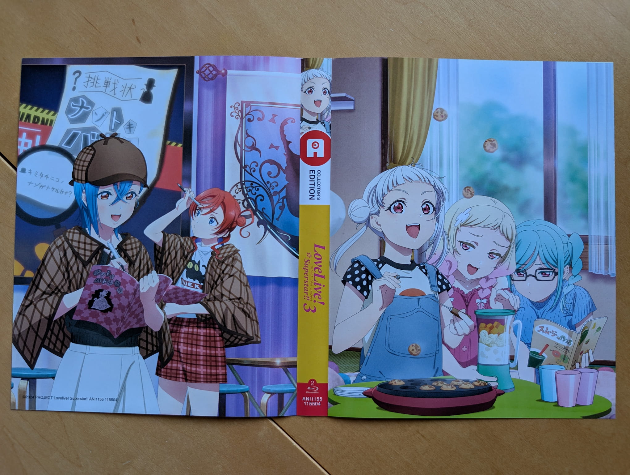 The collector’s edition release is presented with a rigid box, a Scanavo case housing the discs, and a 12-page booklet. The booklet features illustrated artwork and brief character information for each Liella! member. As you may have noticed below, my copy of the booklet is in French because it’s supposed to be used for the French home video release so Anime Limited’s Quality Control strikes again (this happened with Diebuster recently).
