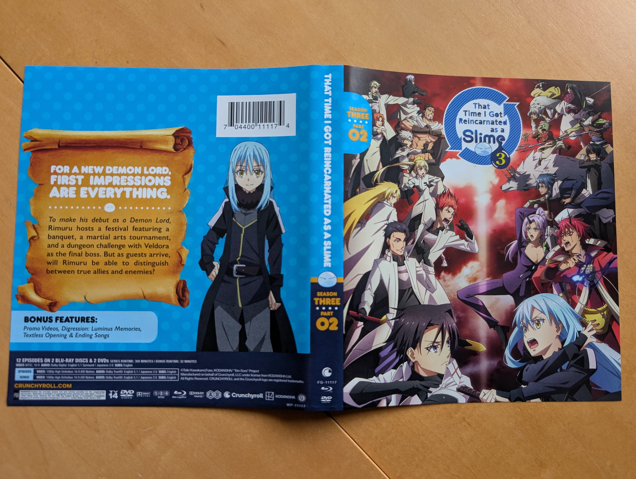 The standard only release for That Time I Got Reincarnated as a Slime Season 3 Part 1 contains episodes 1-12 (episodes 49-60) across two Blu-ray discs, with the encode and authoring done by Crunchyroll’s US branch.