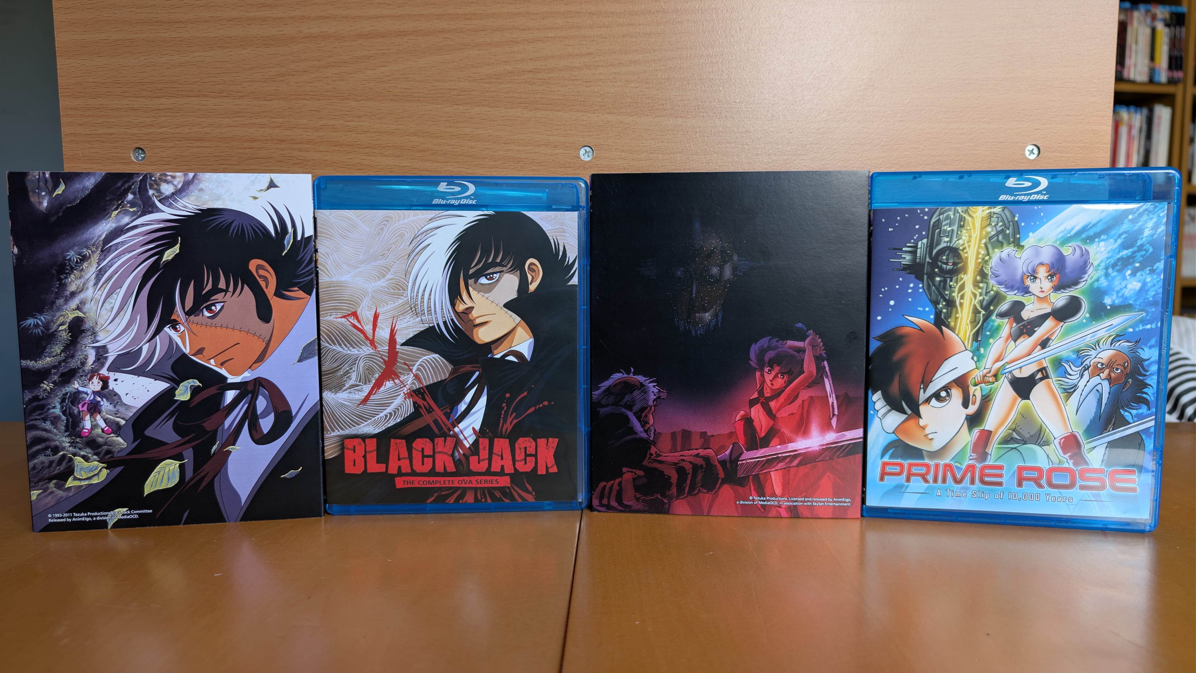 Starting off with the AnimEigo pickups we have two from Osamu Tezuka’s works. The first is Black Jack, the 1993-2011 Tezuka Productions OVA series directed by Osamu Dezaki for the first 10 episodes followed by Satoshi Kuwahara & Masayoshi Nishida for the remaining two episodes. I have the film that Discotek Media released but this series came first anime-wise. AnimEigo’s release includes the existing English dub for the first 10 episodes plus a third Blu-ray disc dedicated to bonus features.