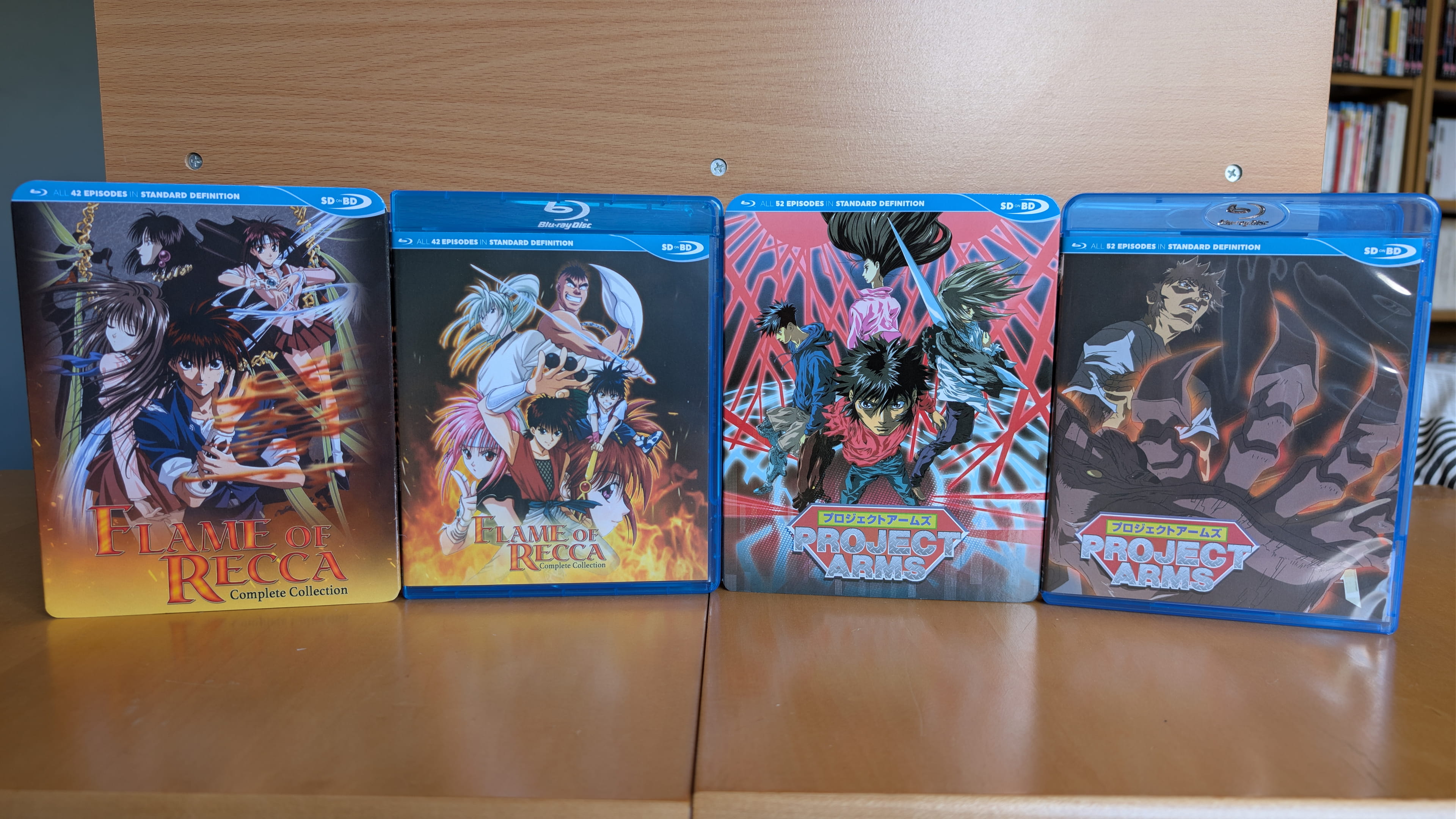 Moving onto the brand new recently released titles, both of which coincidently were originally licensed by Viz Media and serialised under Weekly Shōnen Sunday so they each have a pretty long four-cours worth of episodes. The first one is Flame of Recca, the 1997 Studio Pierrot series directed by Noriyuki Abe, and the second is Project ARMS, the 2001 TMS Entertainment series directed by Hirotoshi Takaya & Hajime Kamegaki. The latter was split into two seasons that aired back-to-back. Discotek Media previously released both series on DVD before and these are new releases on Blu-ray presented in Standard Definition on Blu-ray format from May & December 2025 respectively.