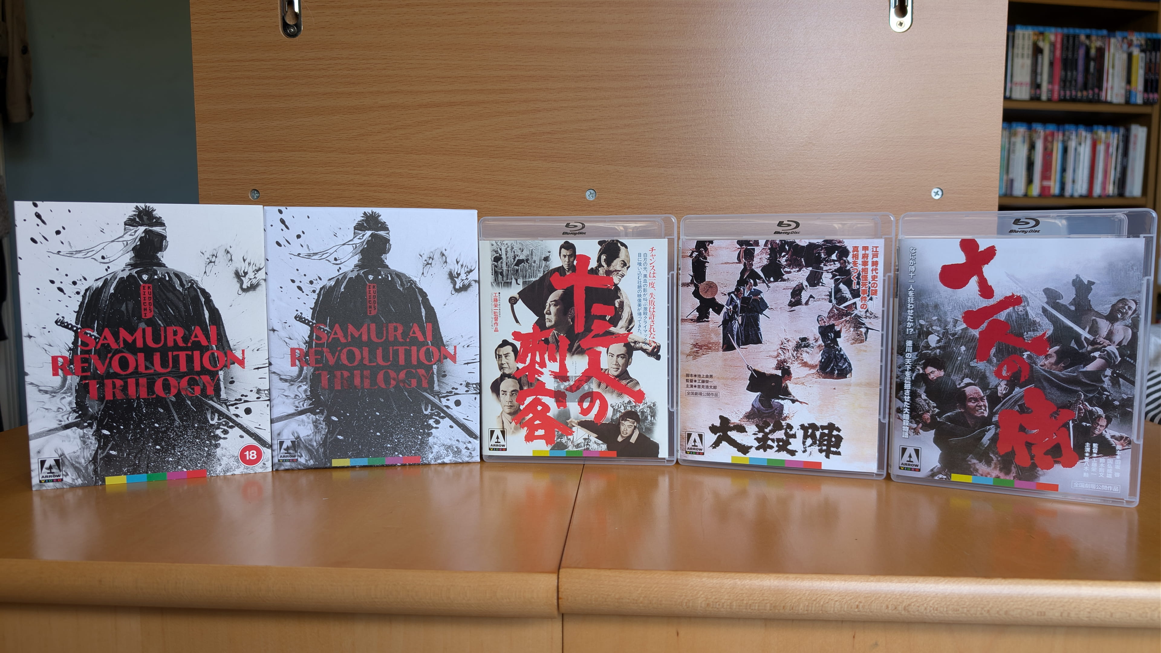 We’ll start off with the Blu-ray limited edition release for Eiichi Kudo’s Samurai Revolution Trilogy from Arrow Video. This release features three classic Japanese films by director Eiichi Kudo.