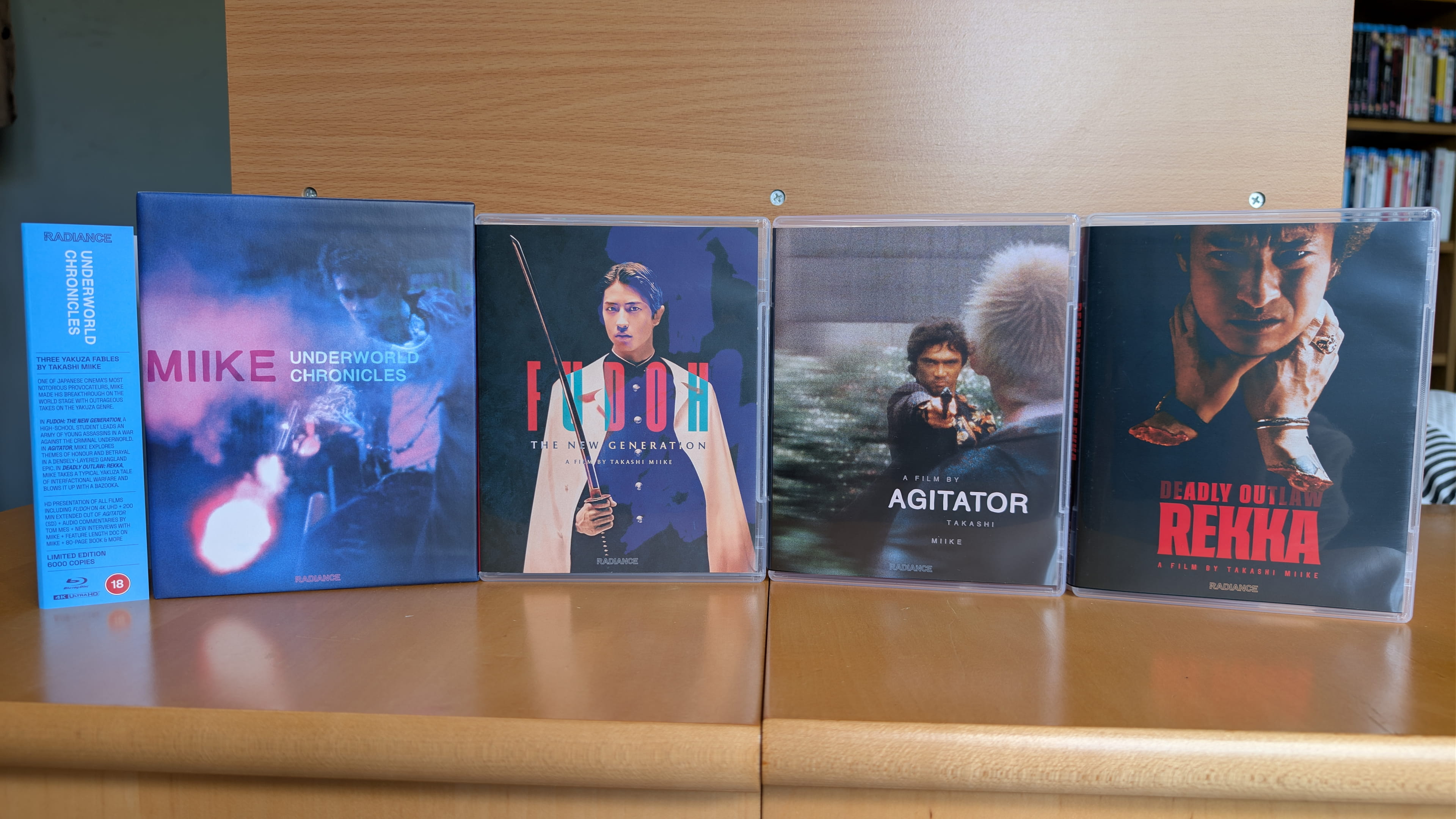 Then we move over to Radiance Films with their limited edition release Underworld Chronicles: Three Yakuza Fables from Takashi Miike. This release features three of Takashi Miike’s classic films from the late 90s to early 00s now back in the UK on Blu-ray with one of them also included in 4K Ultra HD.