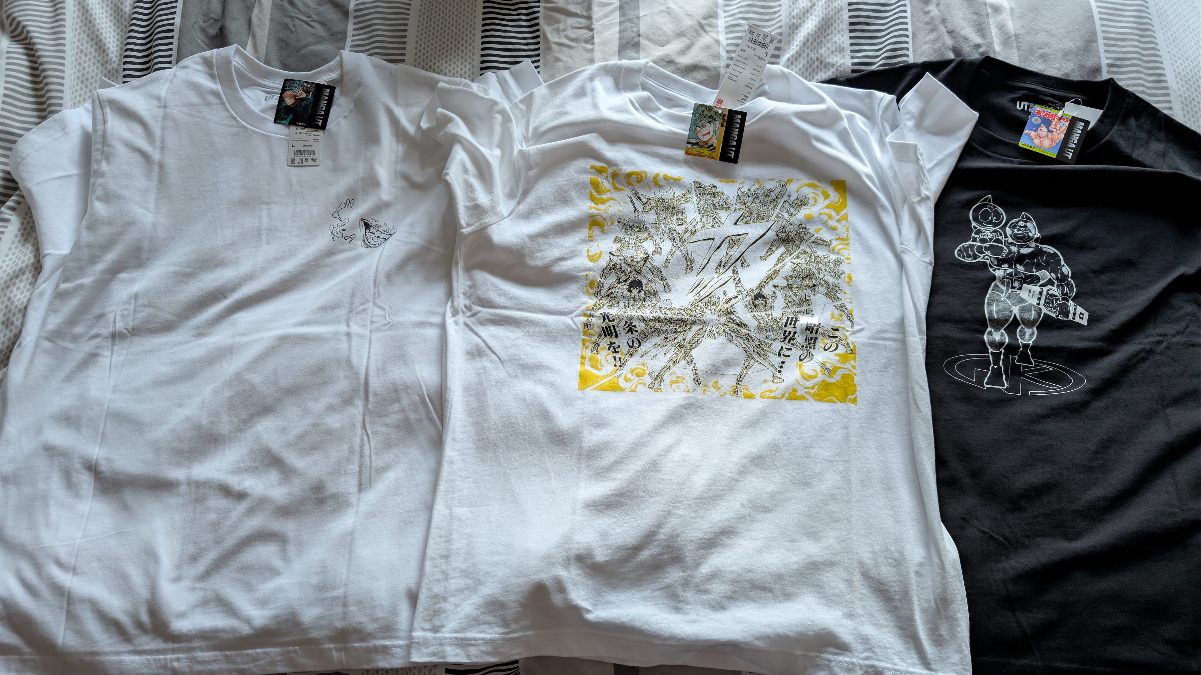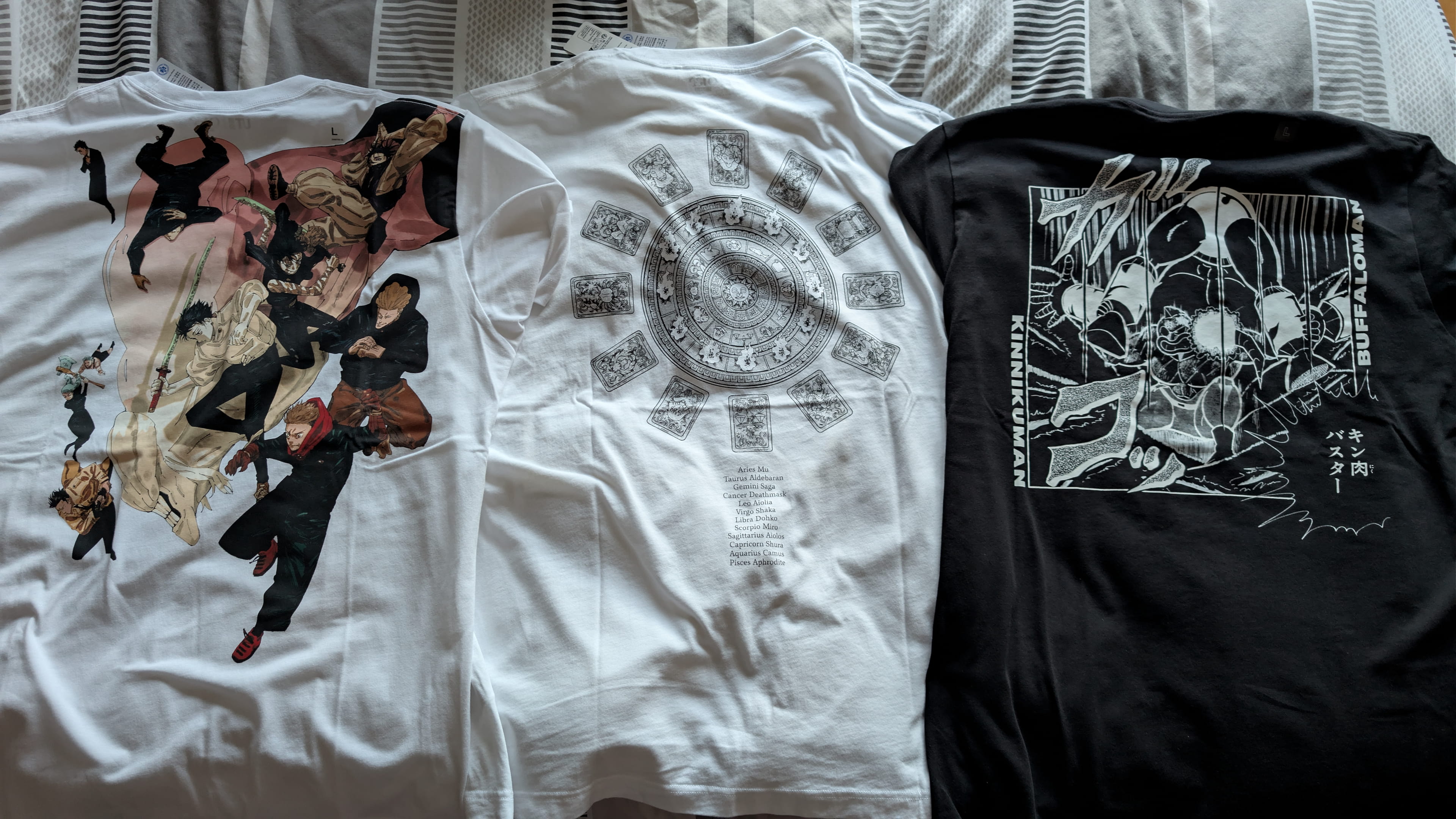 So the ones I went for were Jujutsu Kaisen, Kinnikuman (also known in the west as Ultimate Muscle) and Saint Seiya: Knights of the Zodiac. They also have shirts available that are based on Captain Tsubasa, Golden Kamuy, Hunter x Hunter, Kingdom and Yu Yu Hakusho, with a second batch arriving late April that also includes GANTZ and KochiKame.