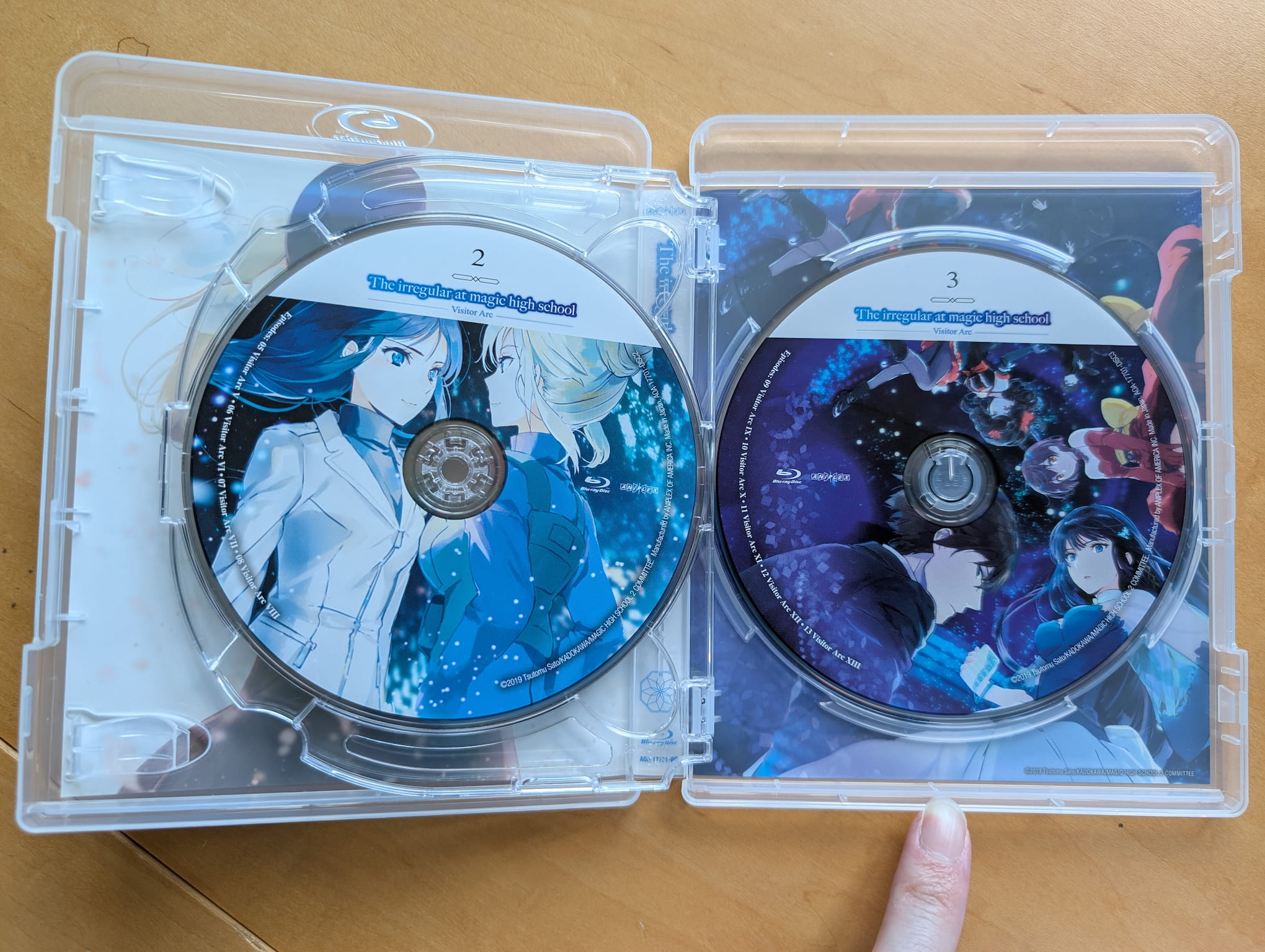 The limited edition Blu-ray release for The Irregular at Magic High School: Visitor Arc contains the complete season, all 13 episodes, across three Blu-ray discs, which was authored and encoded by Aniplex of America.