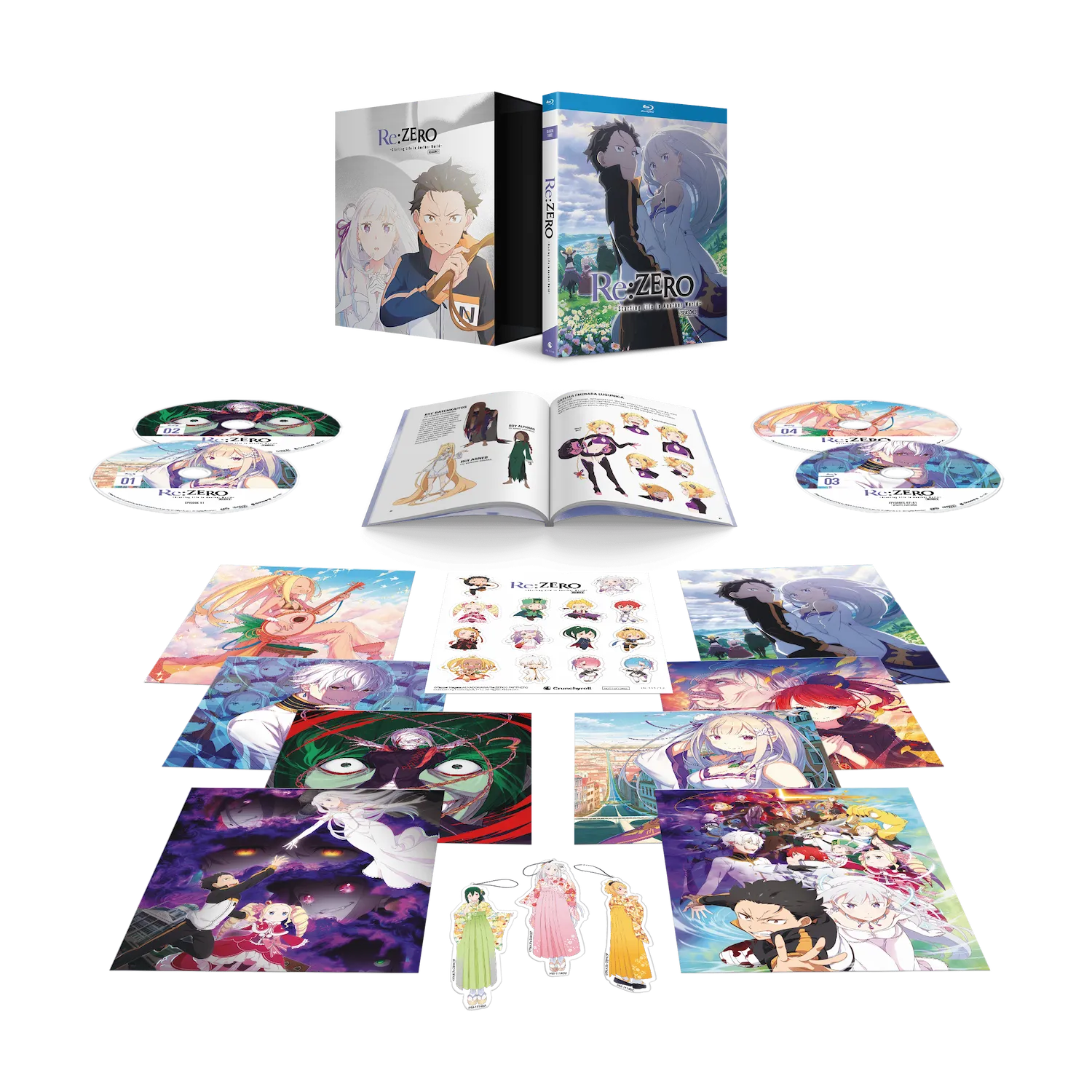 | – Theatrical Etiquette Video – Promo Videos – Textless OP/EDs | – Rigid Box packaging with Amaray case & o-card slipcase – 60-page Artbook – 3 Acrylic Key Chains – 8 Art Cards – Sticker sheet |