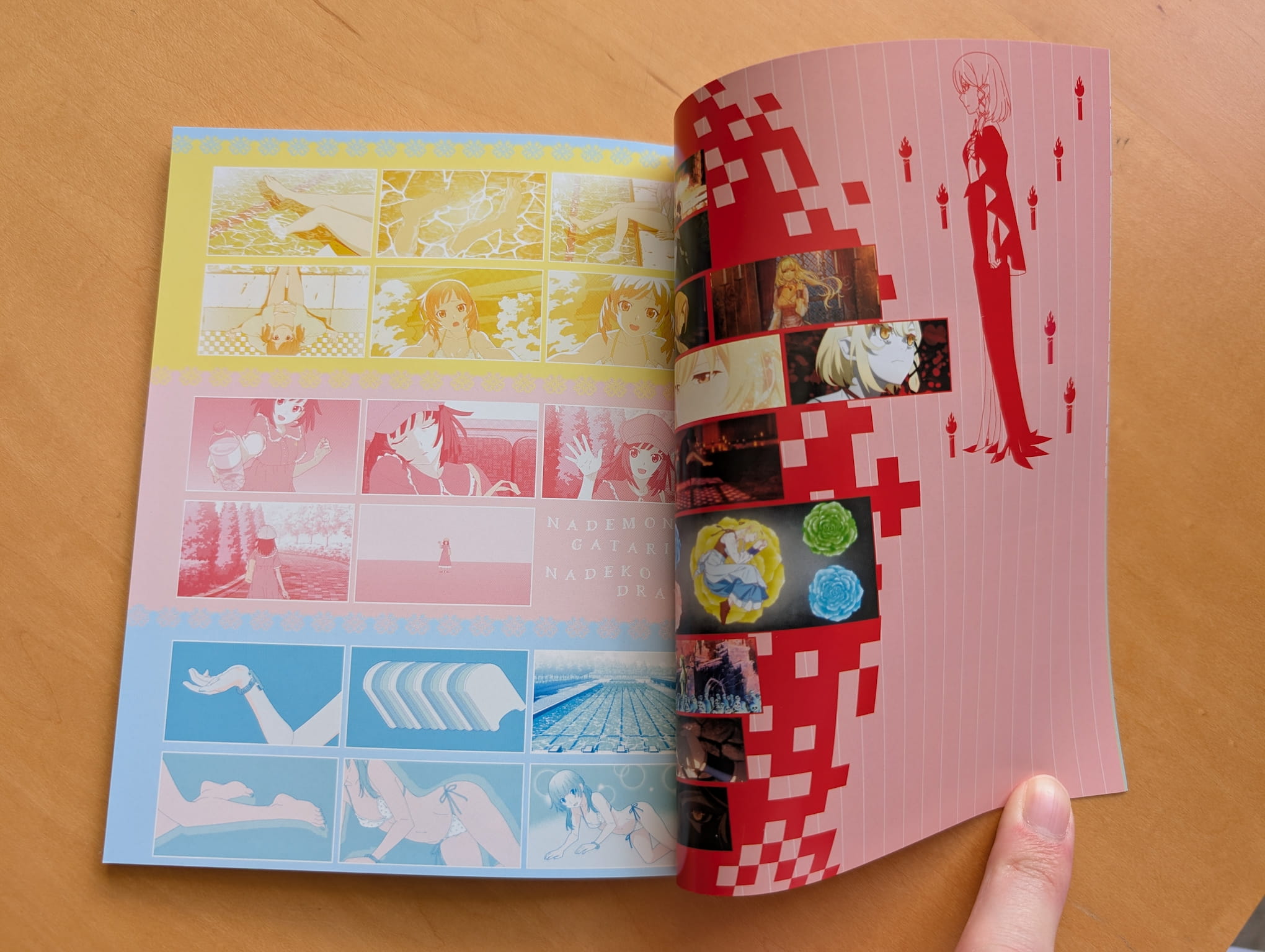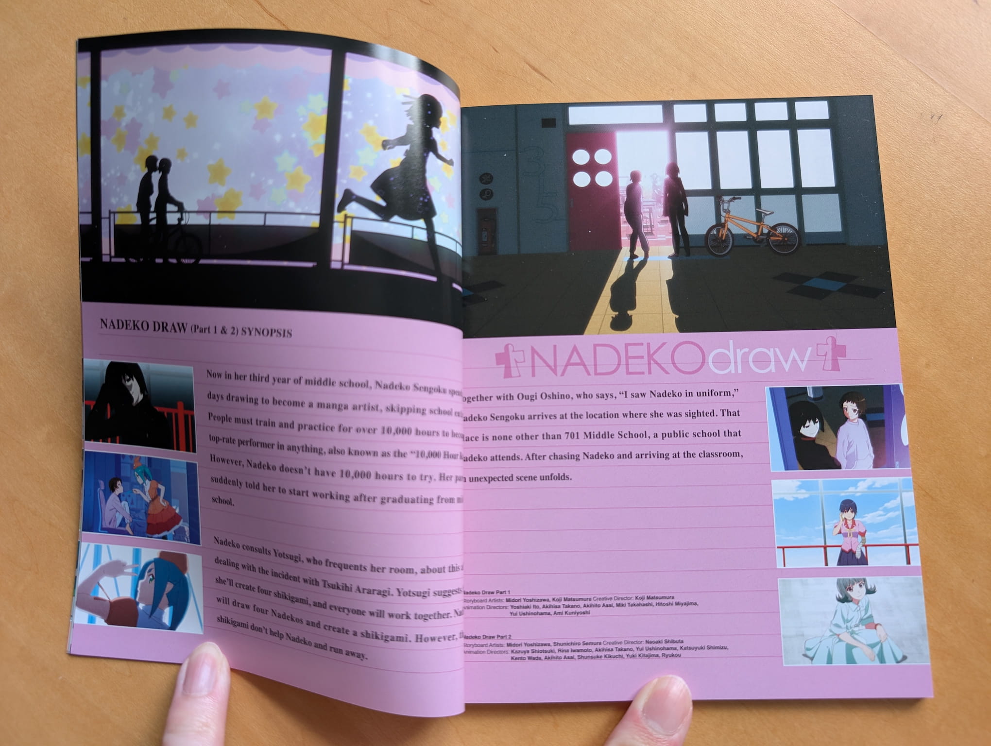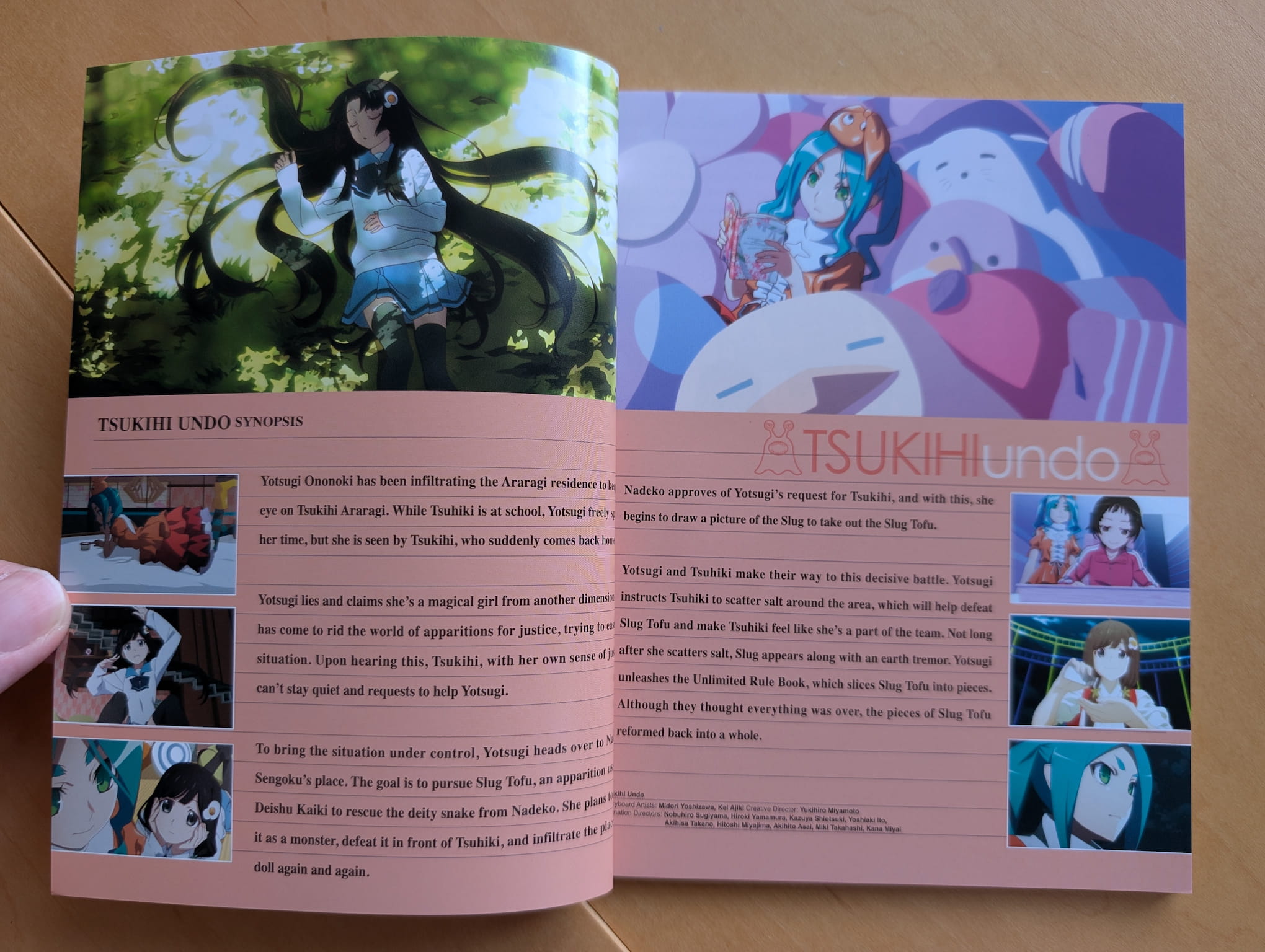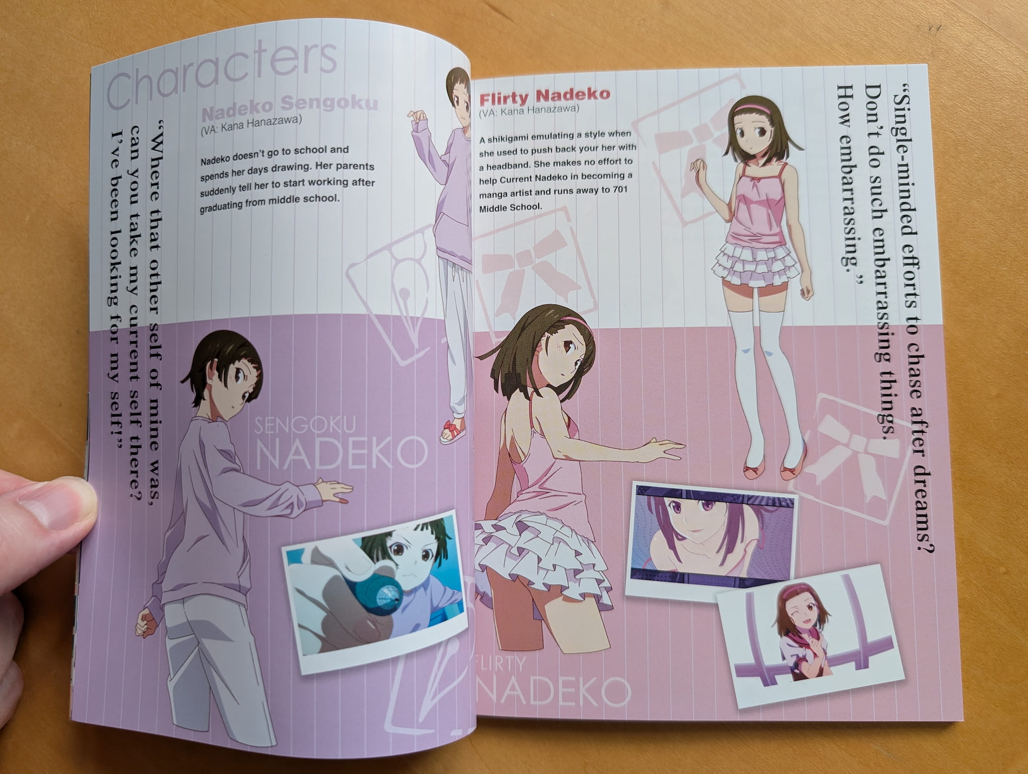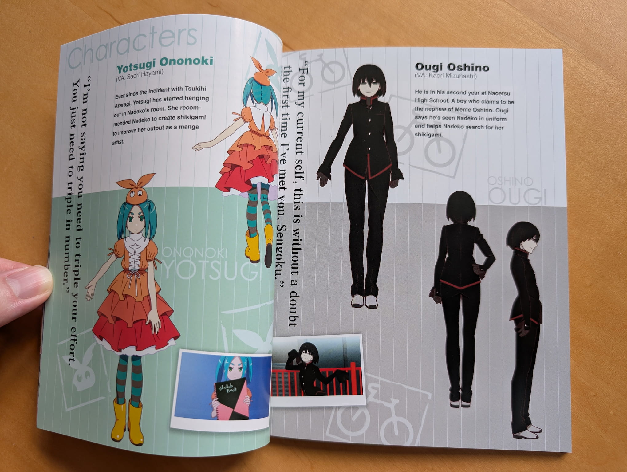 The limited edition Blu-ray release is presented with a rigid box featuring a obi-strip wrapped around the set (like the previous Monogatari releases have done), an Amaray case housing the discs, a 62-page special booklet and 14 flimsy art cards. The special booklet that includes designs and information about the characters, illustration artwork and credits.