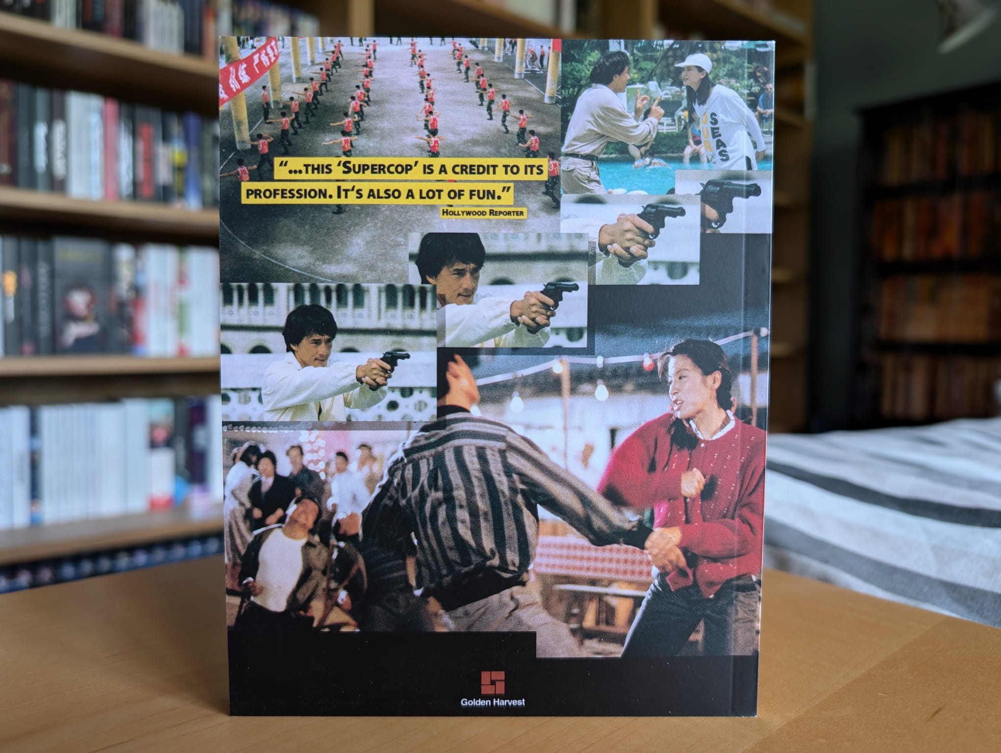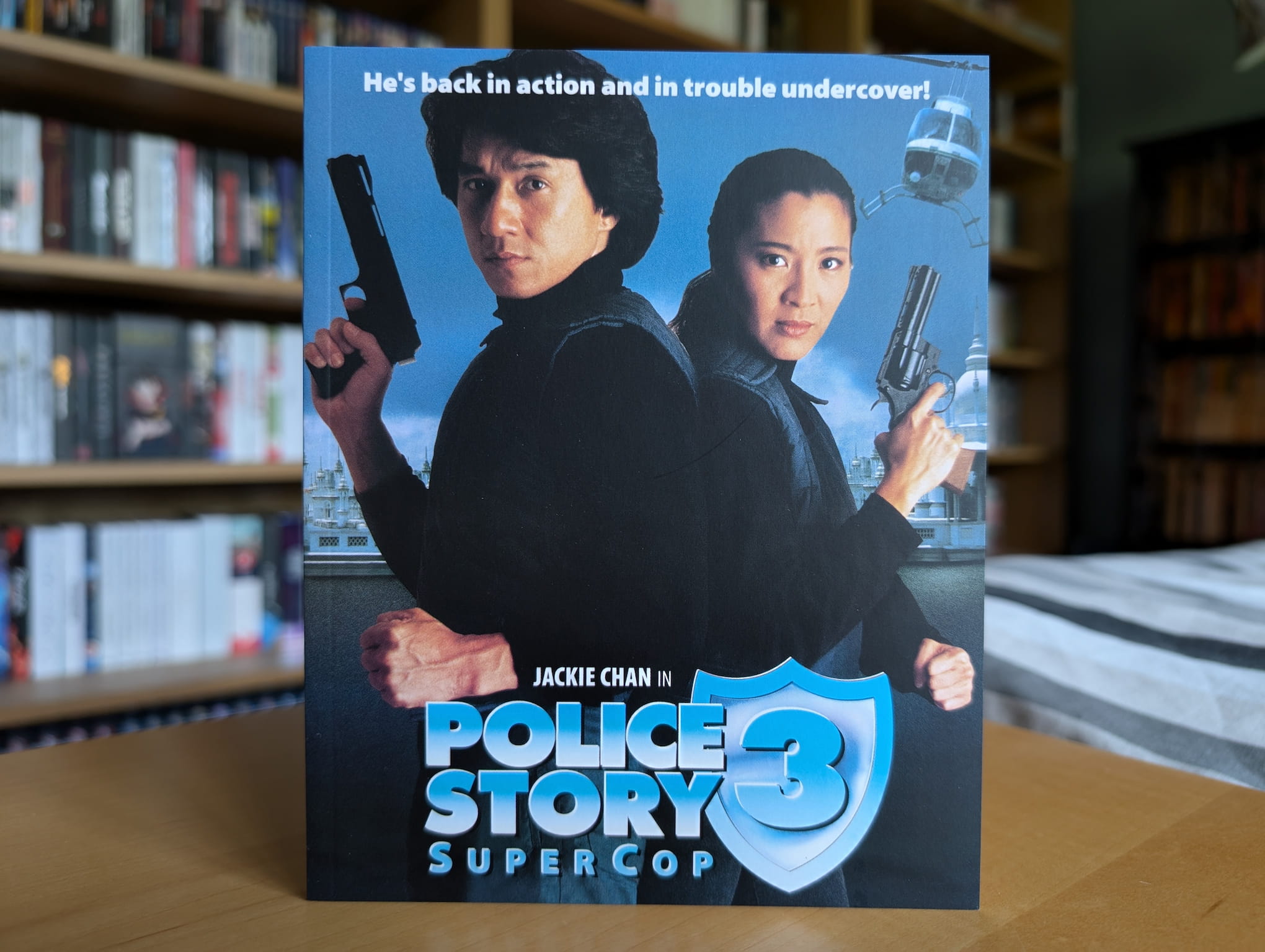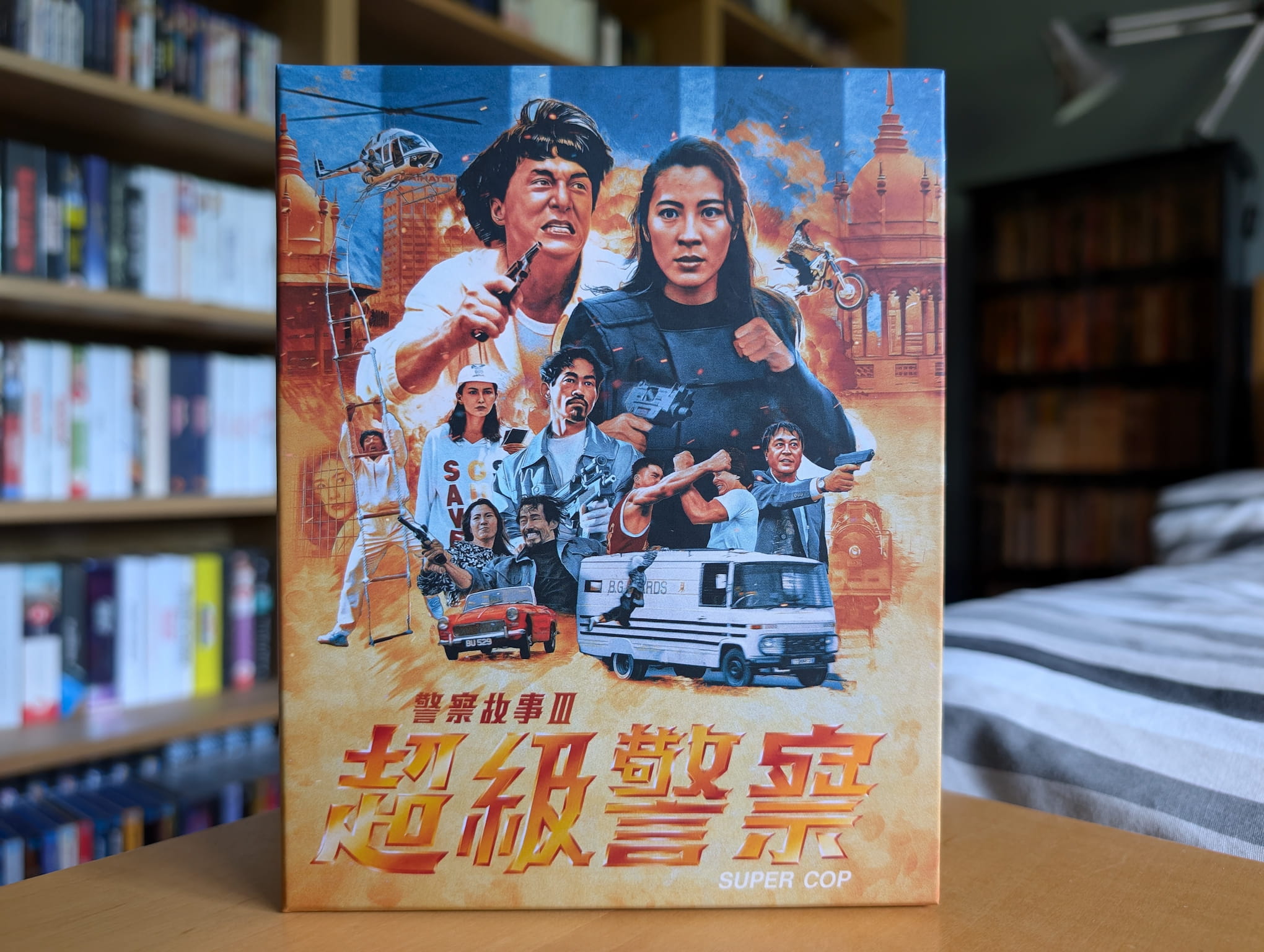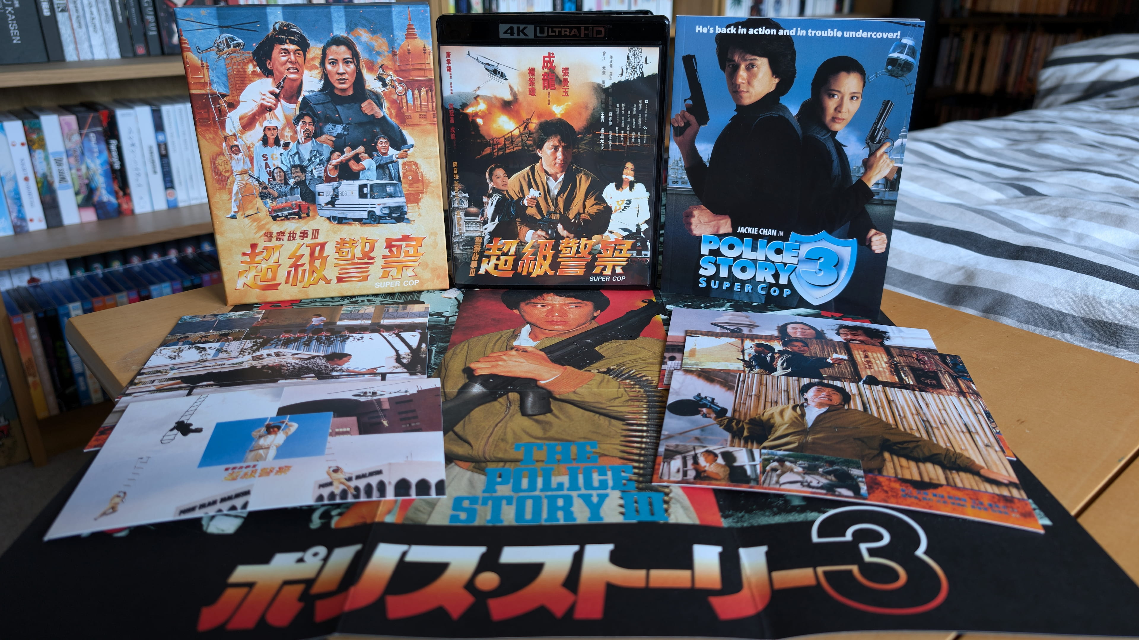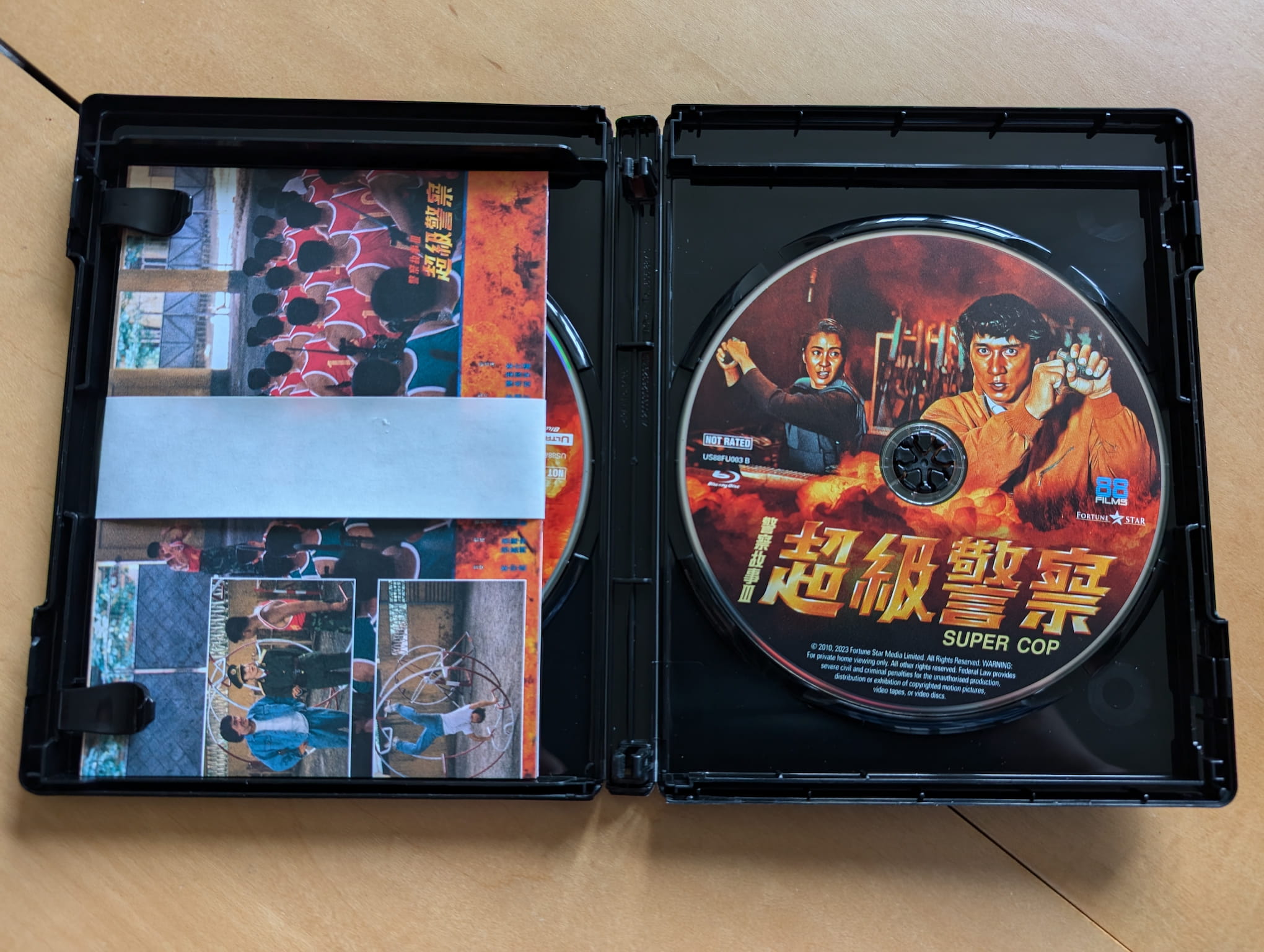 The deluxe limited edition release for Police Story 3: Supercop contains the film on a single 4K Ultra HD disc and single Blu-ray disc. All the discs were encoded and authored by Fidelity in Motion on behalf of 88 Films.