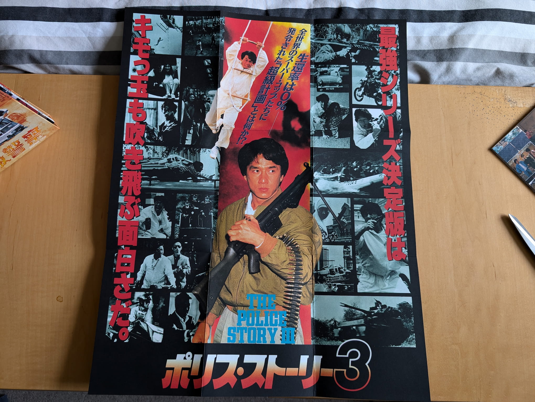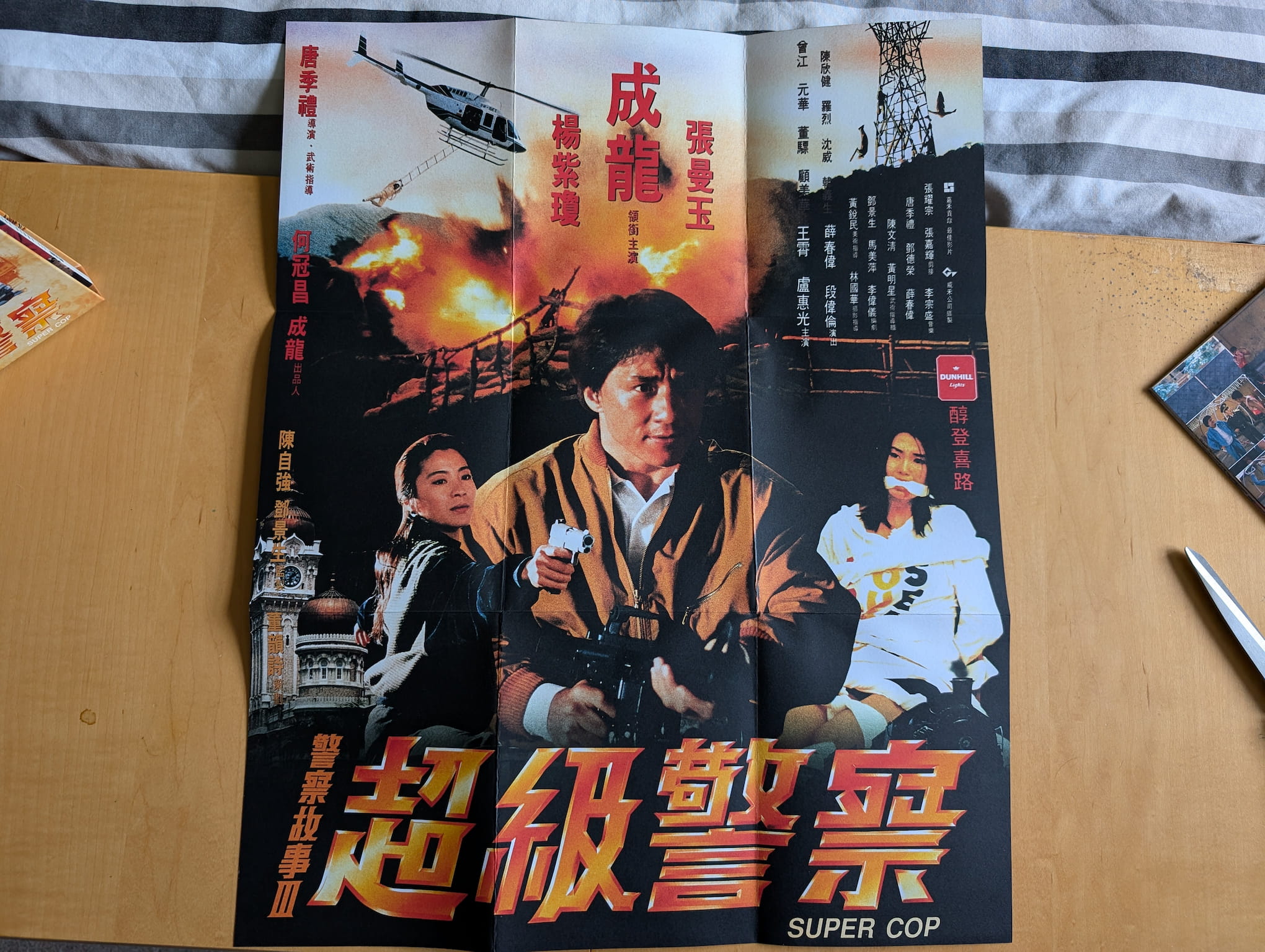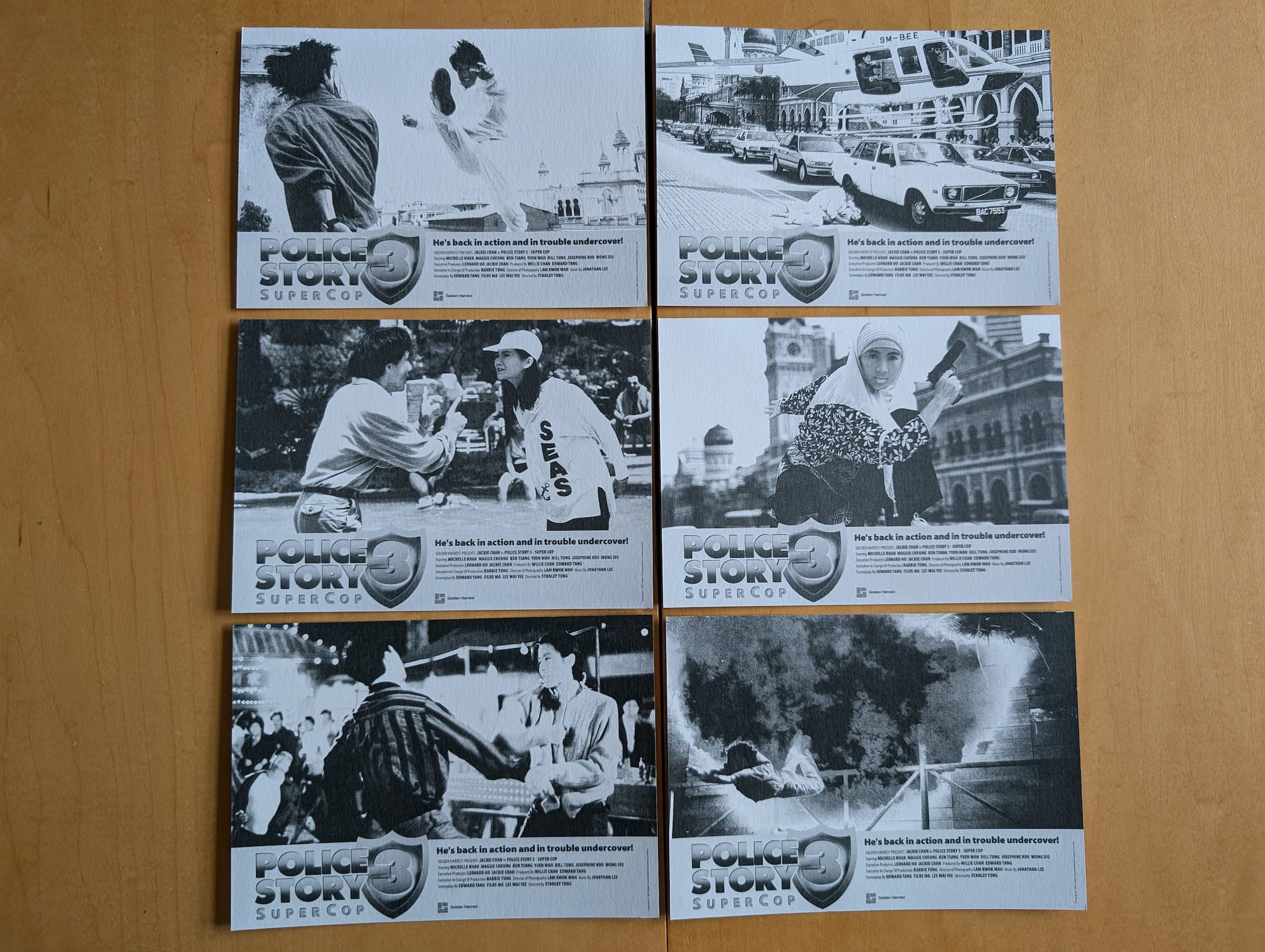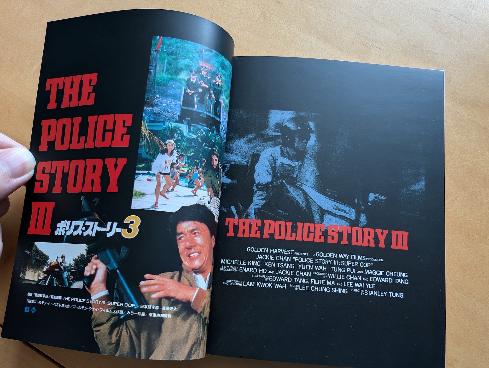 Police Story 3: Supercop (警察故事 III:超級警察) is a 1992 live-action theatrical Hong Kong film directed by Stanley Tong Gwai-Lai, and produced by Willie Chan Chi-Keung and Edward Tang, with distribution by Golden Harvest and Golden Way Films Ltd. The film starred Jackie Chan, Michelle Yeoh, Maggie Cheung, Kenneth Tsang, Yuen Wah, Bill Tung Biu and Kelvin Wong Siu, with screenplay writers Edward Tang, Fibe Ma Mei-Ping and Lee Wai-Yee, and music composed by Richard Lo, Jonathan Lee, Chan Oi-Chun and Chow Kwok-Yi. The film was theatrically released in July 1992 for Hong Kong.